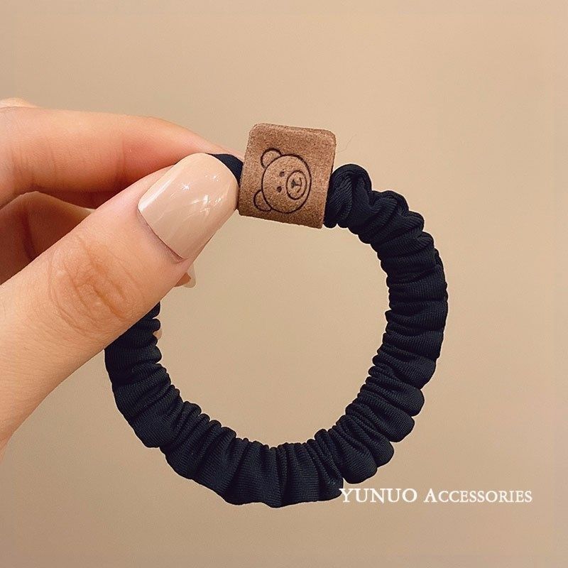 韩版大肠圈扎头发简约小熊标签皮筋头绳小女孩布艺小肠圈发圈发绳