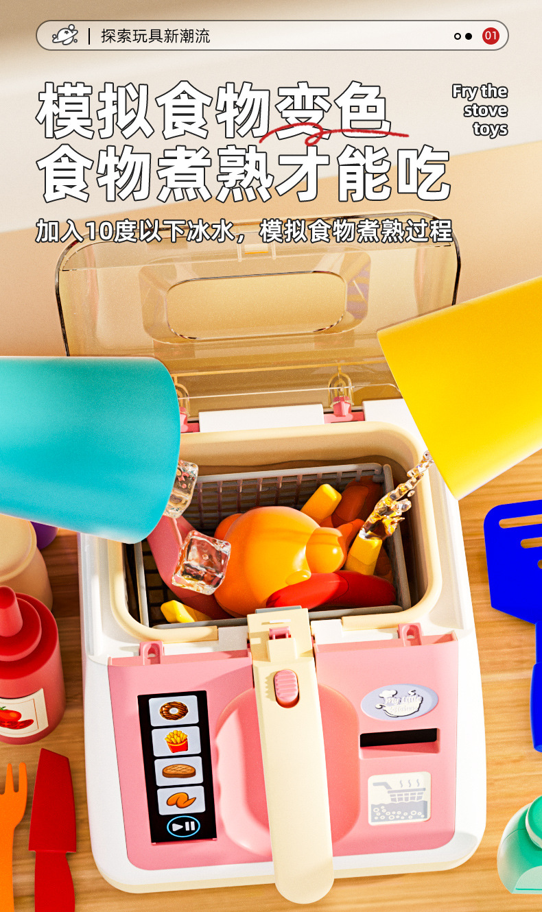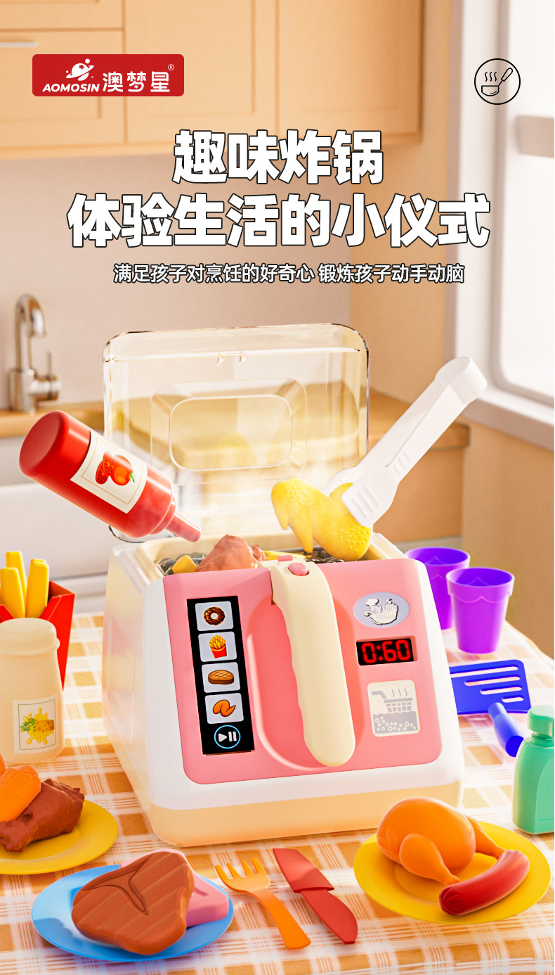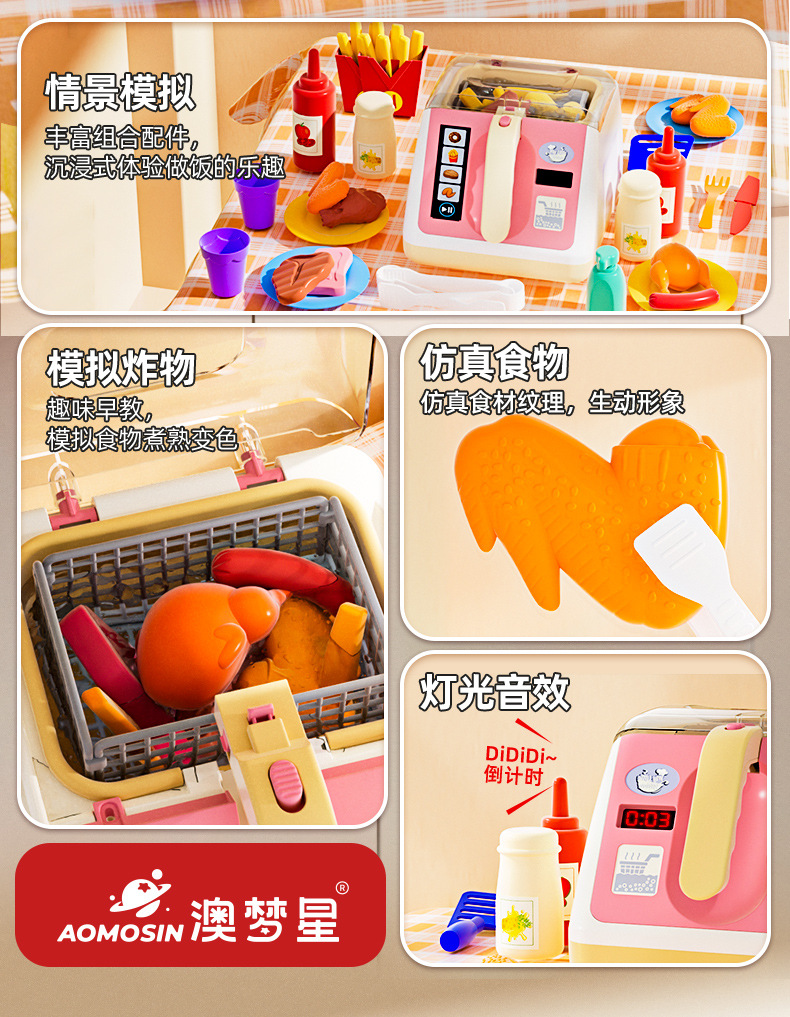 澳梦星儿童过家家厨房玩具变色炸炉宝宝做饭仿真薯条煮饭女孩礼物