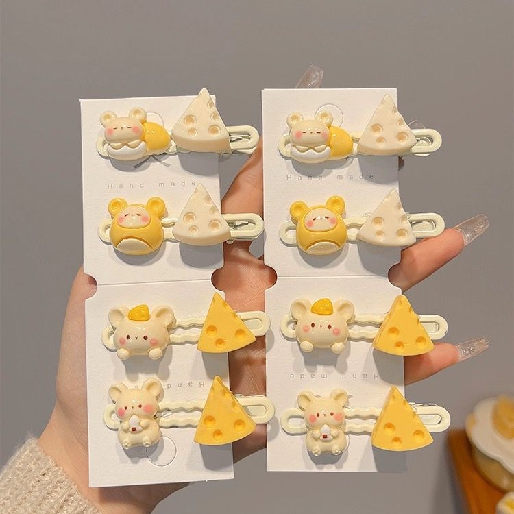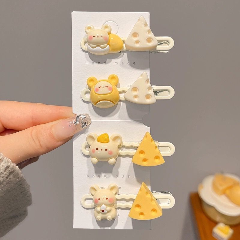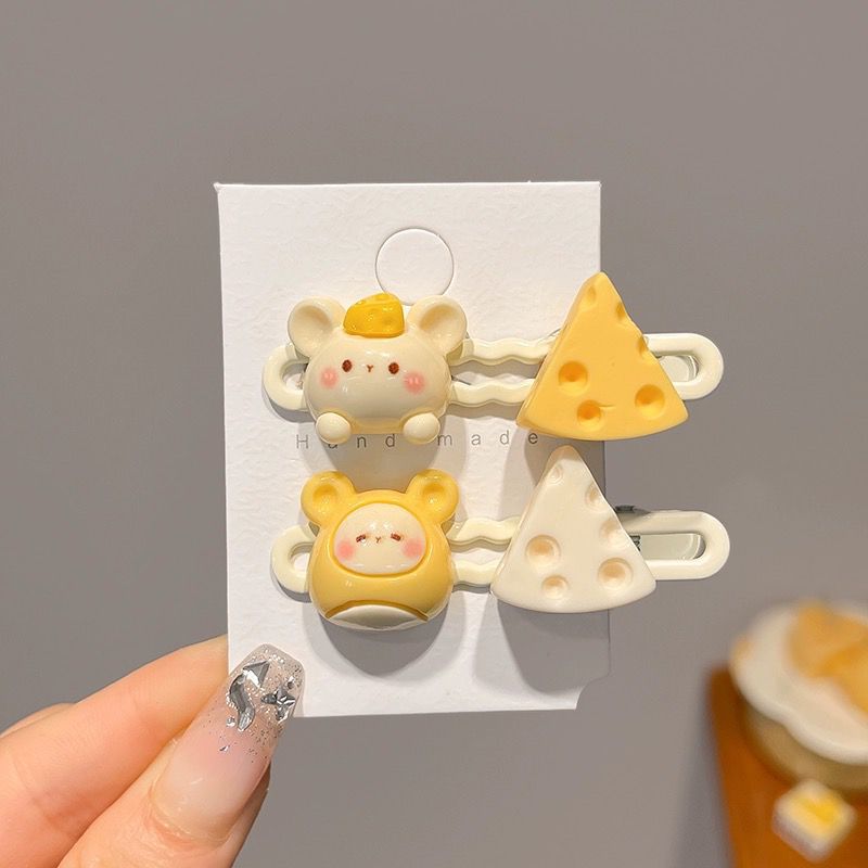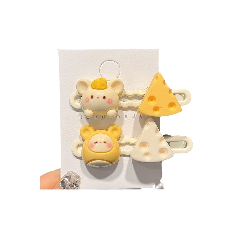 可爱卡通小老鼠奶酪发夹学生甜美少女心鸭嘴夹小女孩发卡刘海夹