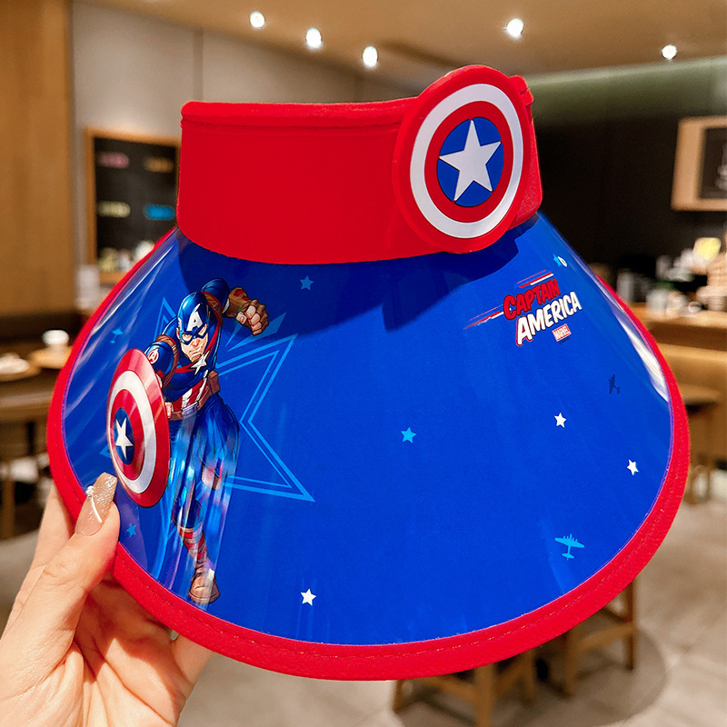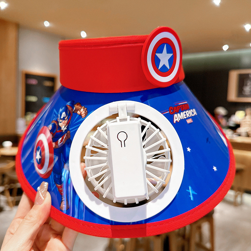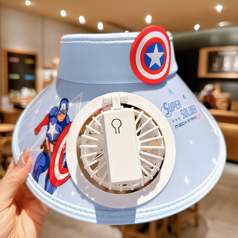 春夏儿童防晒风扇帽子美国队长帽子卡通男女宝帽子户外防晒大檐帽