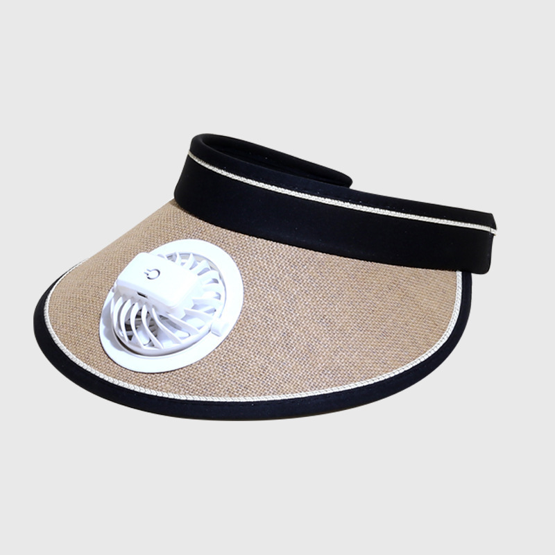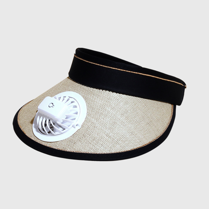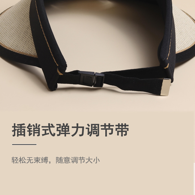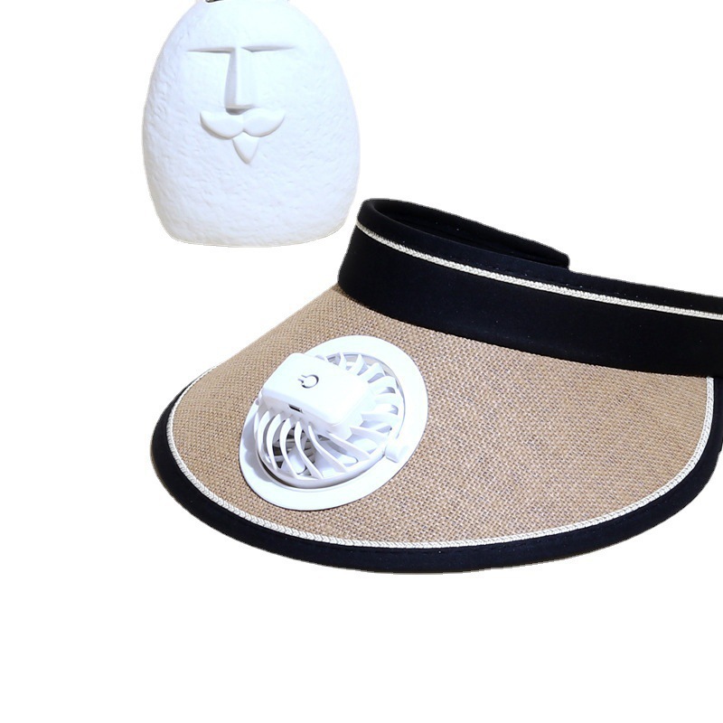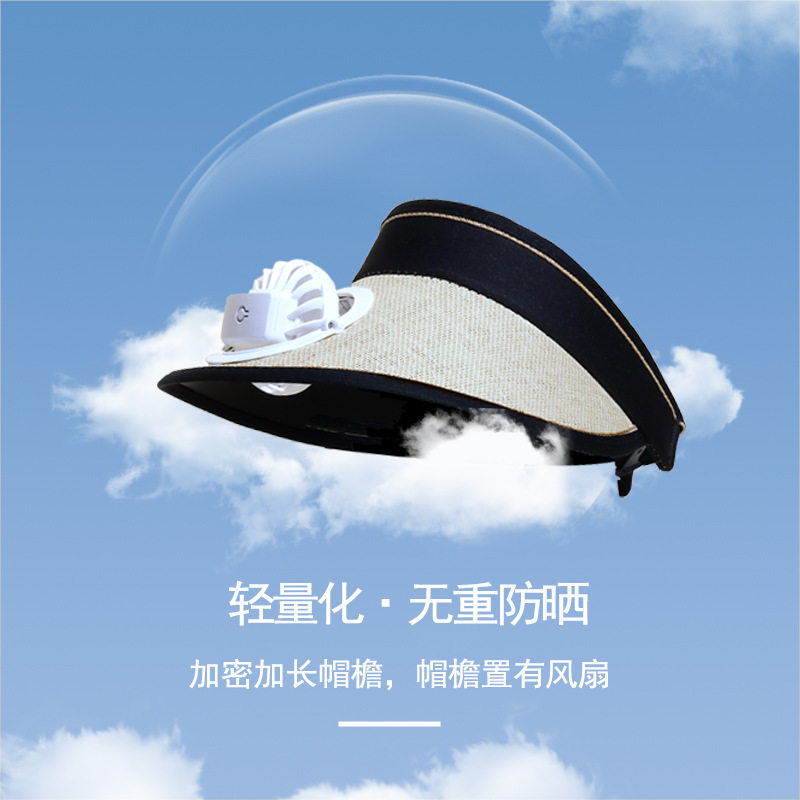 跨境夏季风扇帽草编空顶防紫外线大檐女防晒太阳帽百搭户外遮阳帽