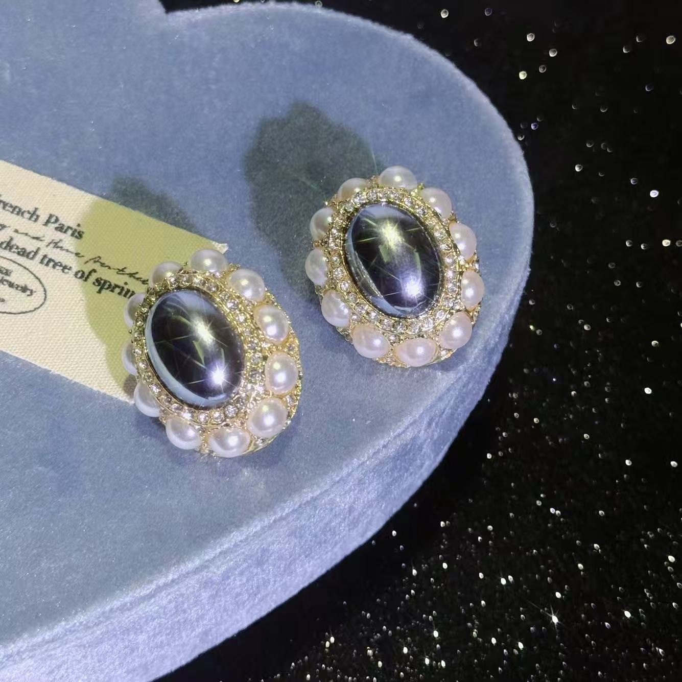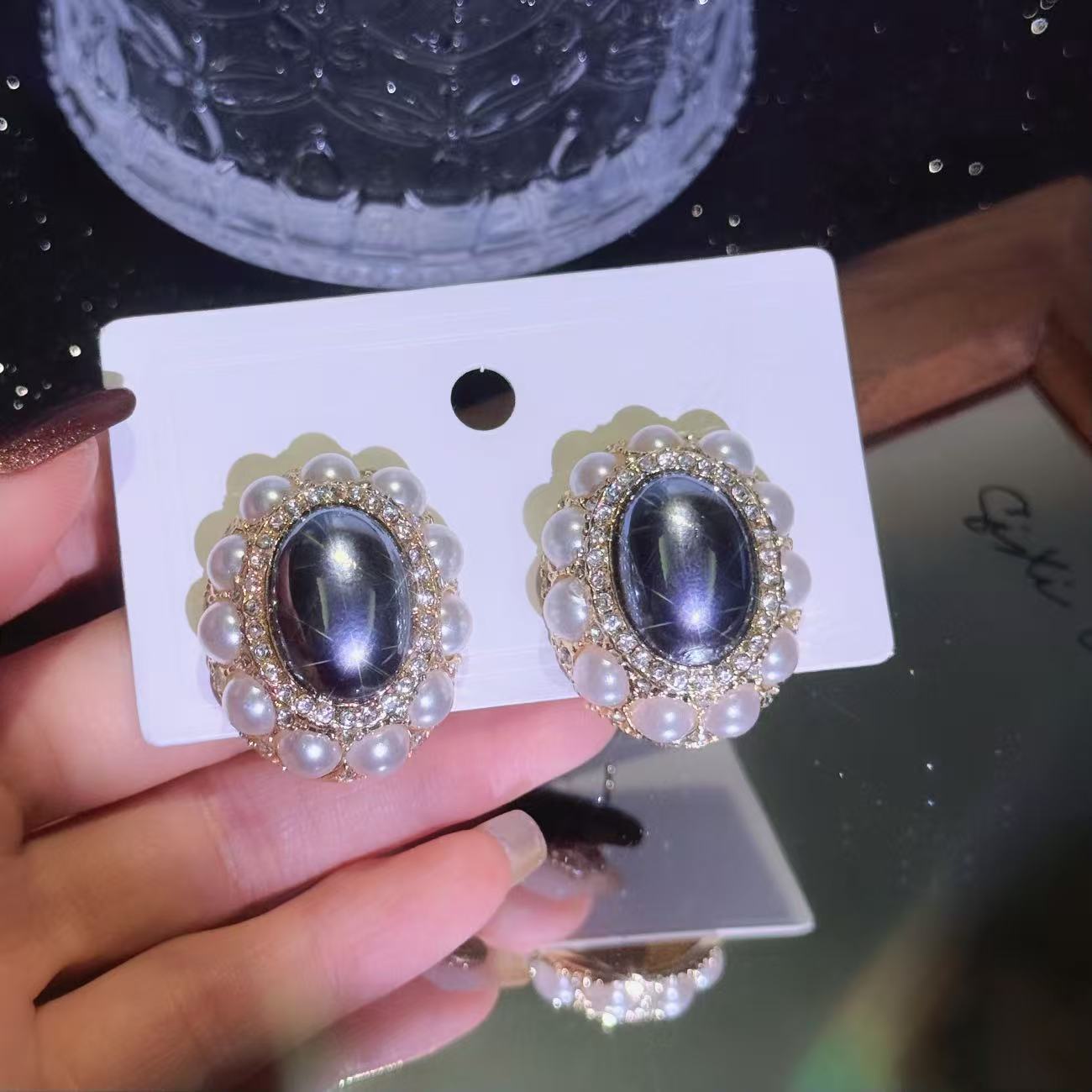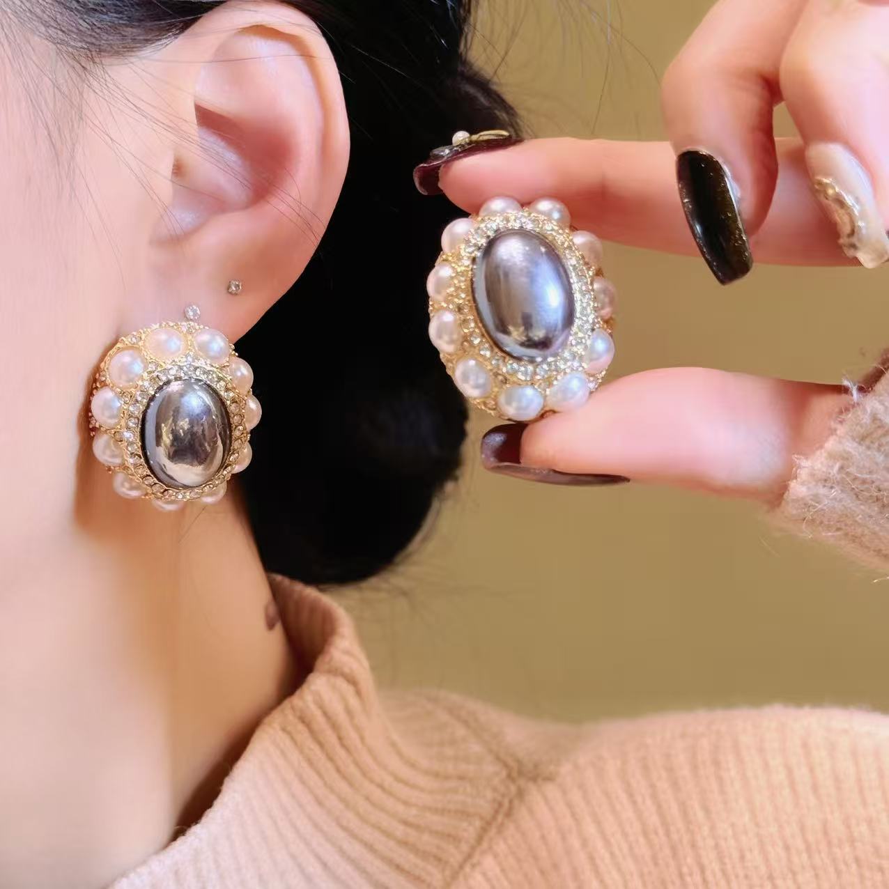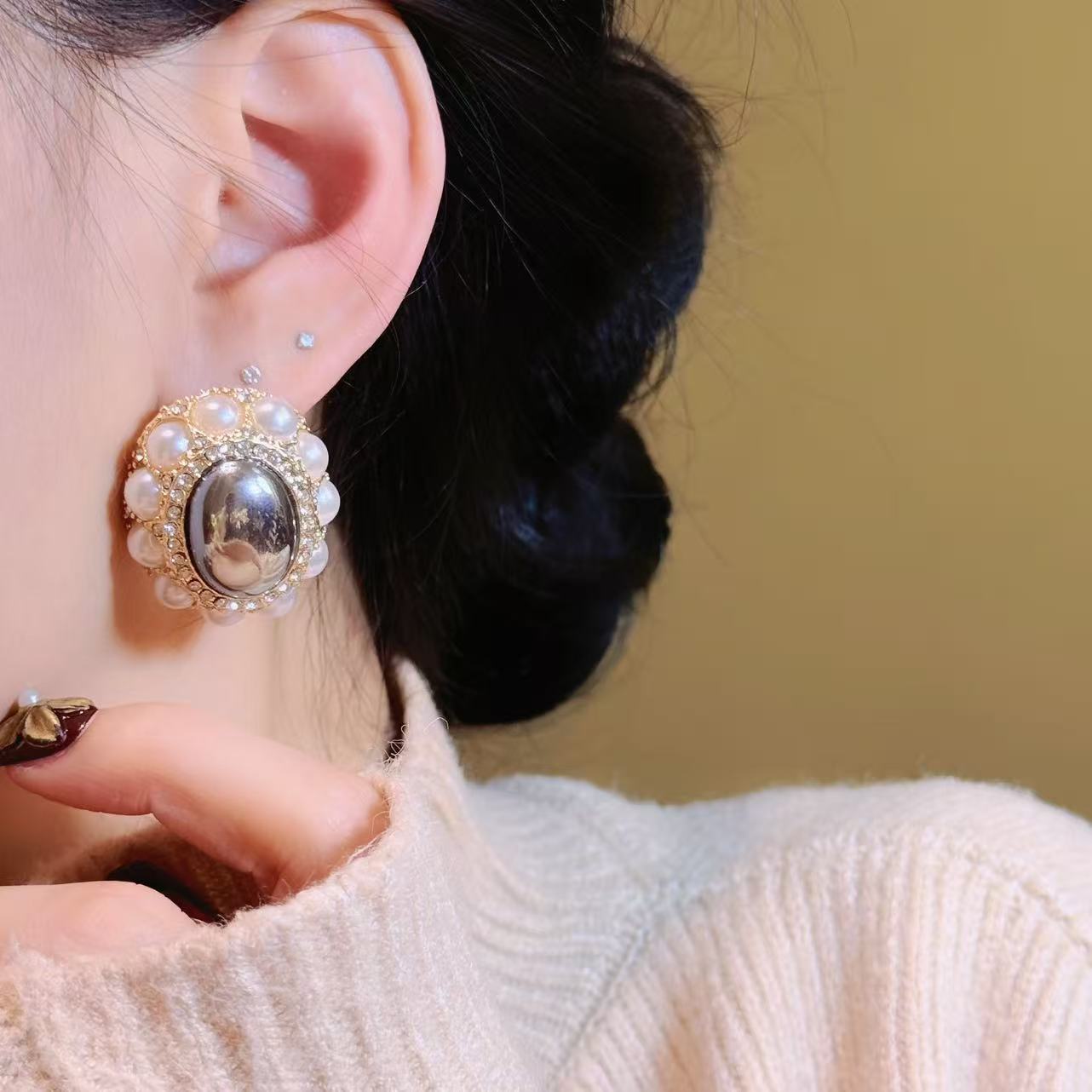 欧美跨境镶钻几何珍珠耳钉复古夸张耳环轻奢高级感耳饰设计感小众
