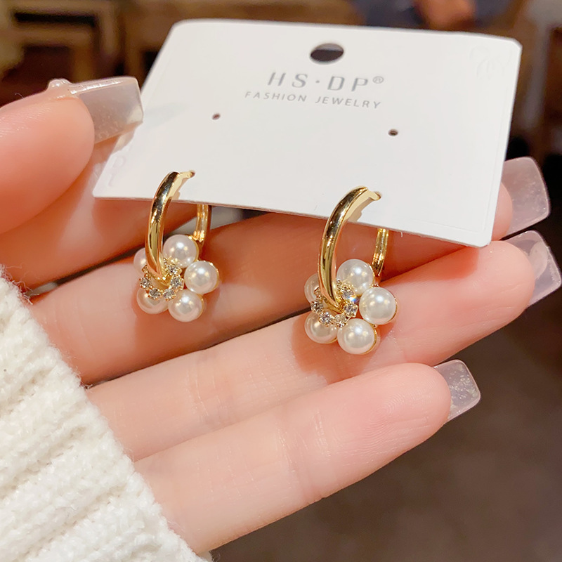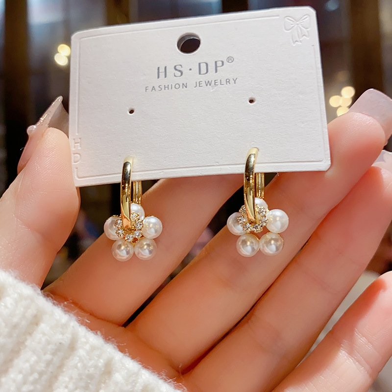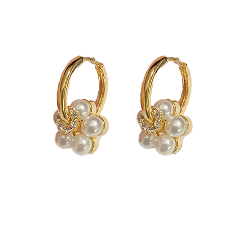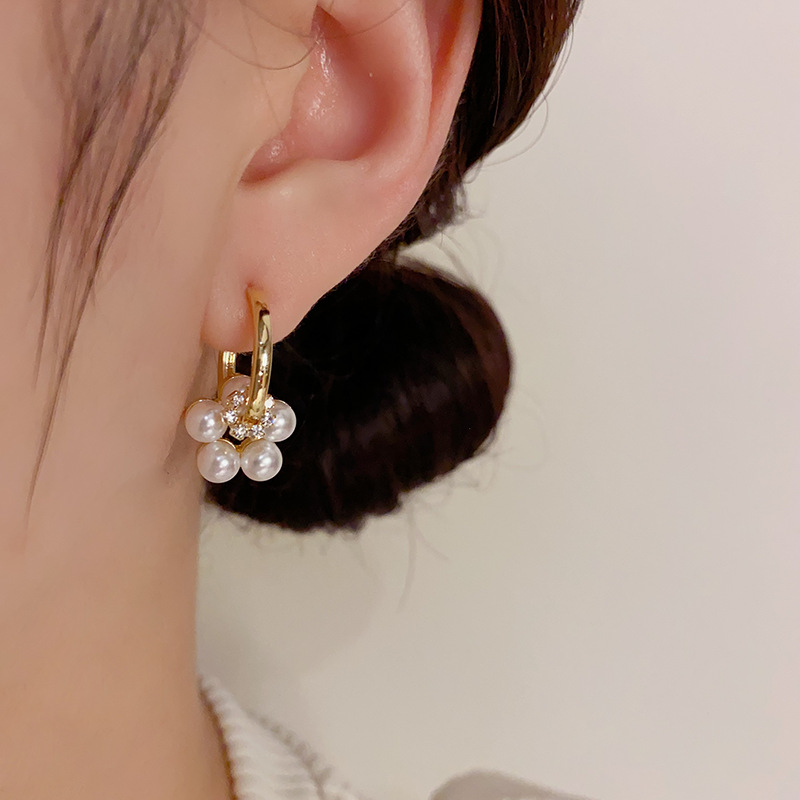 日韩甜美高级感气质时尚珍珠花朵耳扣女小众设计轻奢独特设计耳环