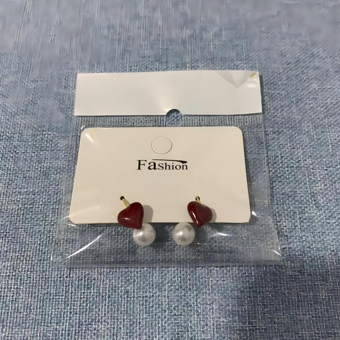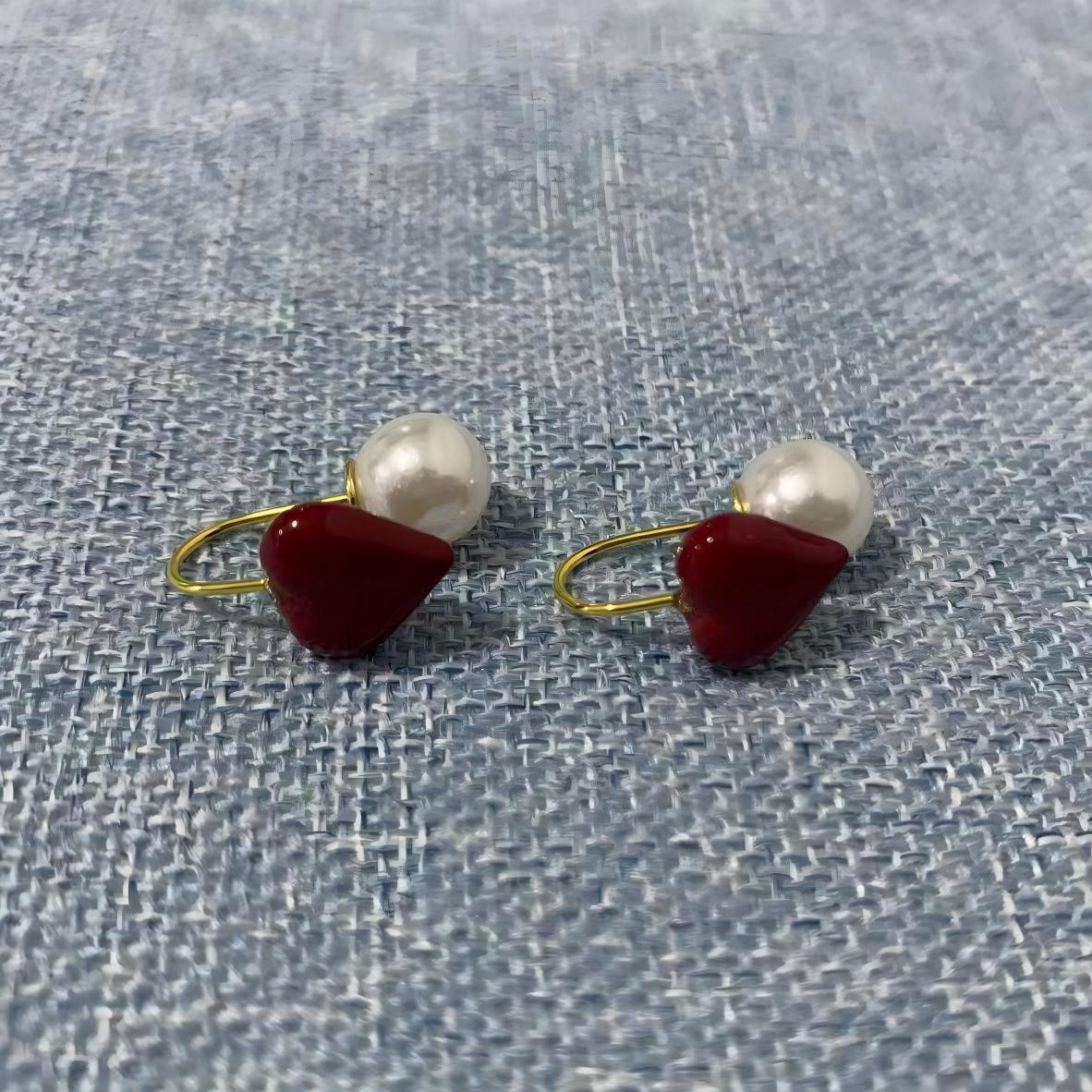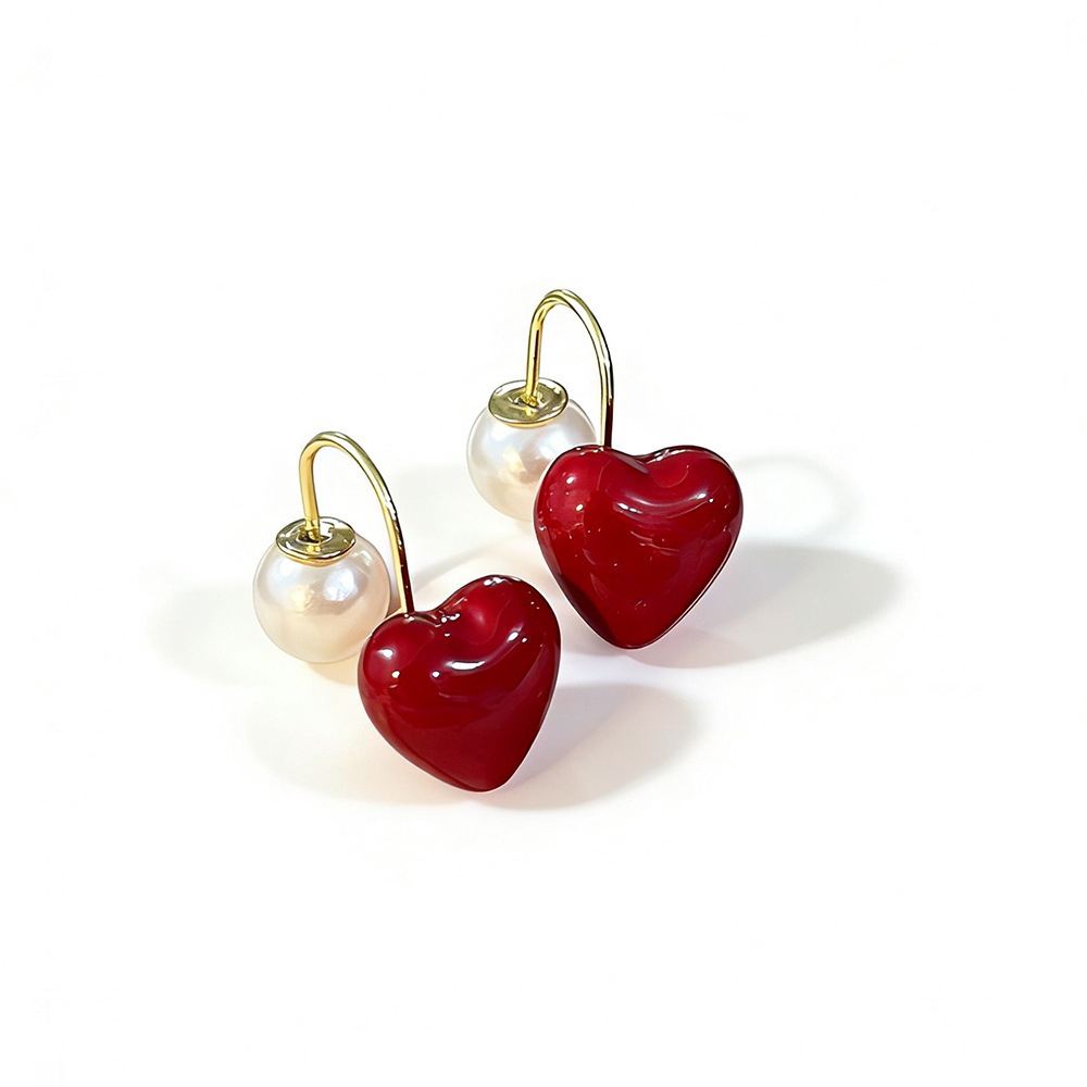 爆款爱心珍珠耳钉2026新年高级感耳环巨好看小众红色两戴桃心耳饰