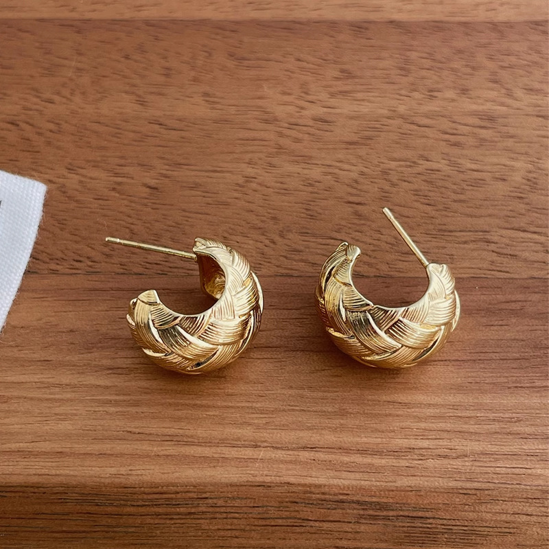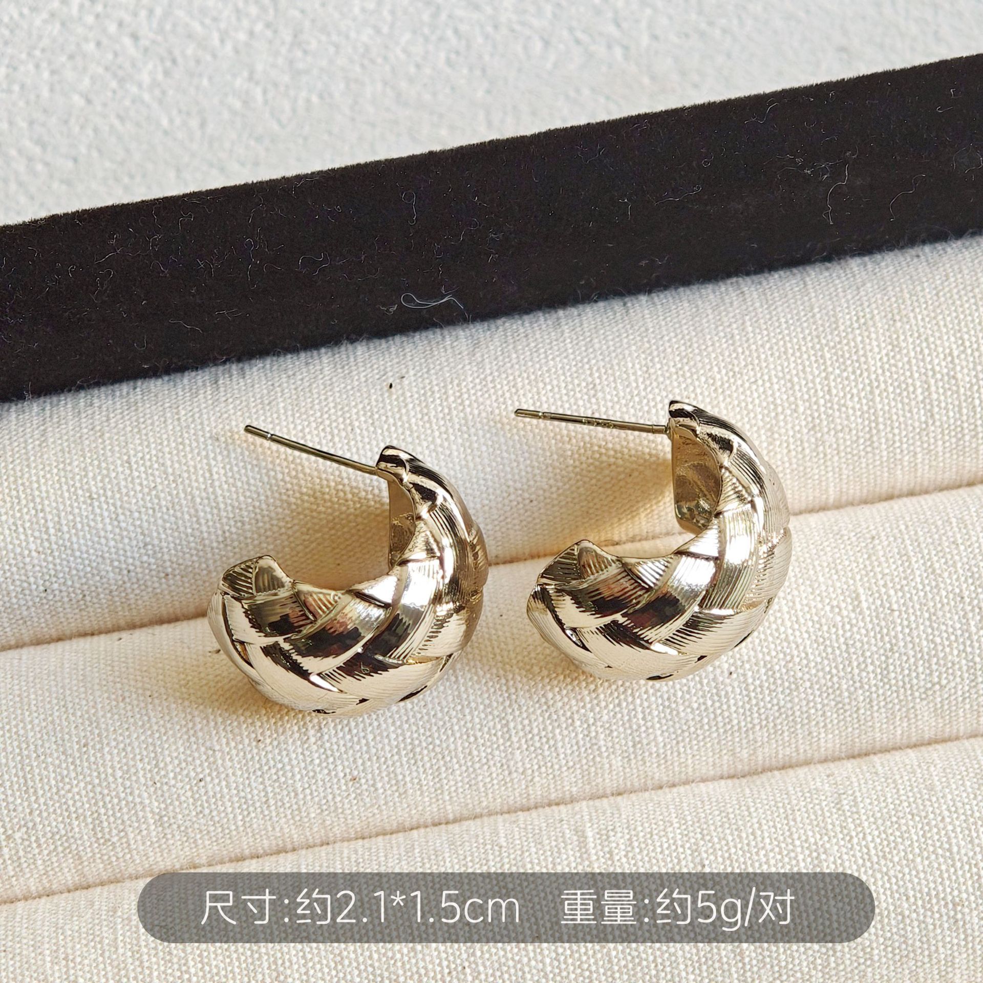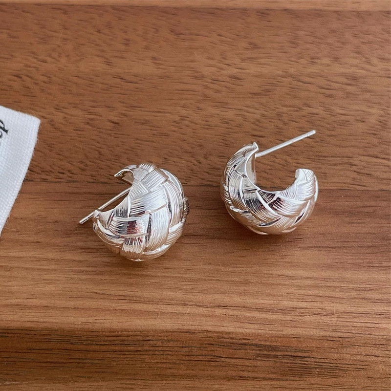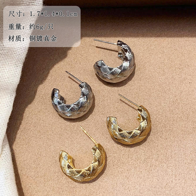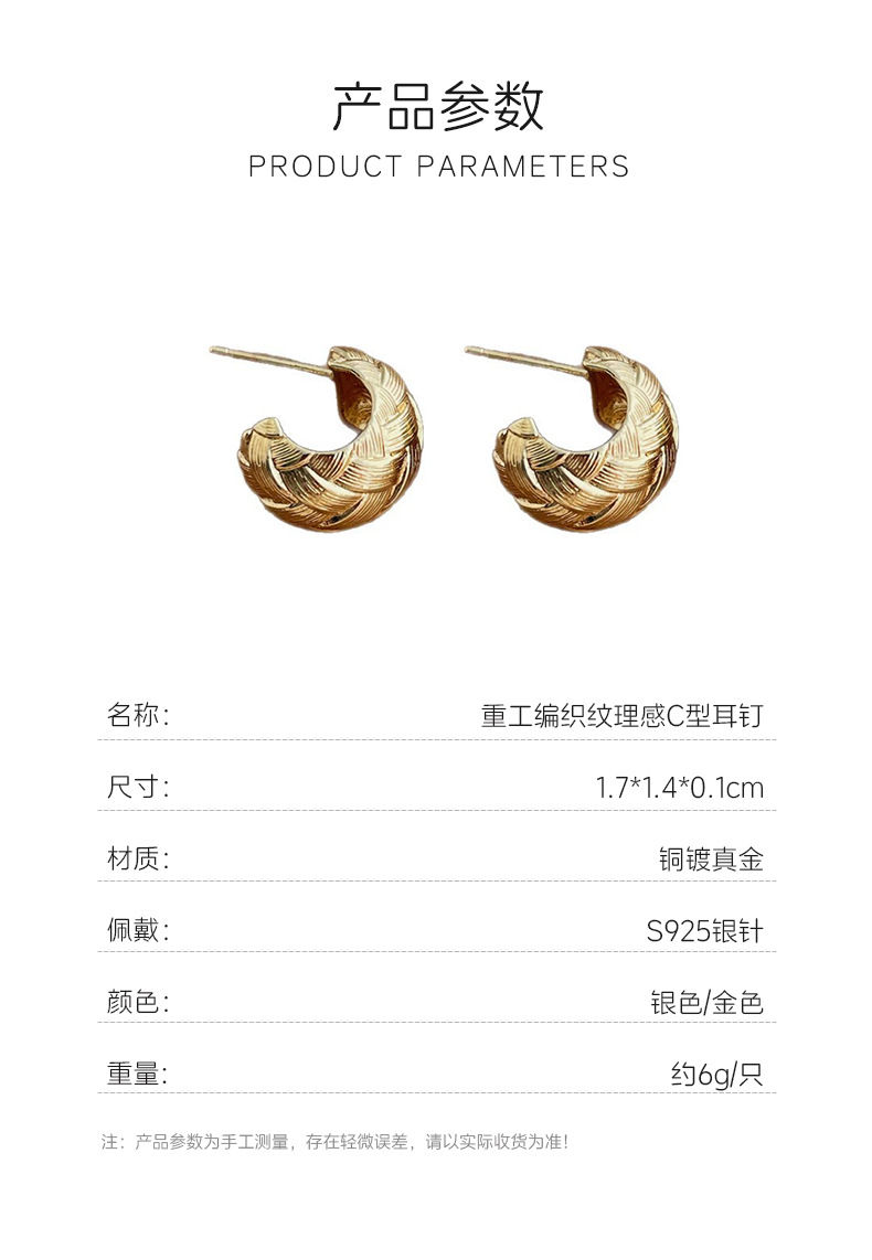 法式925银针编织c型拉丝耳环耳针小众设计感轻奢个性秋冬百搭耳饰