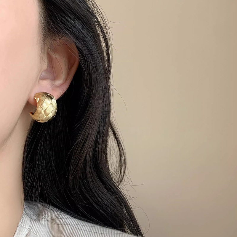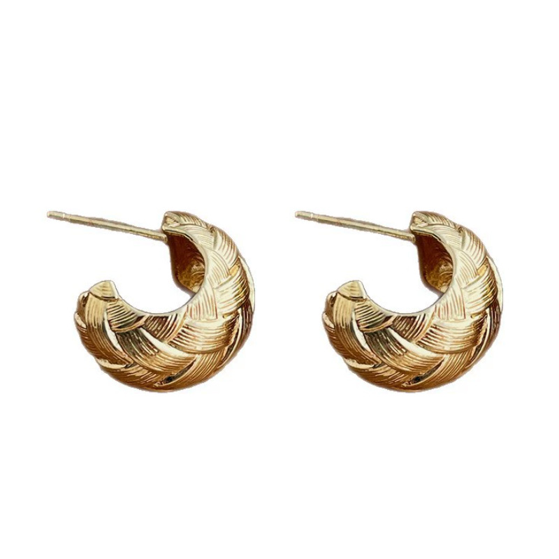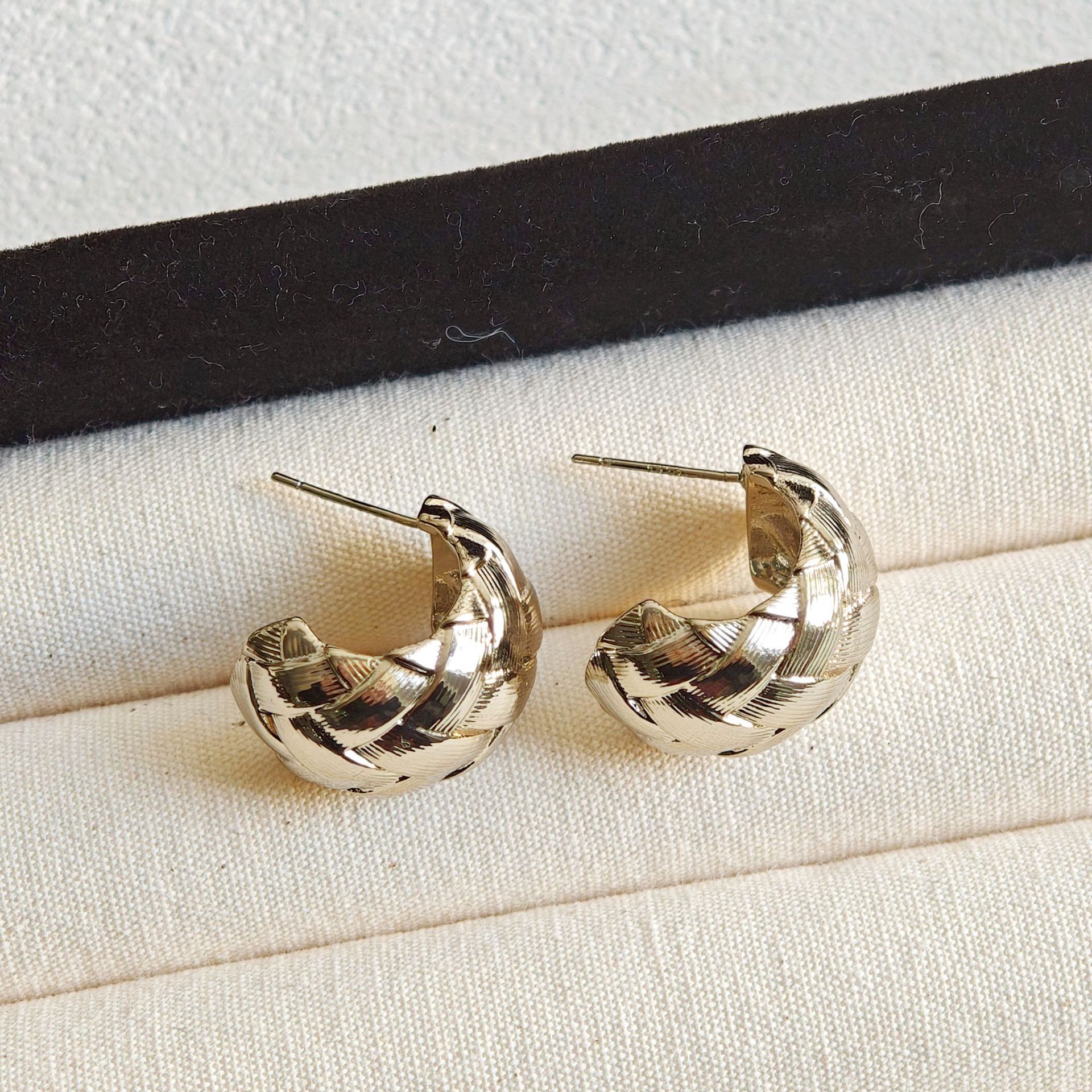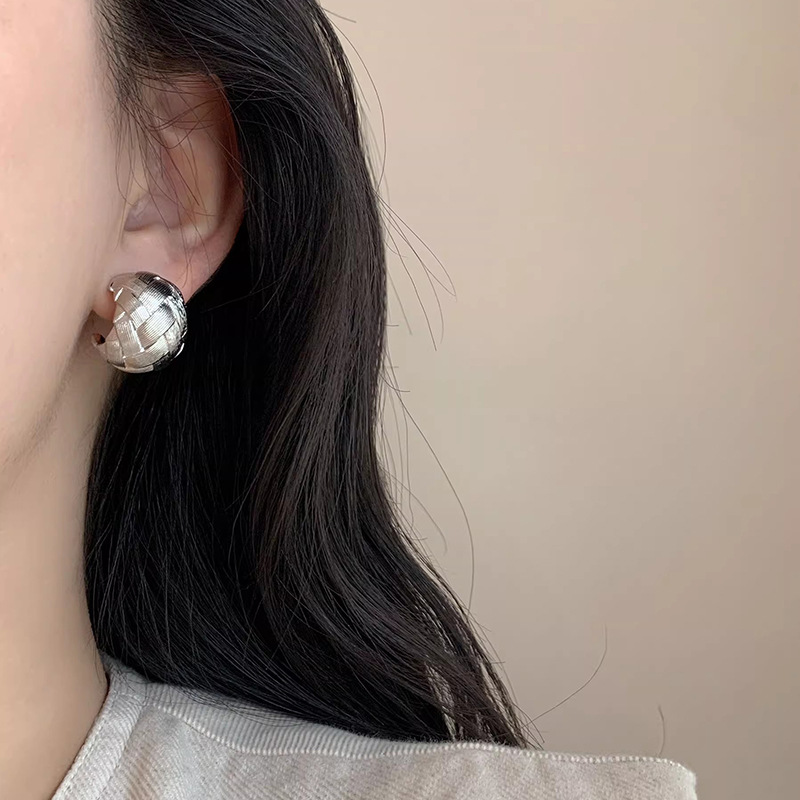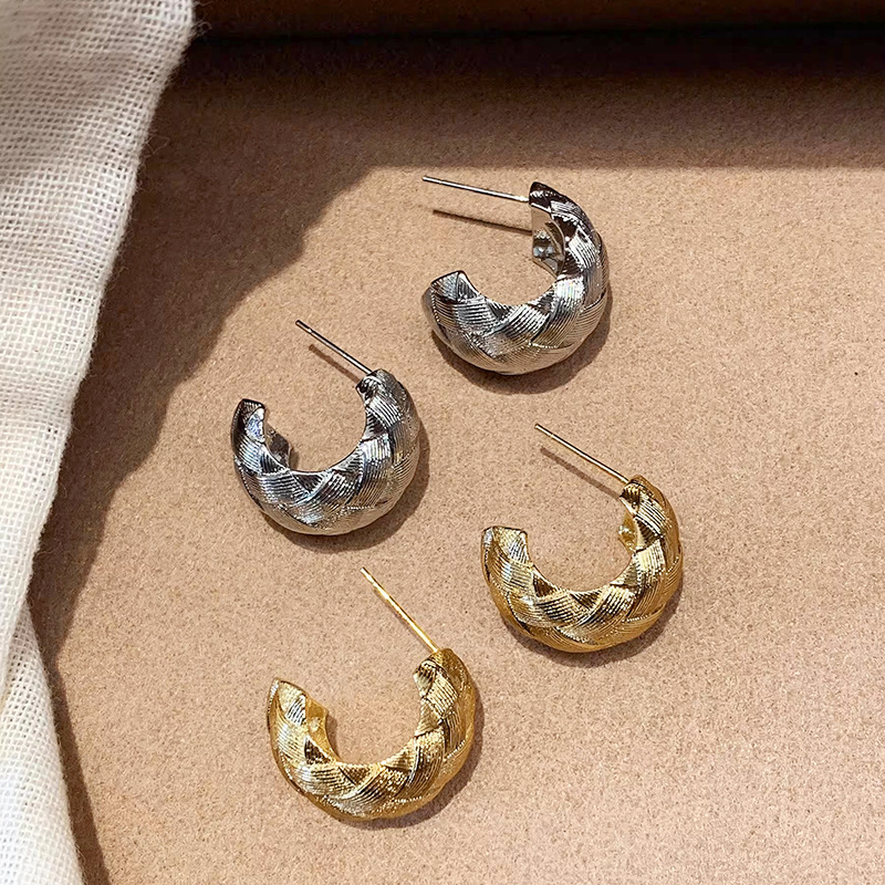 法式925银针编织c型拉丝耳环耳针小众设计感轻奢个性秋冬百搭耳饰