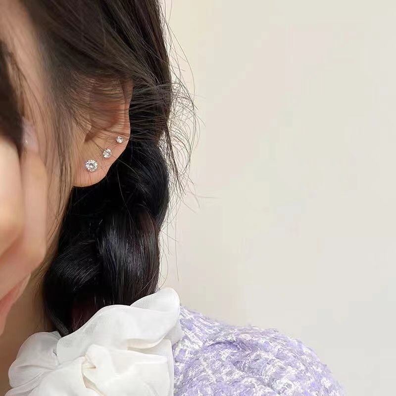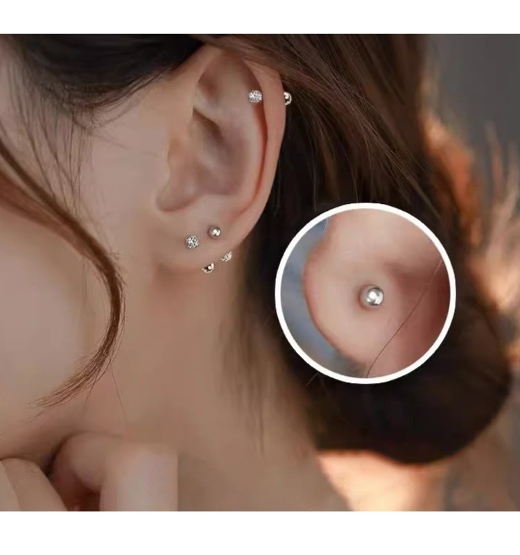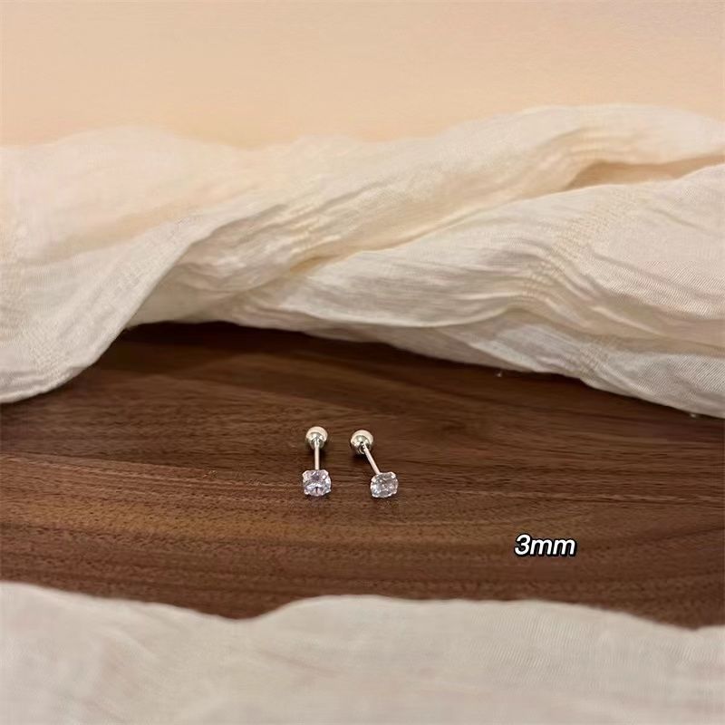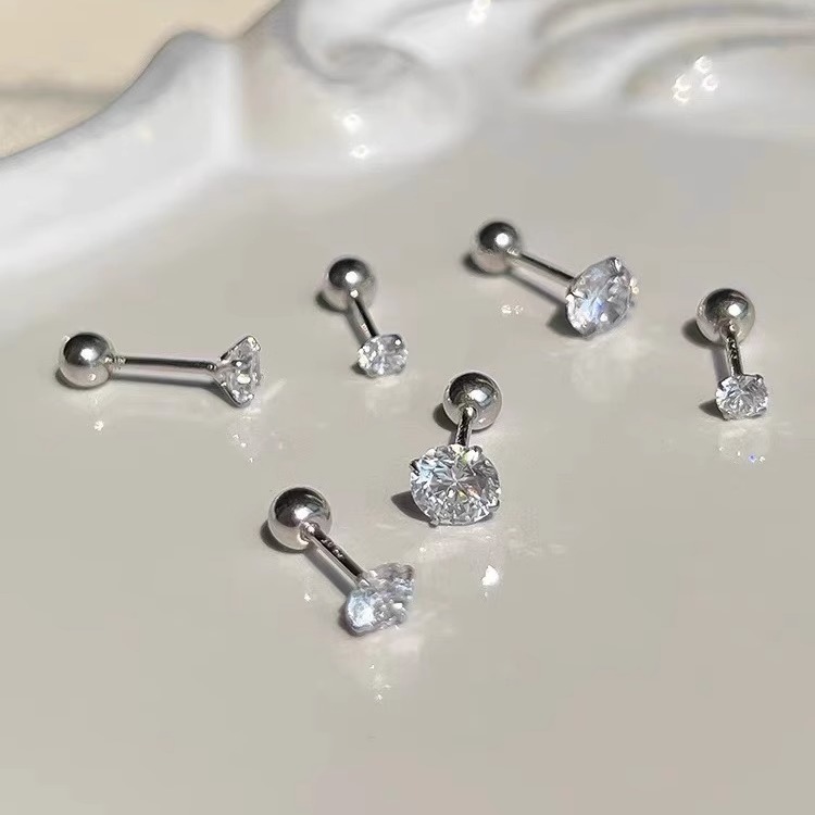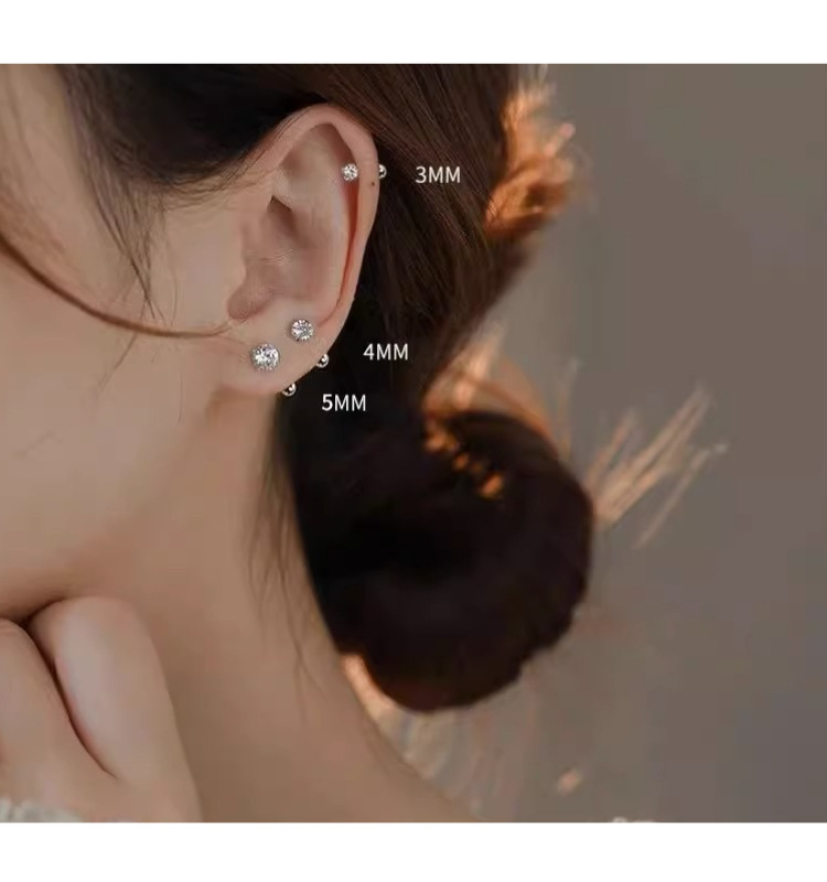 925纯银养耳洞高级感螺丝耳骨钉小众设计感精致睡觉免摘锆石耳环