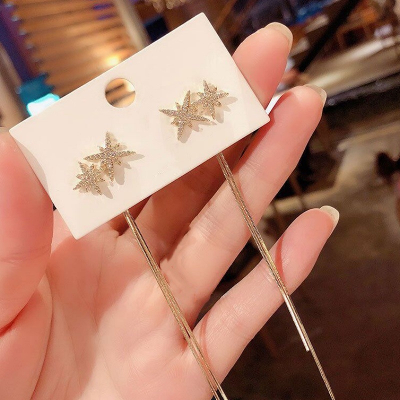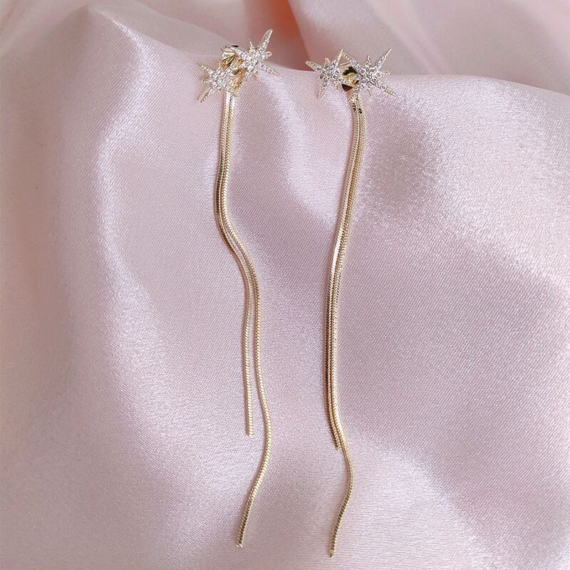 韩国东大门个性气质百搭款耳环时尚简约潮流超仙星星长款流苏耳环