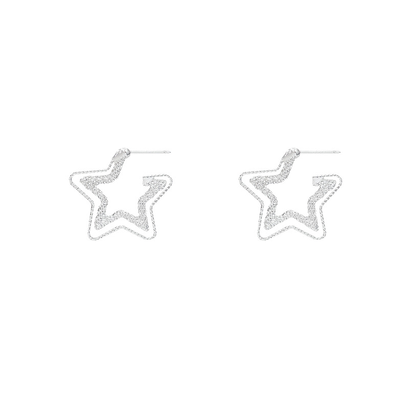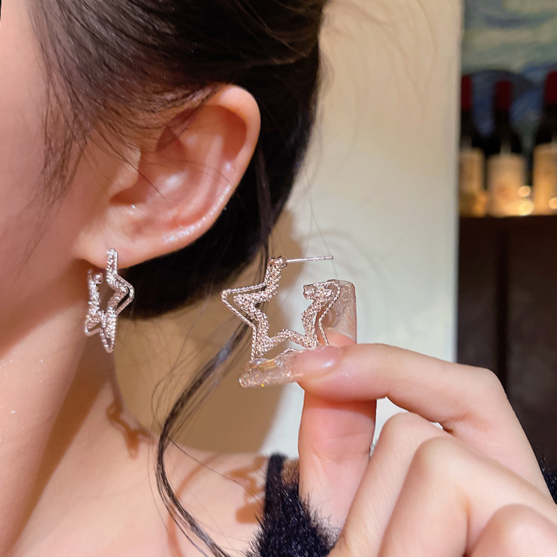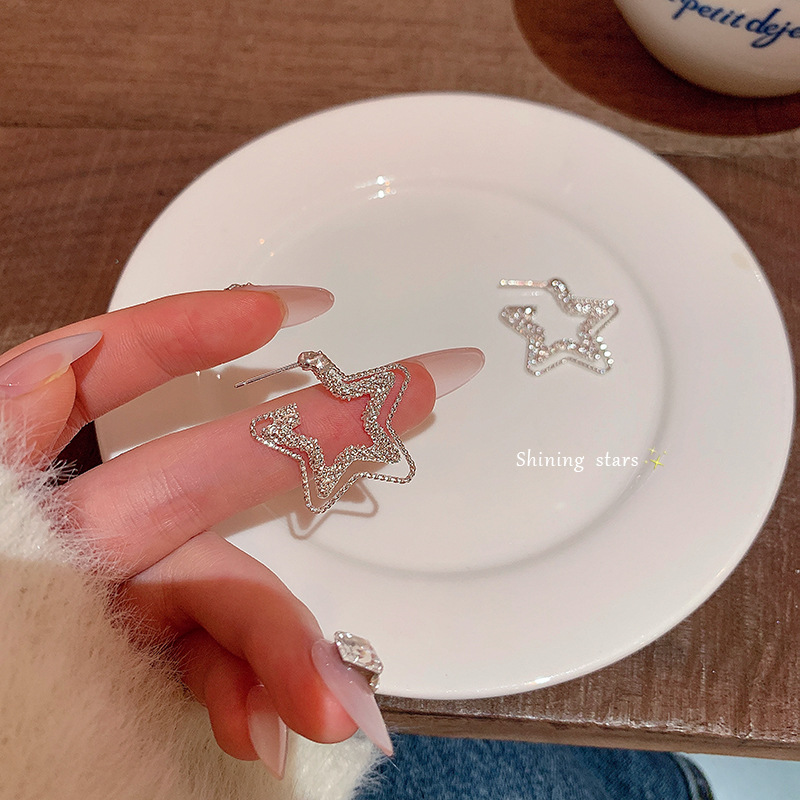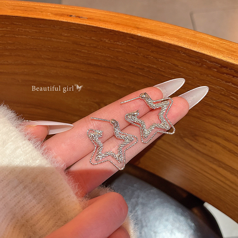 满天星双层碎冰冰五角星耳环女轻奢小众设计感波光粼粼星形耳饰品