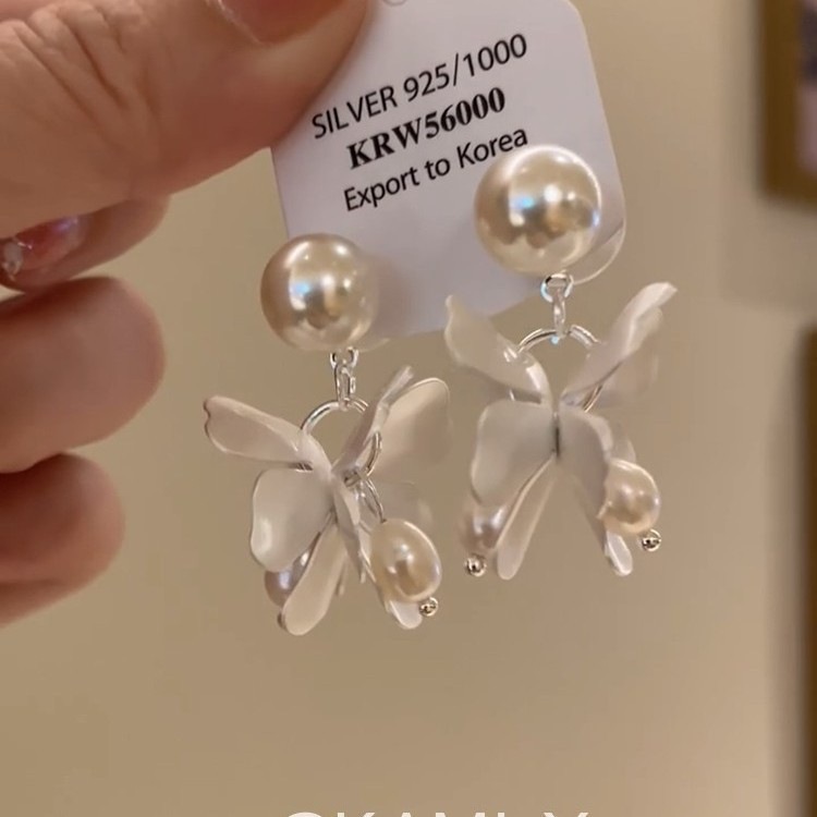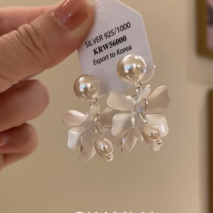 超仙仿珍珠亚克力花朵耳环女小众时尚气质优雅百搭个性高级耳饰
