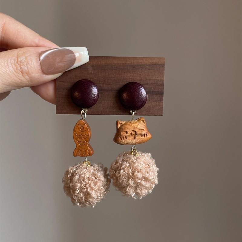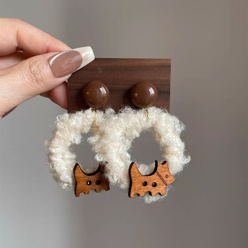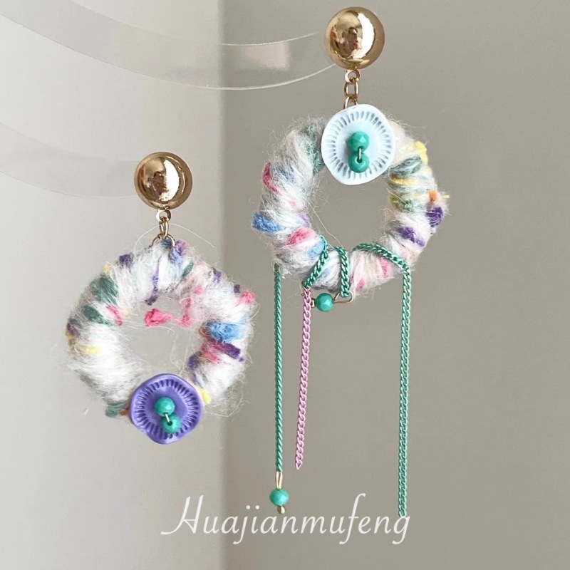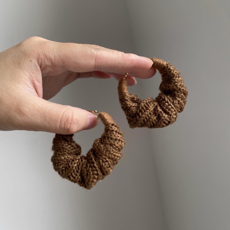 很适合秋冬戴~复古美拉德棕色针织毛线耳圈圆圈耳环女氛围感耳饰