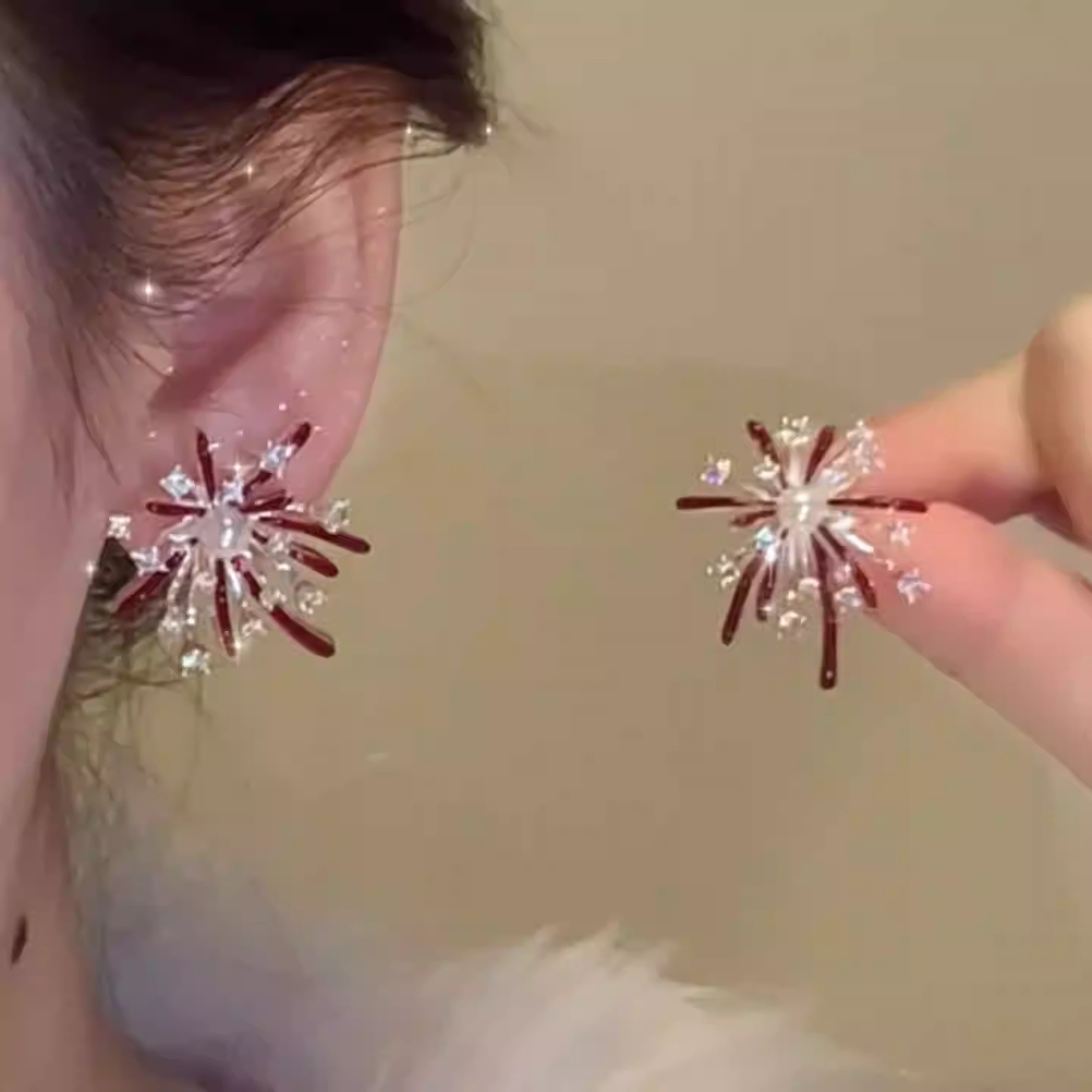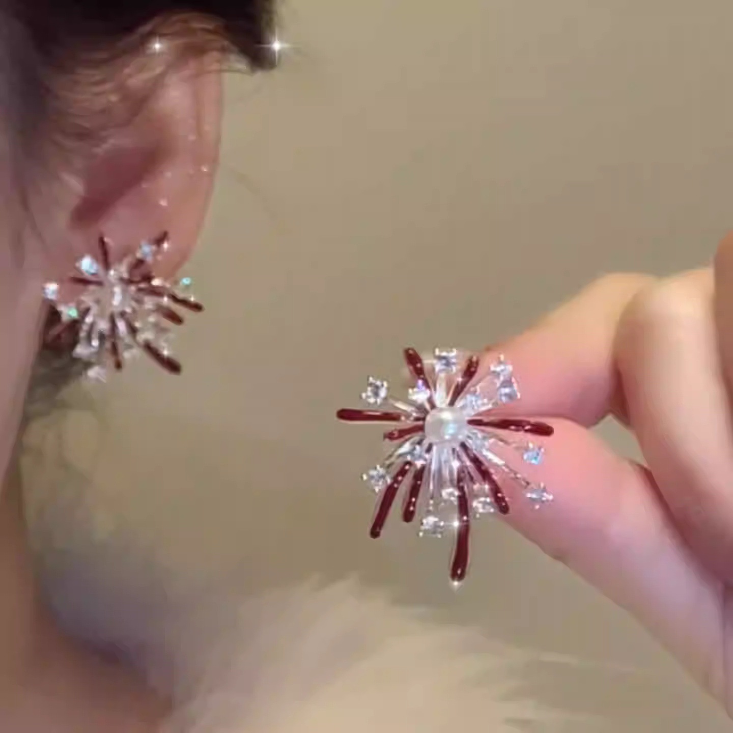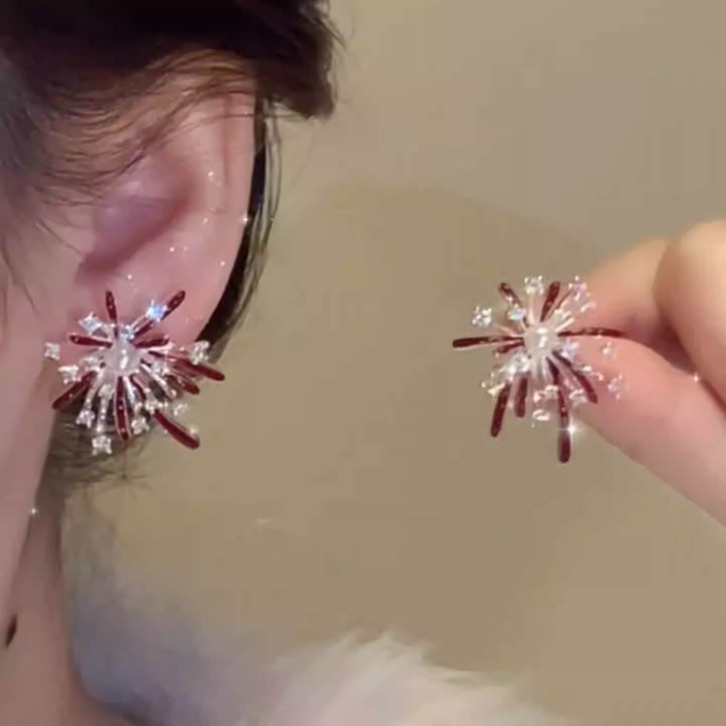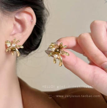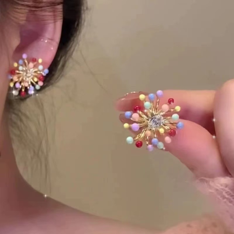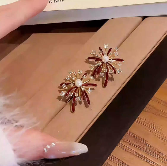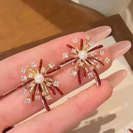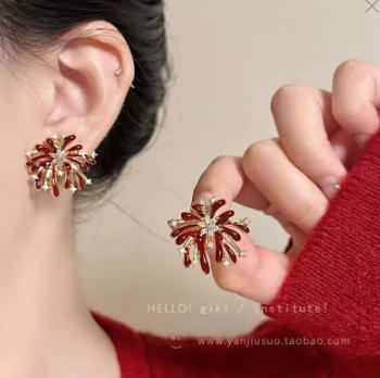 秋冬新款红色烟花炸开耳环时尚百搭日常通勤设计感高级感烟花耳环