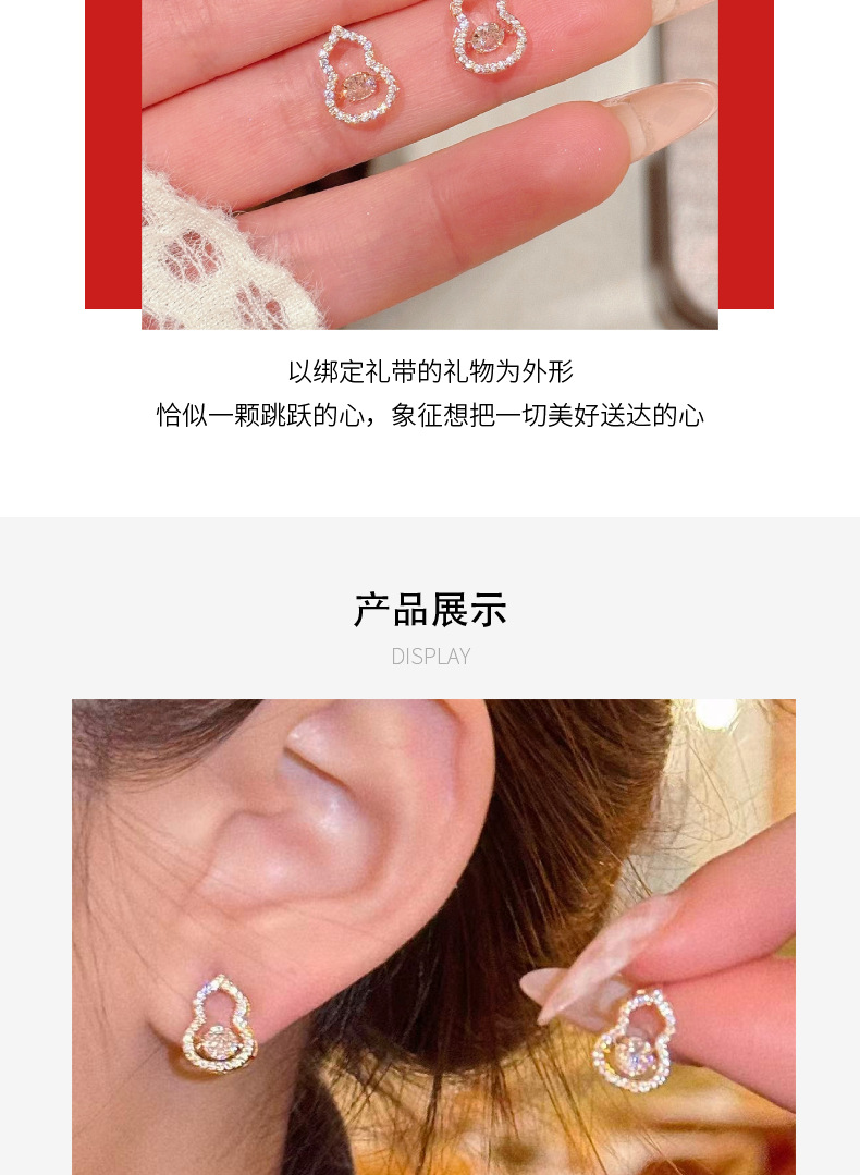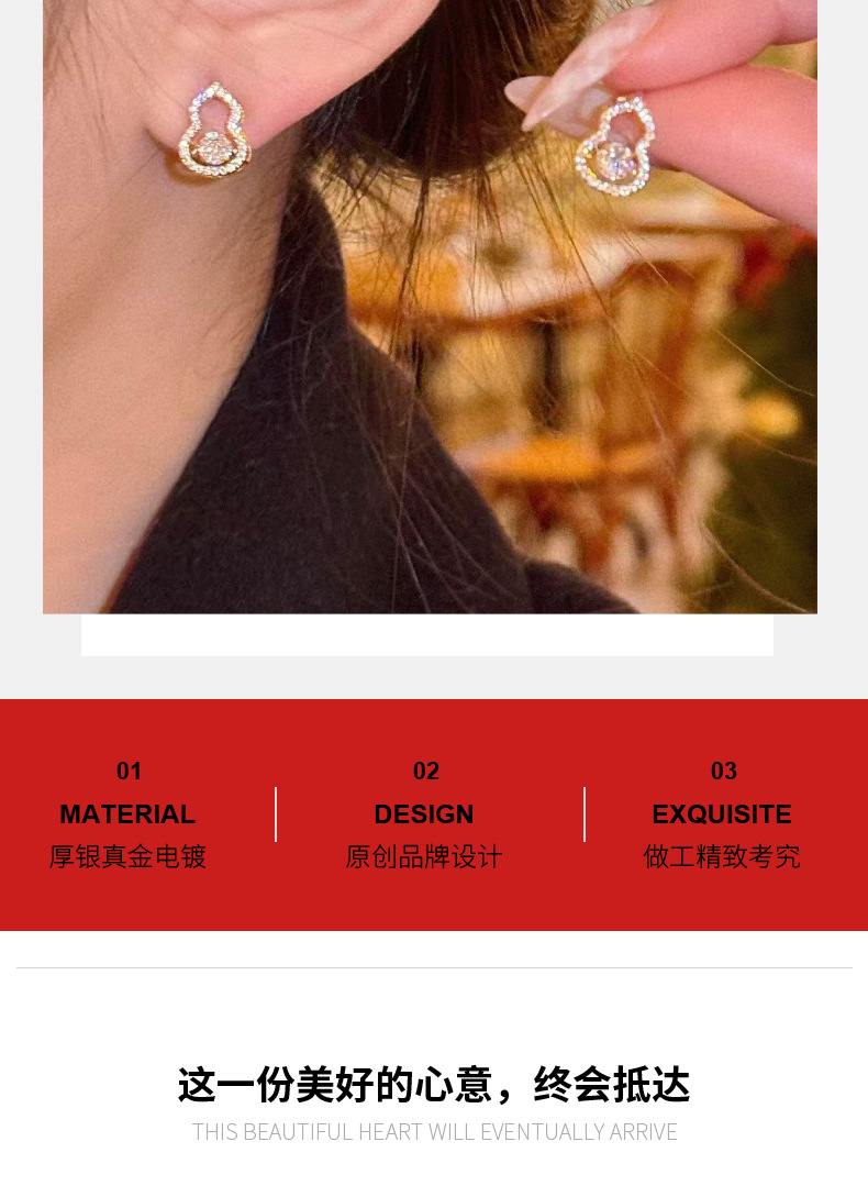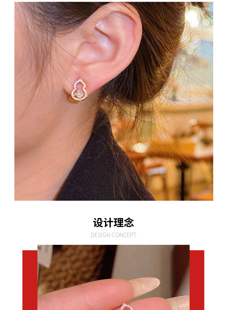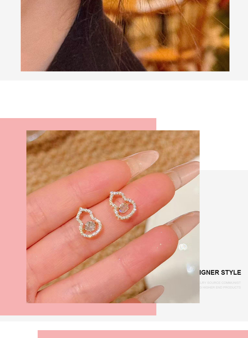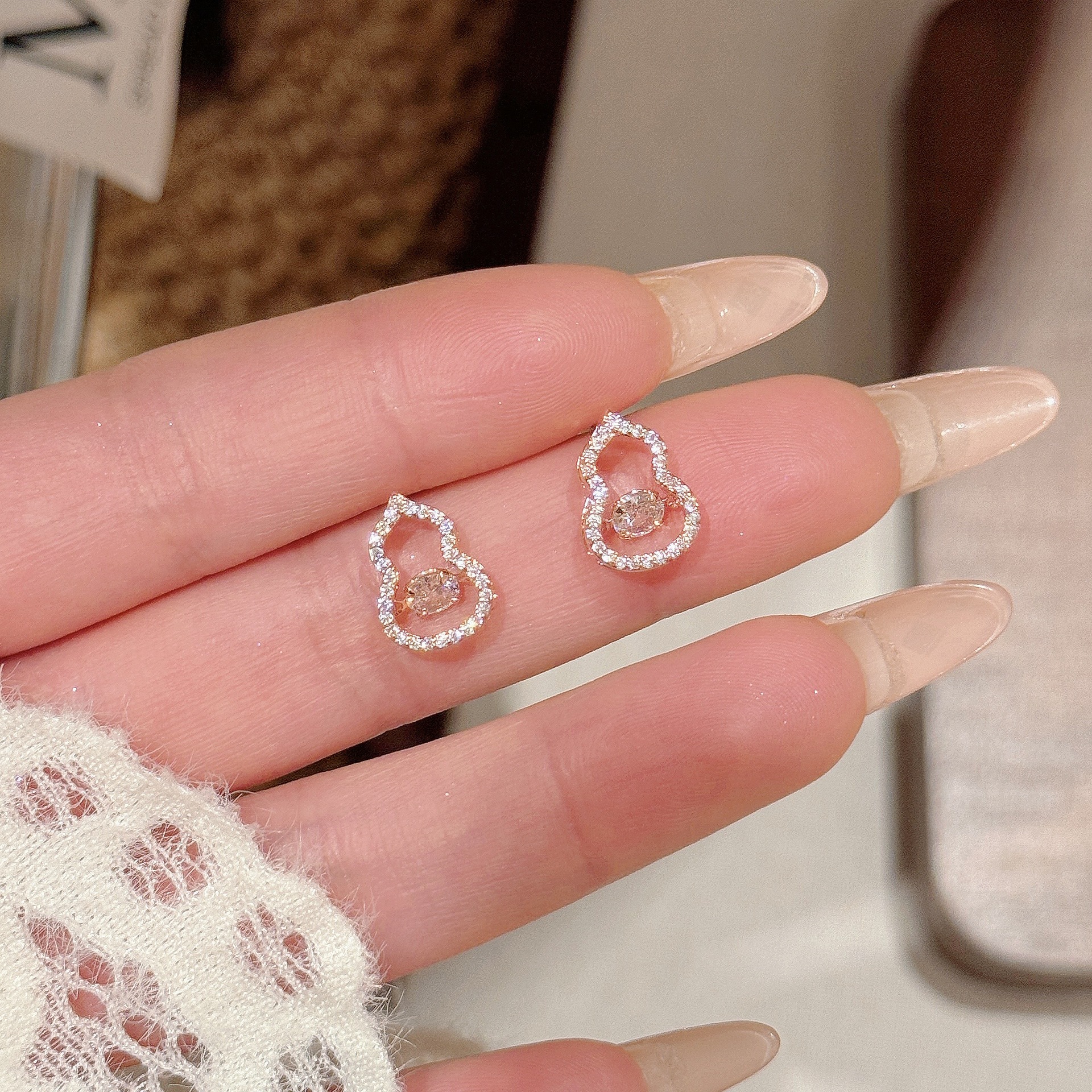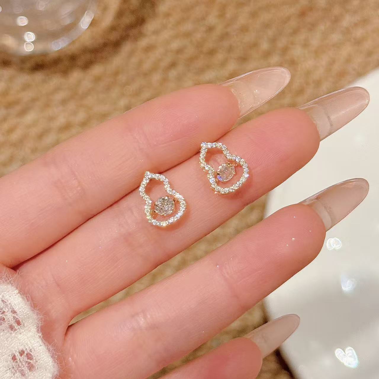 新中式镂空满锆石葫芦耳饰设计感高级感百搭轻奢耳圈精致百搭耳环