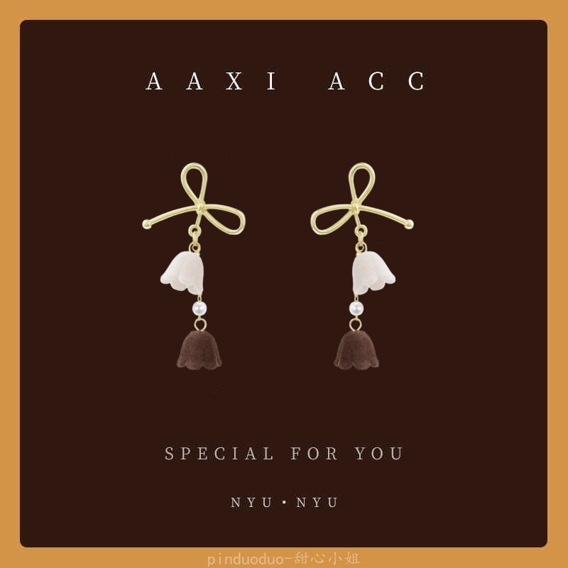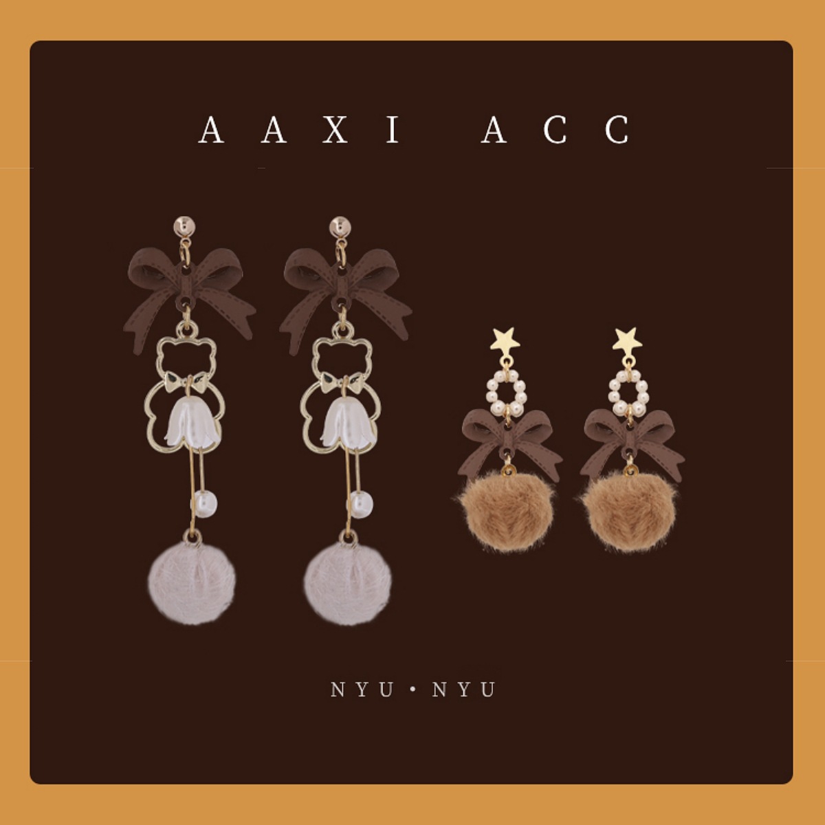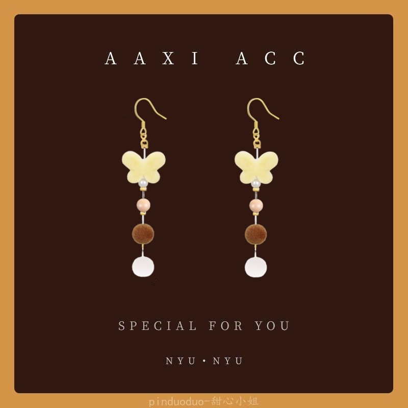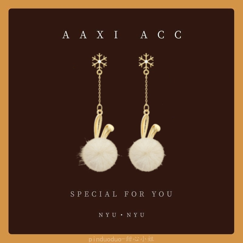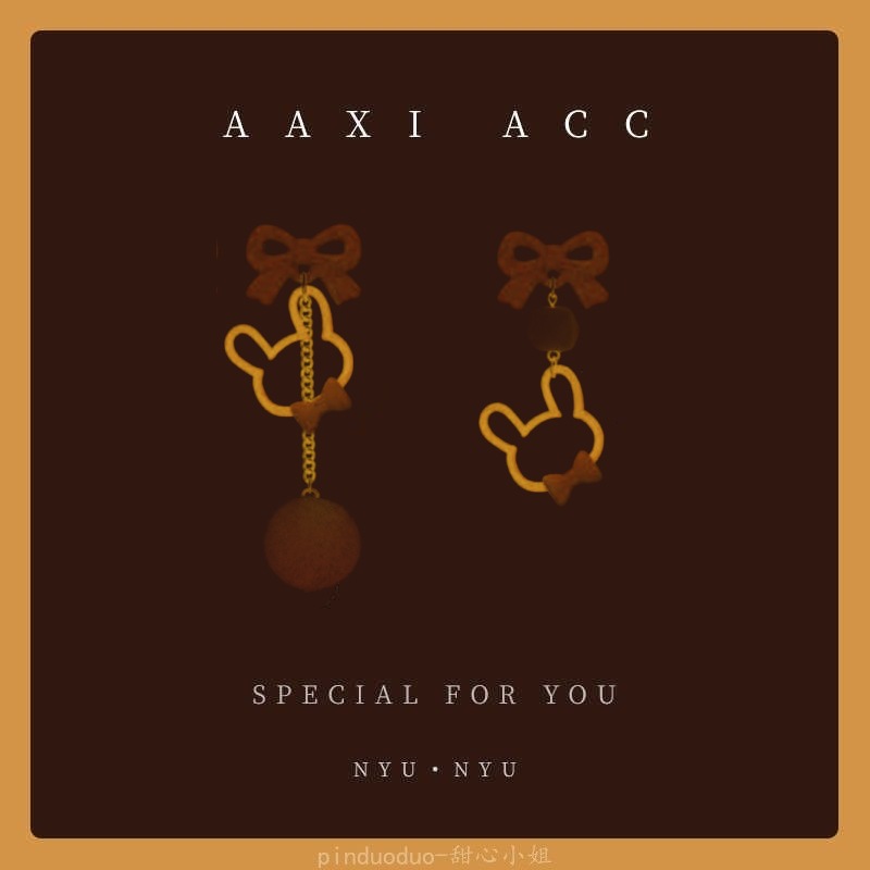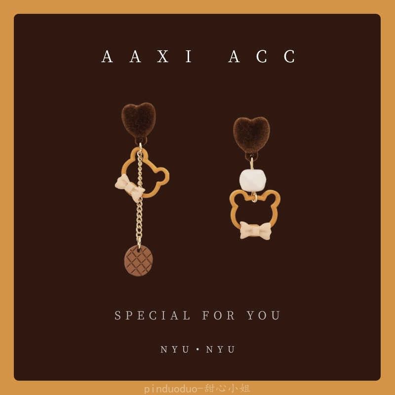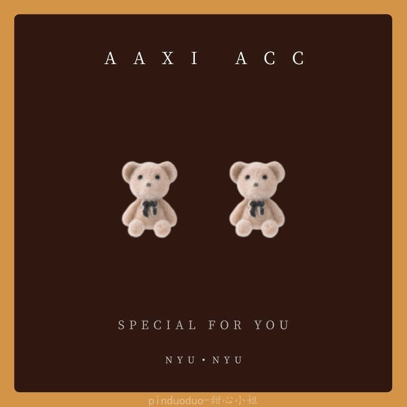 秋冬新款美拉德风小熊毛球耳环少女气质百搭蝴蝶结耳饰无耳洞耳夹