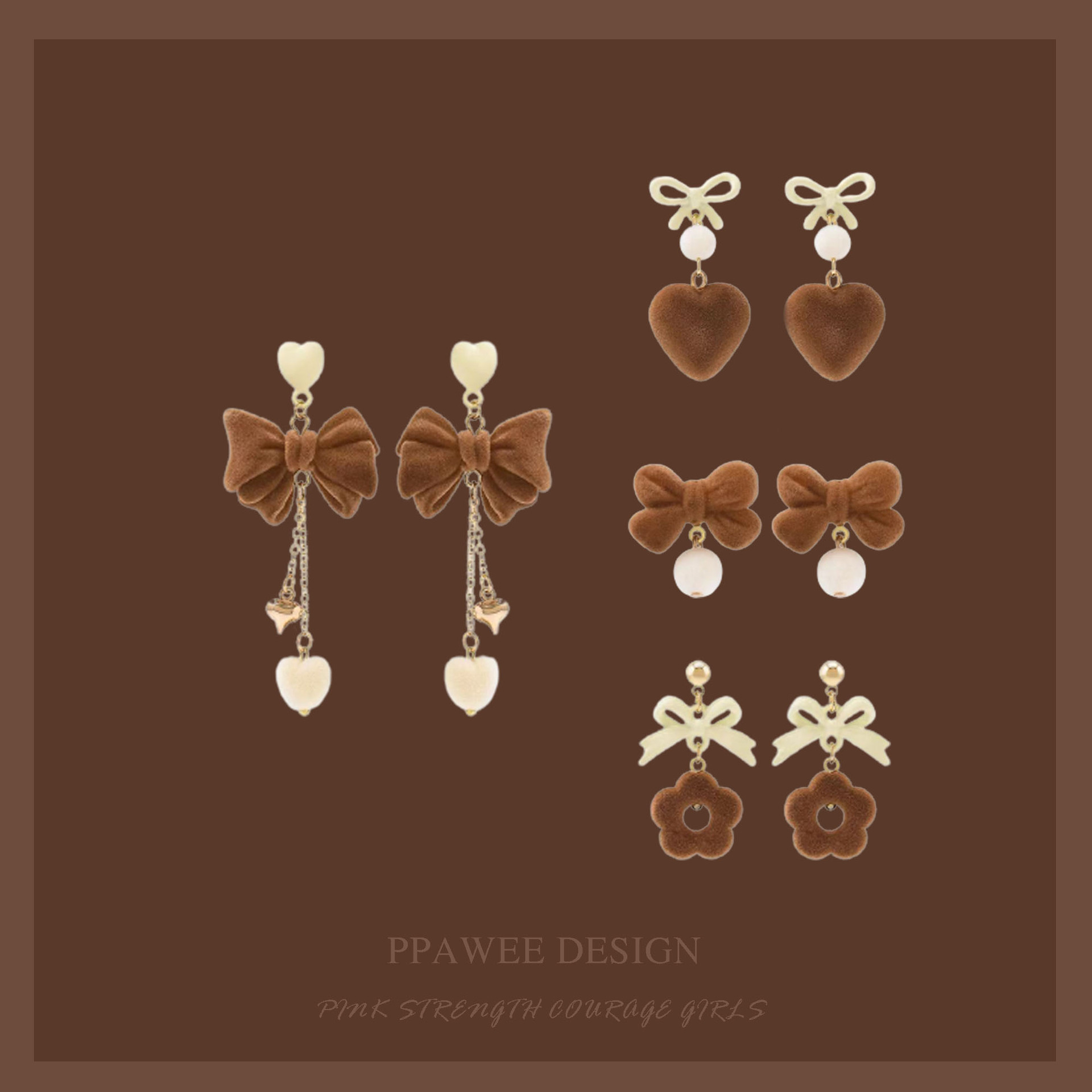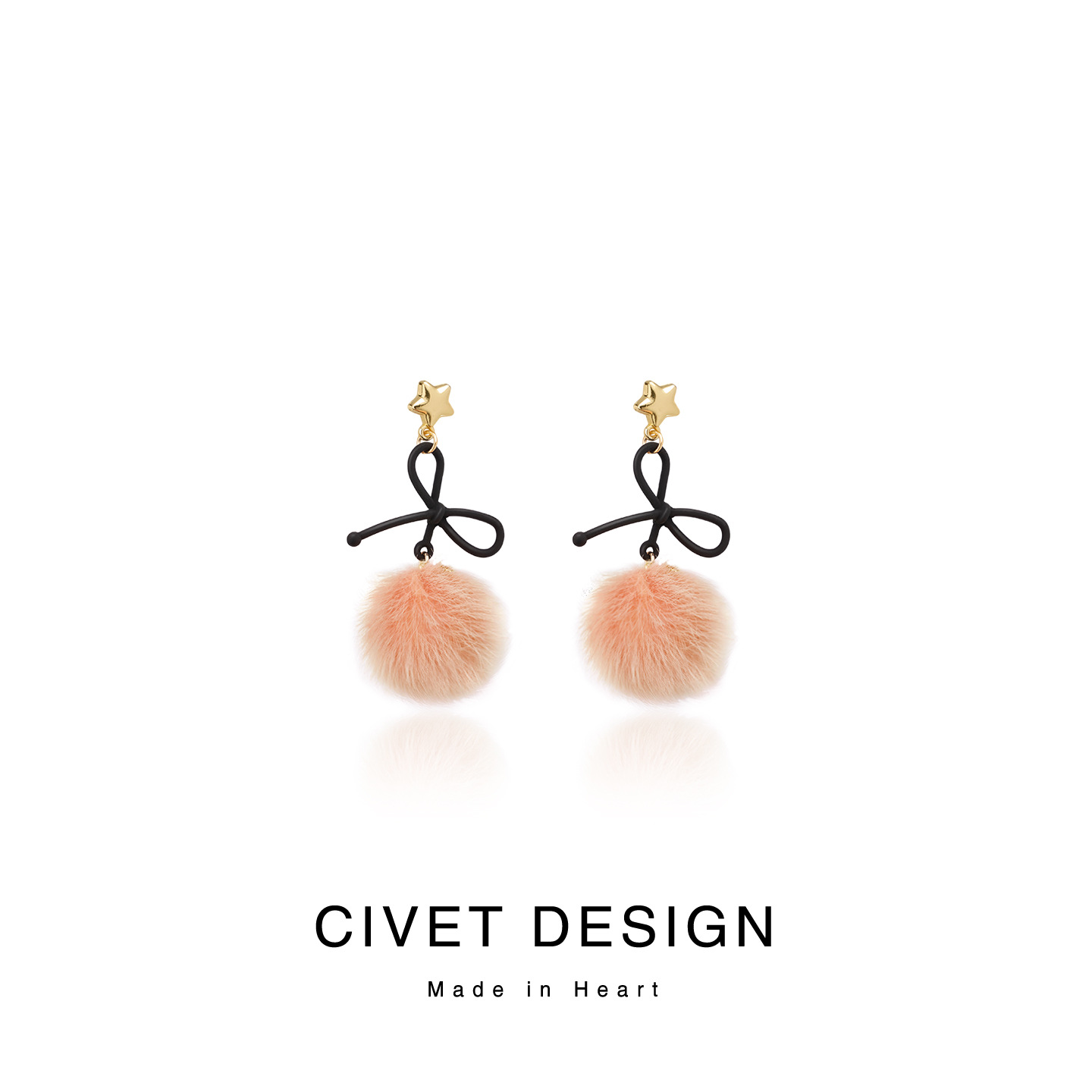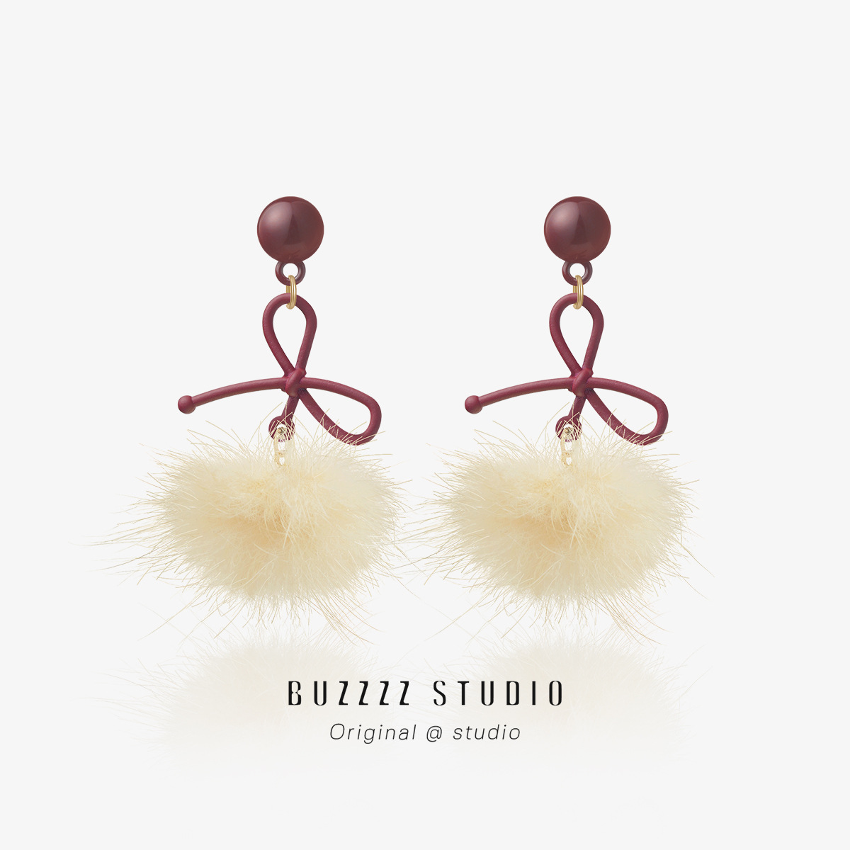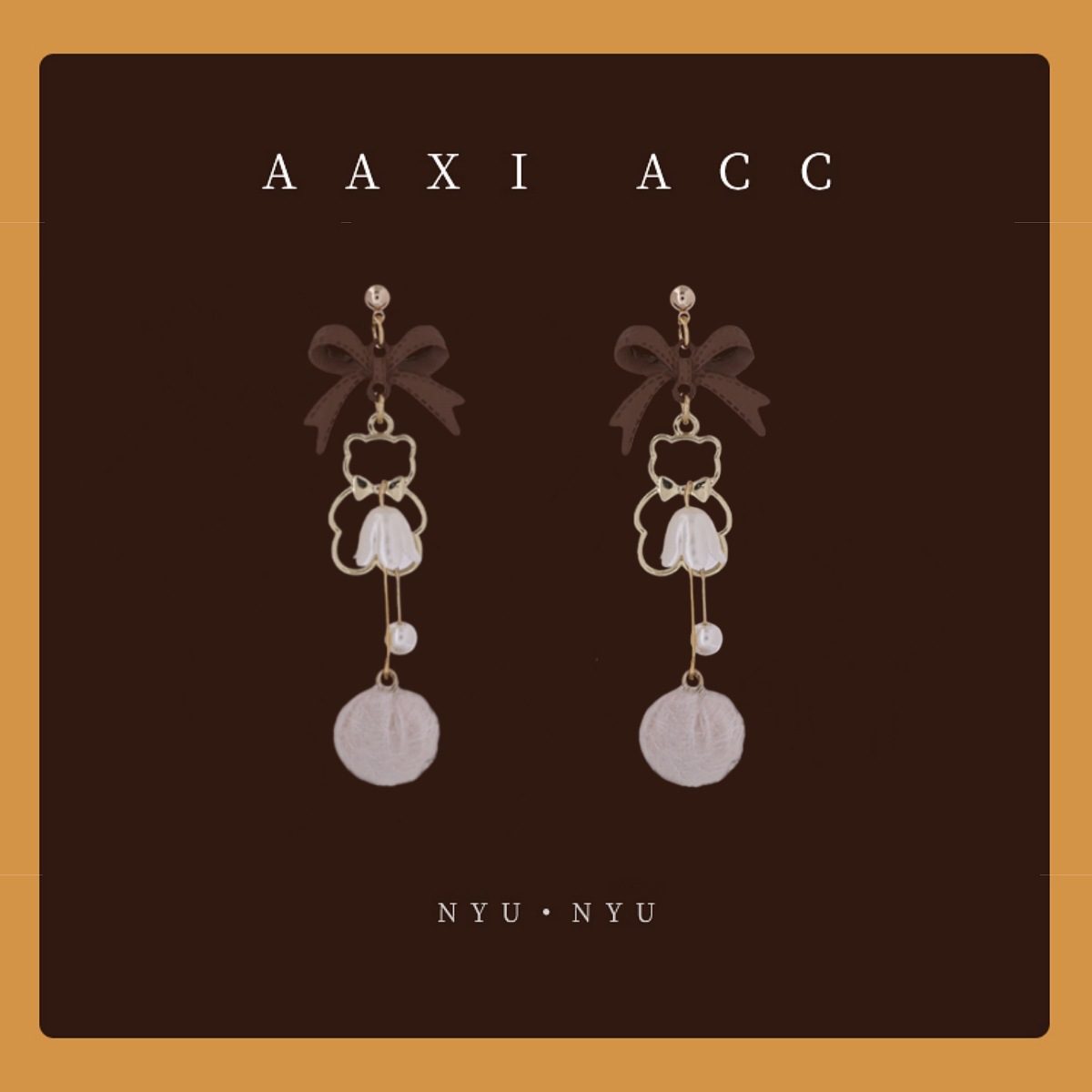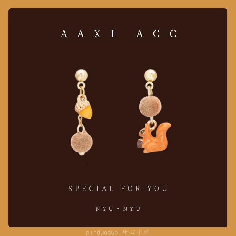 秋冬新款美拉德风小熊毛球耳环少女气质百搭蝴蝶结耳饰无耳洞耳夹