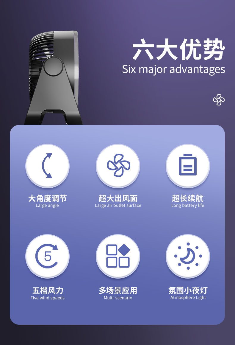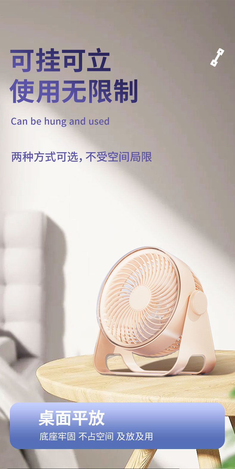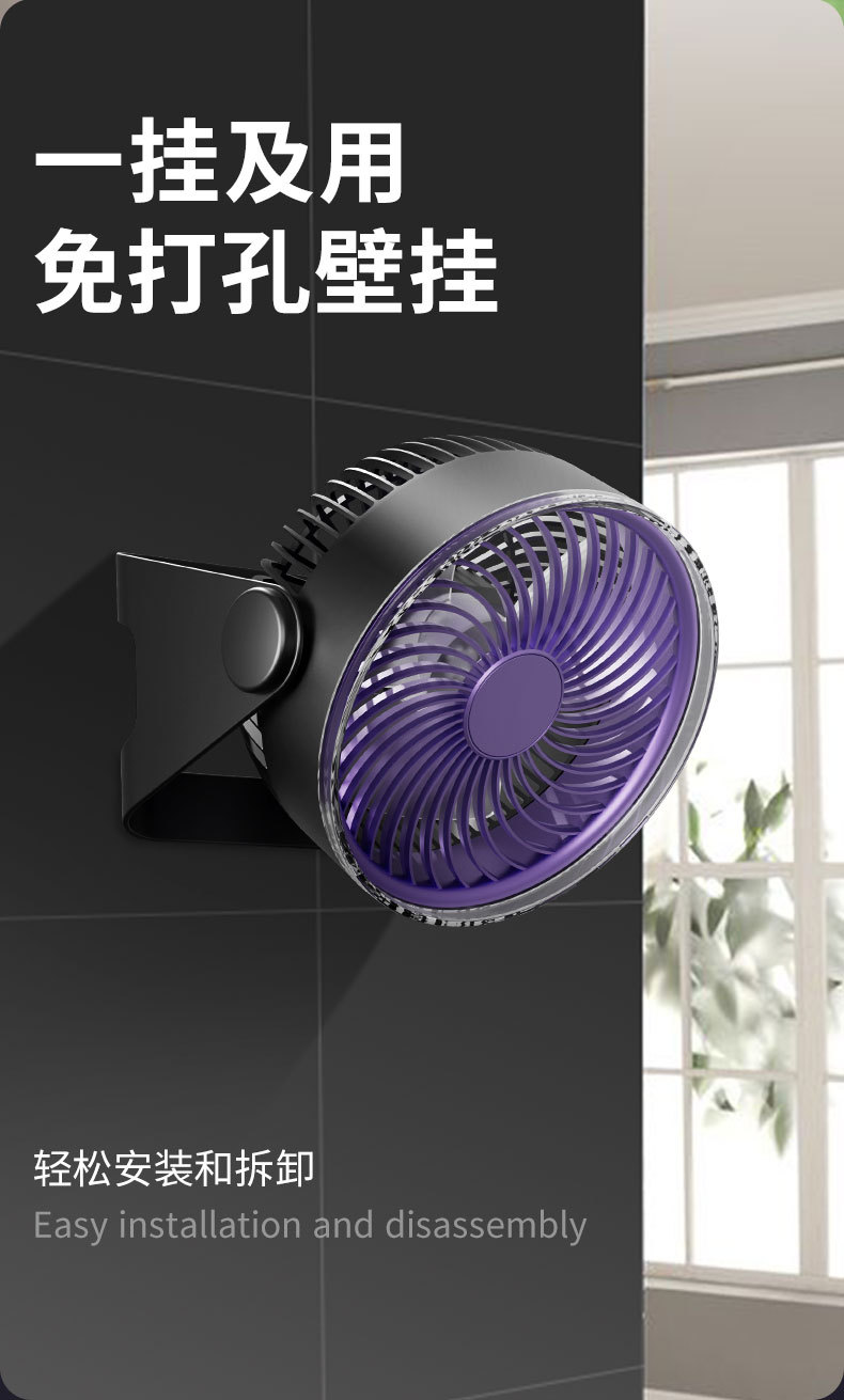 USB充电便携风扇台式壁挂免打孔学生宿舍户外两用迷你风扇