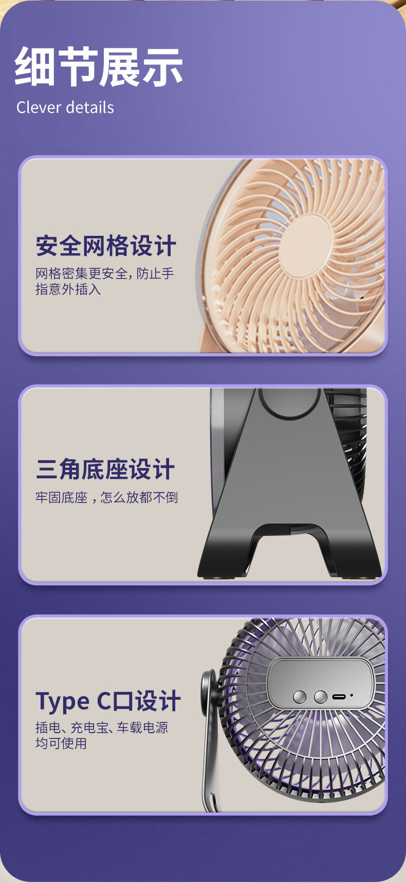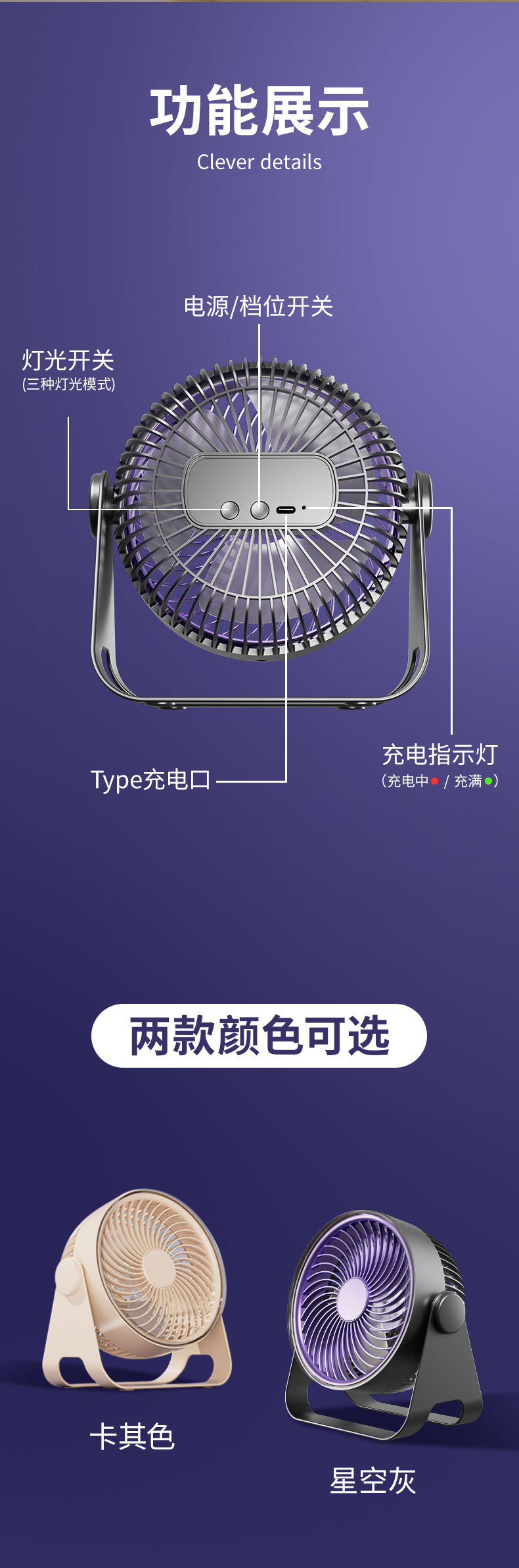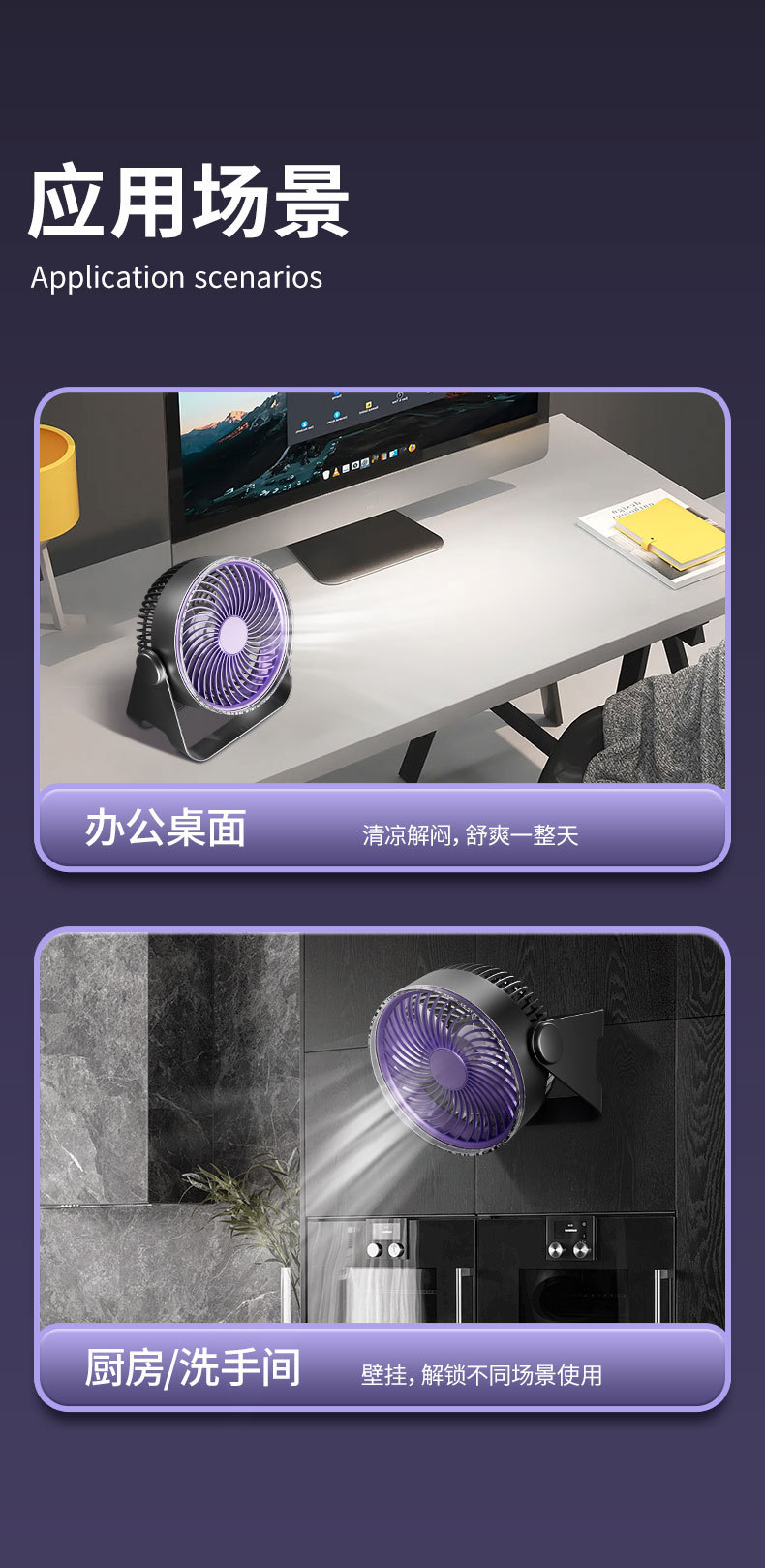 USB充电便携风扇台式壁挂免打孔学生宿舍户外两用迷你风扇
