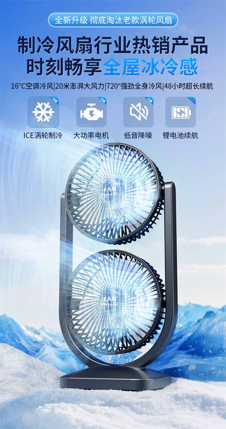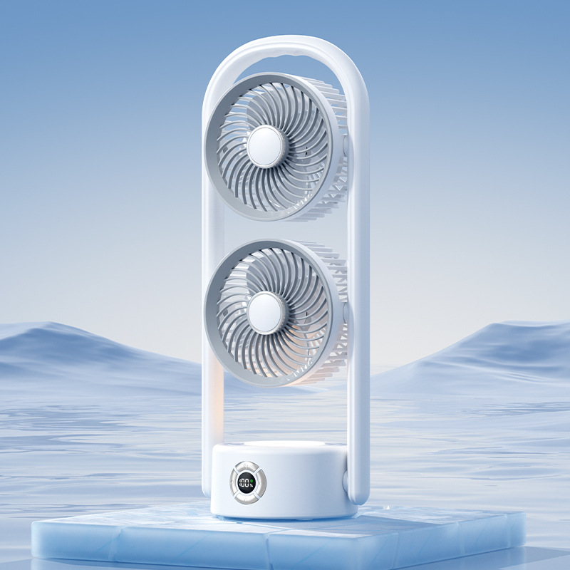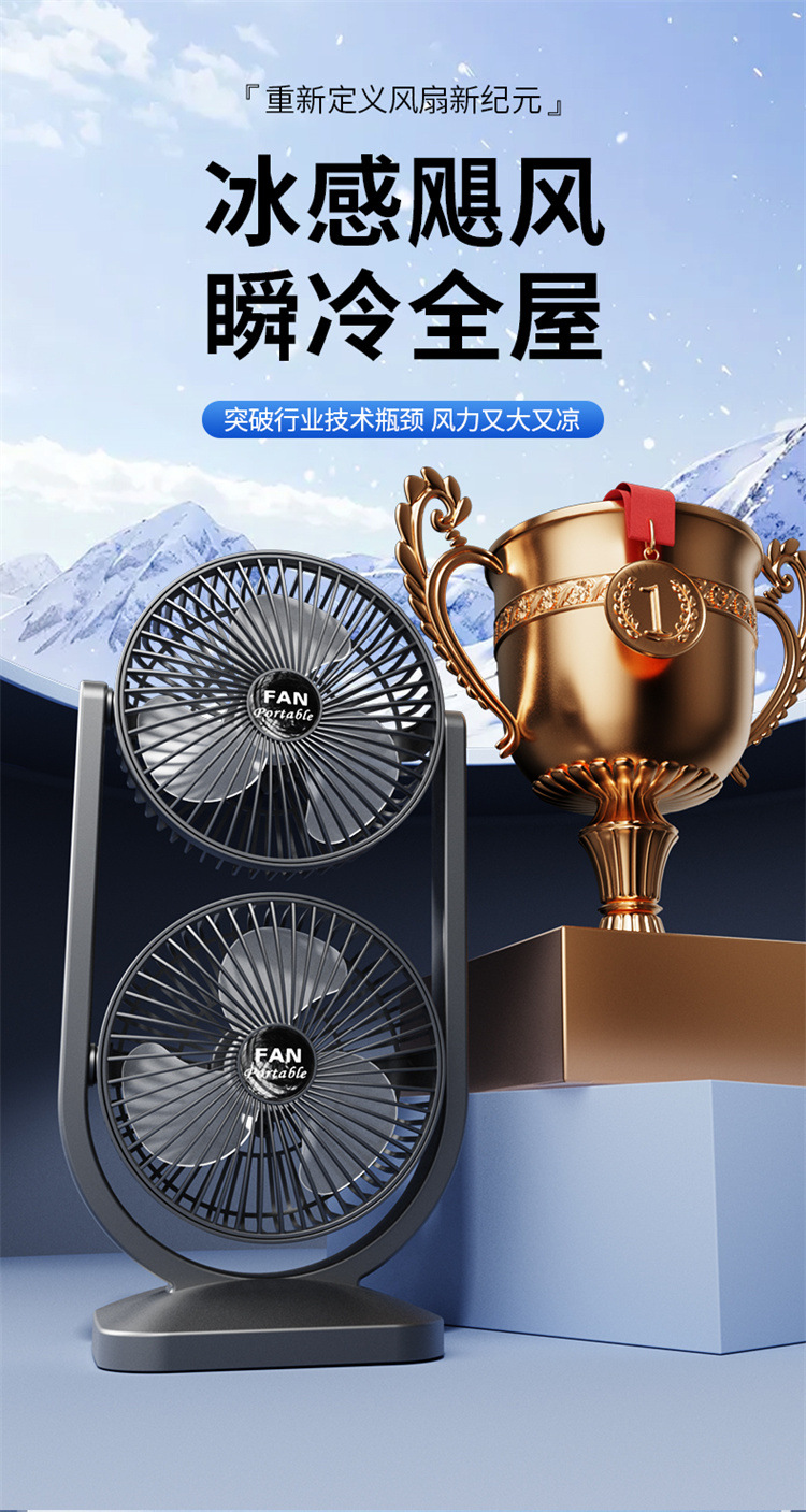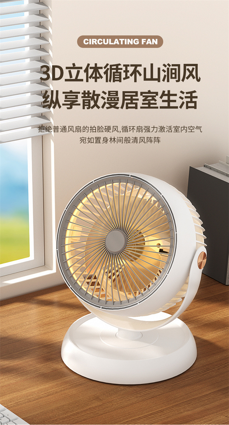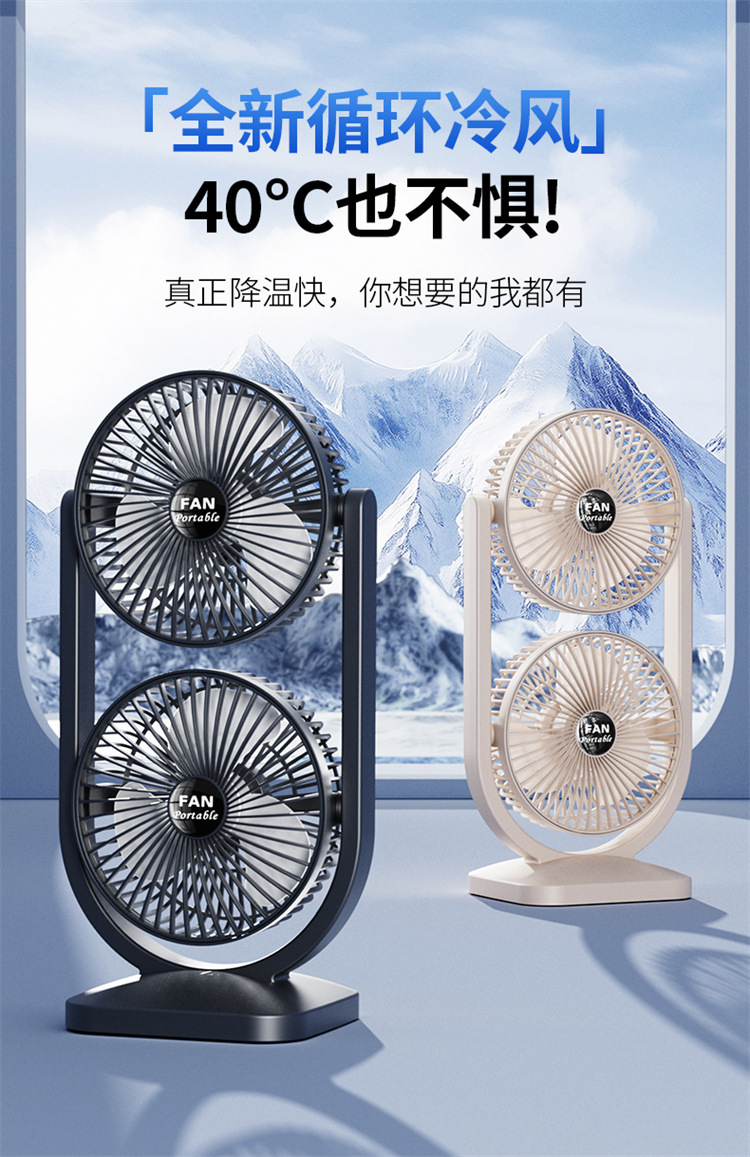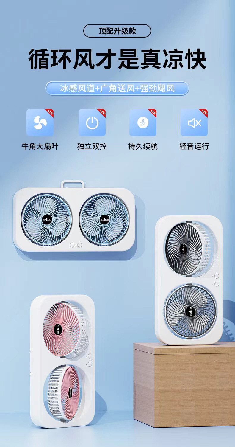 新款双塔风扇照明循环气流自动旋转摇头风扇桌面风扇办公室电风扇