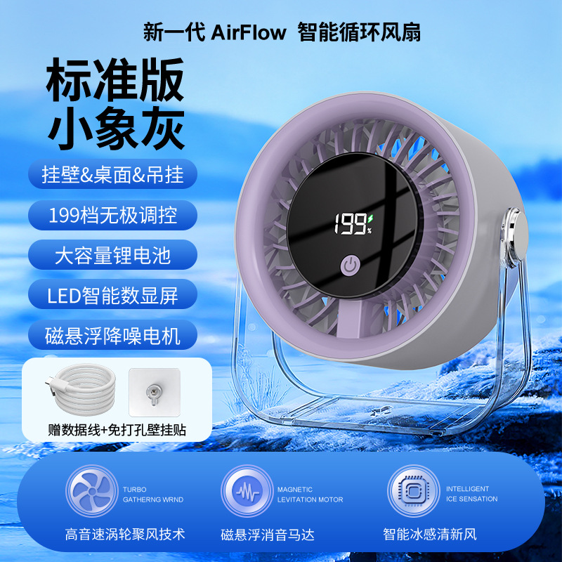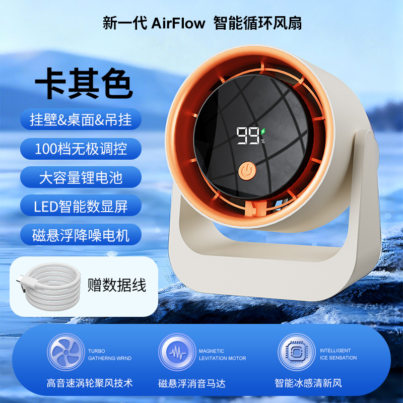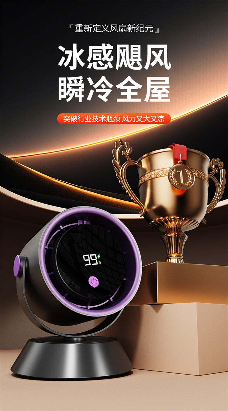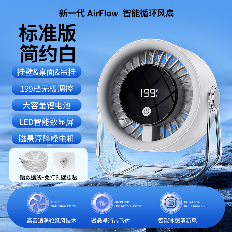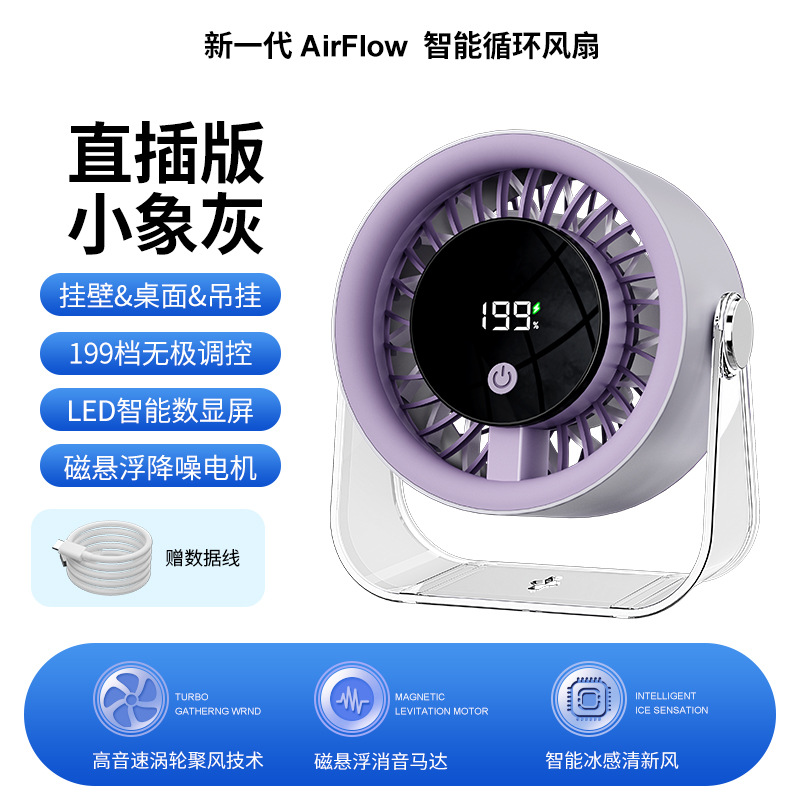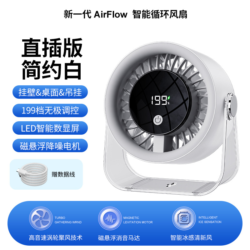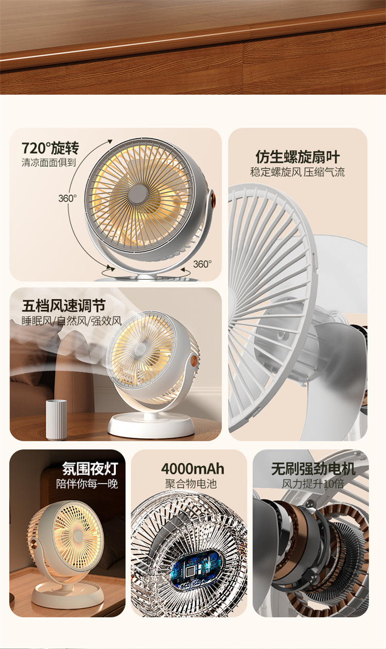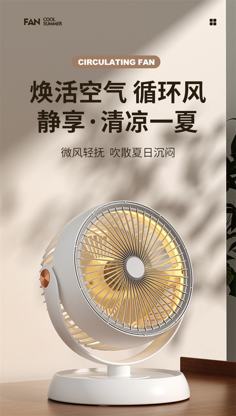 新款双塔风扇照明循环气流自动旋转摇头风扇桌面风扇办公室电风扇