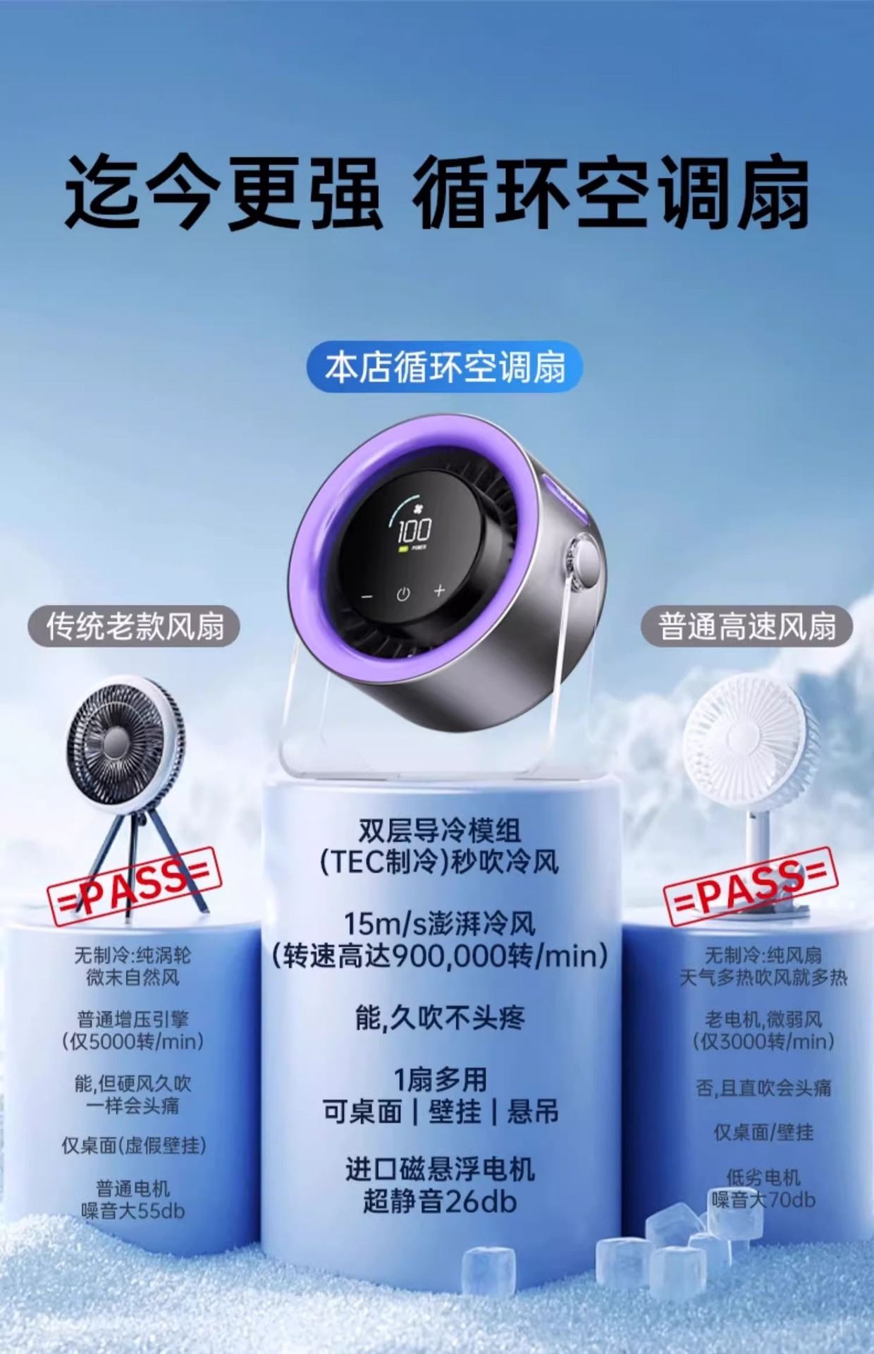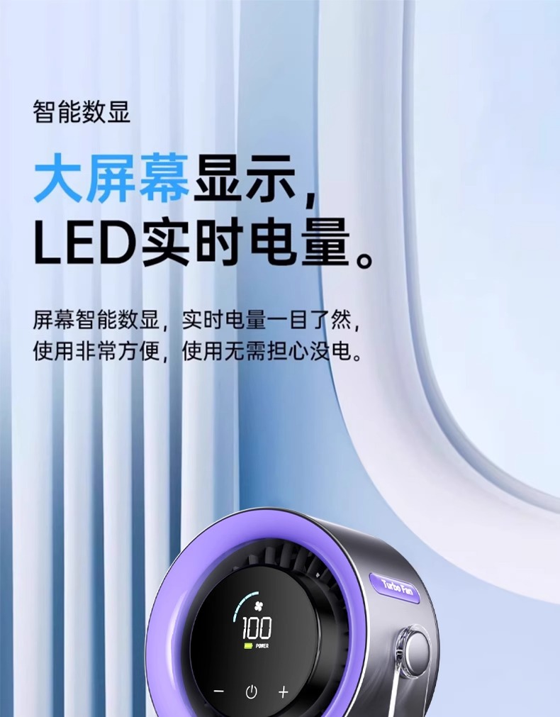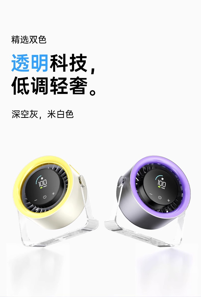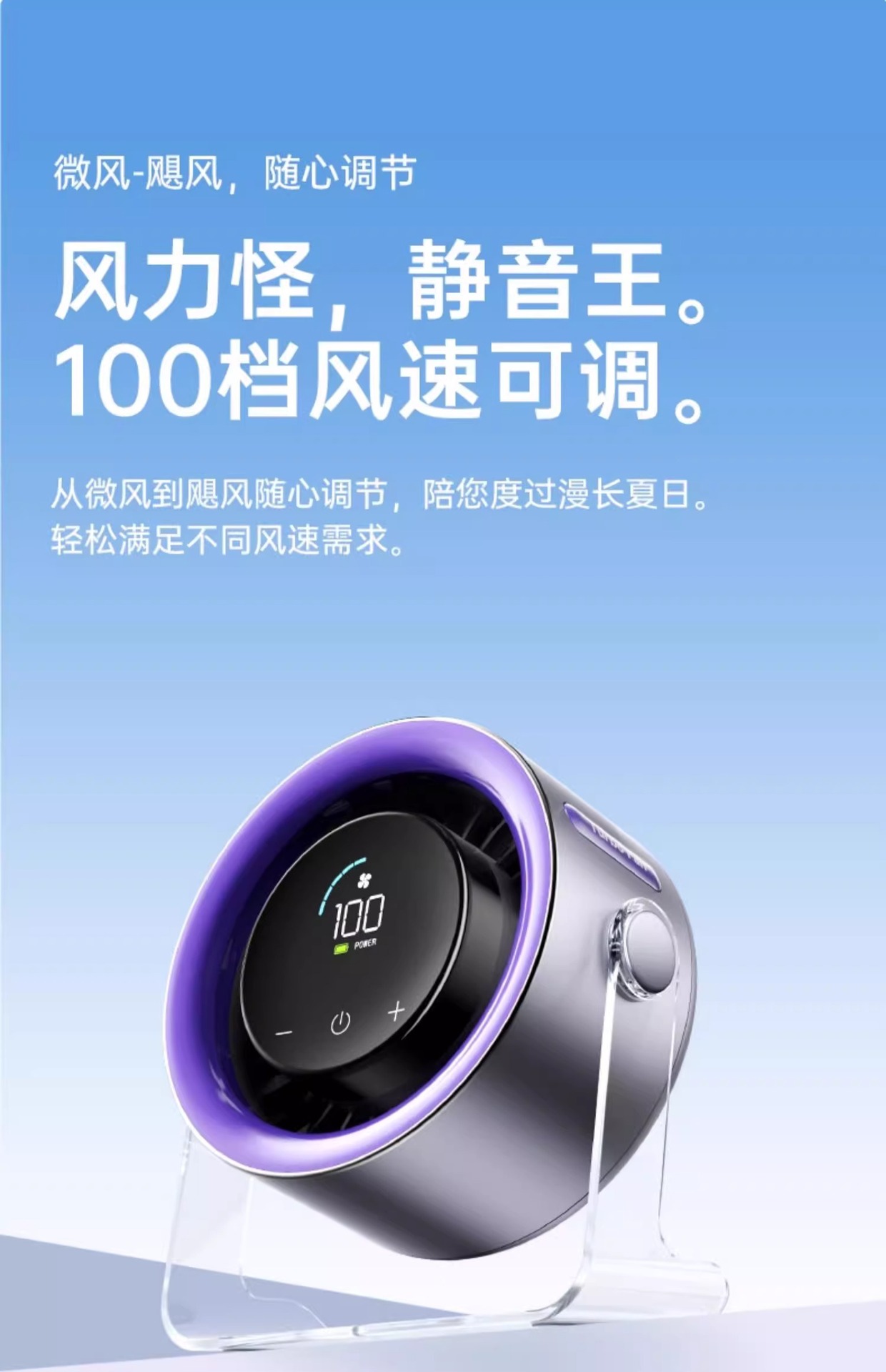 2026新款桌面小风扇学生办公室充电风扇100档大风力数显USB风扇
