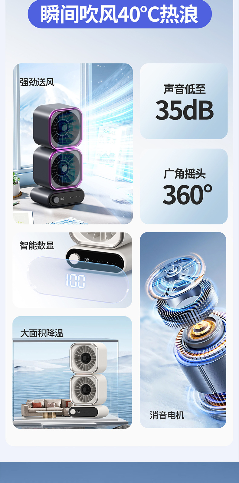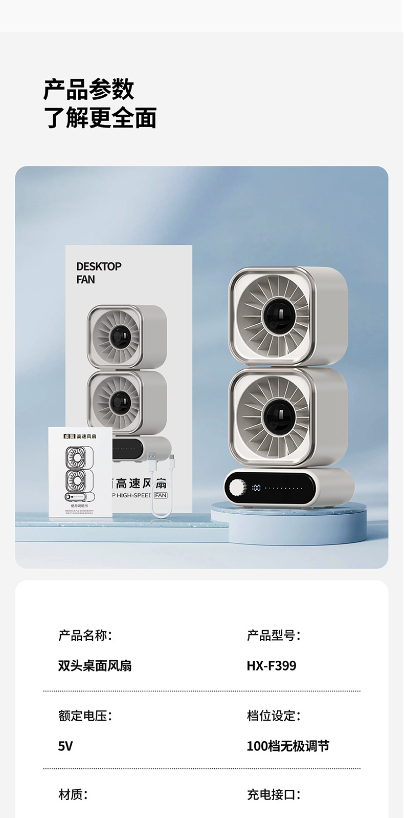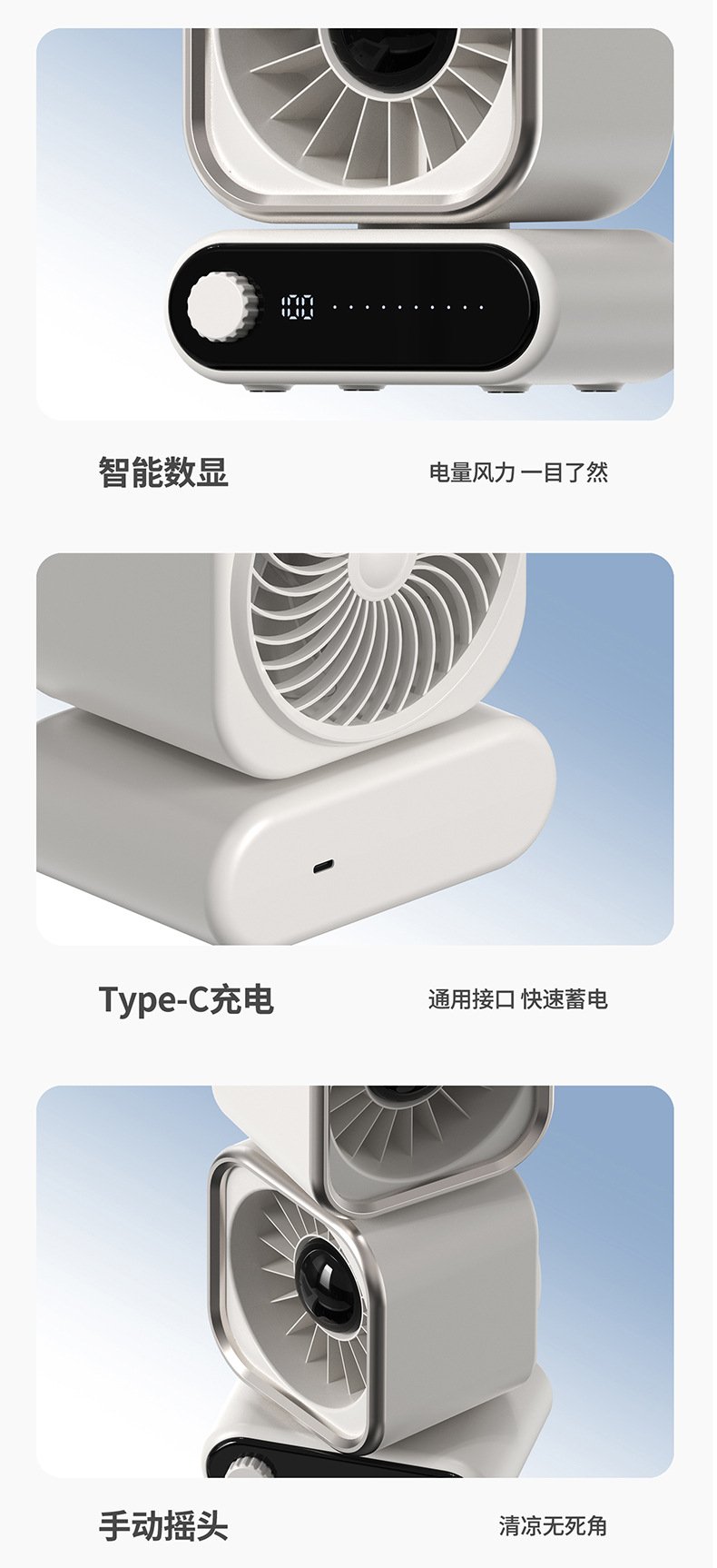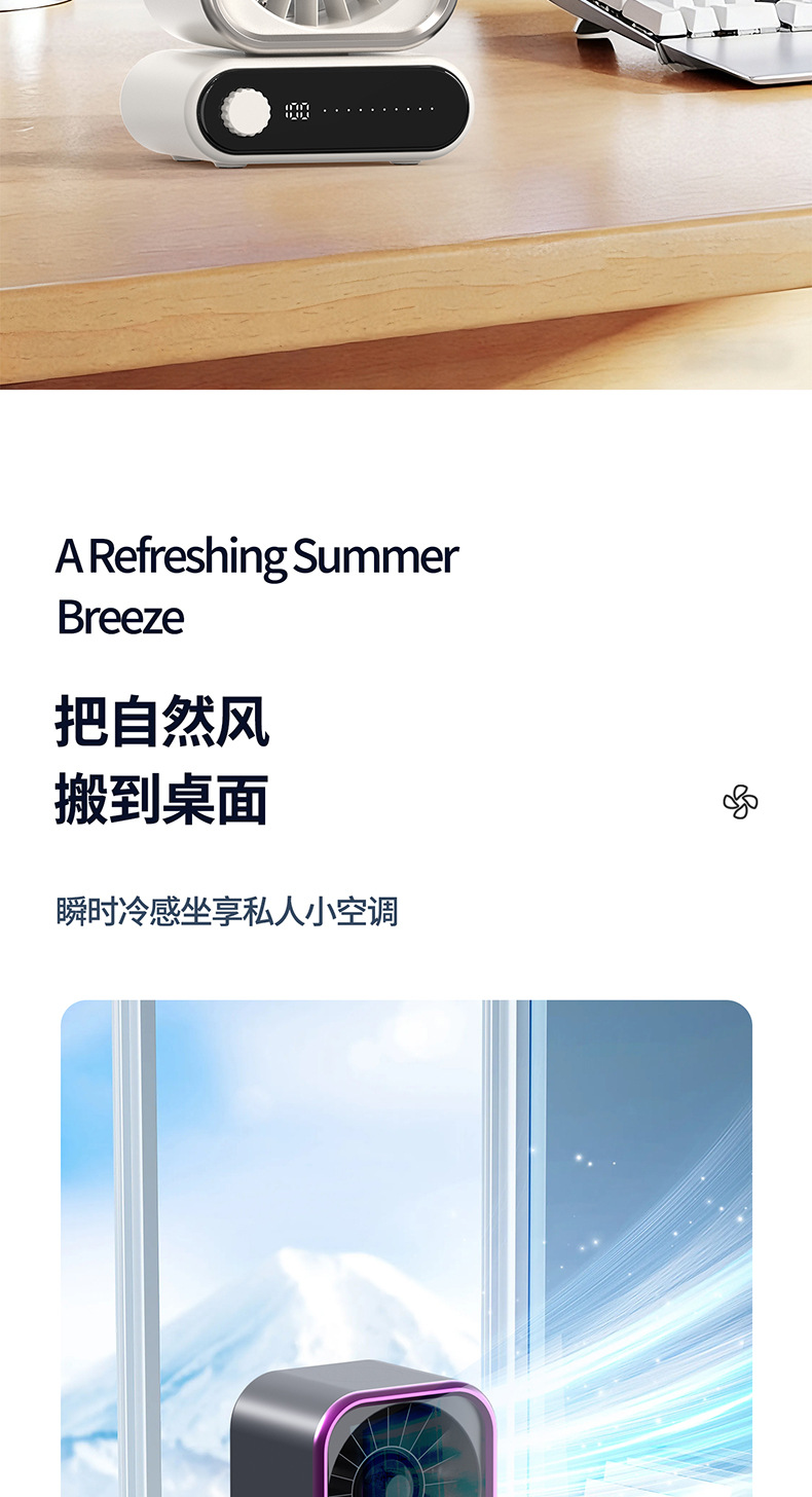2026新款循环风扇迷你 充电数显便携学生静音大风力桌面超静音