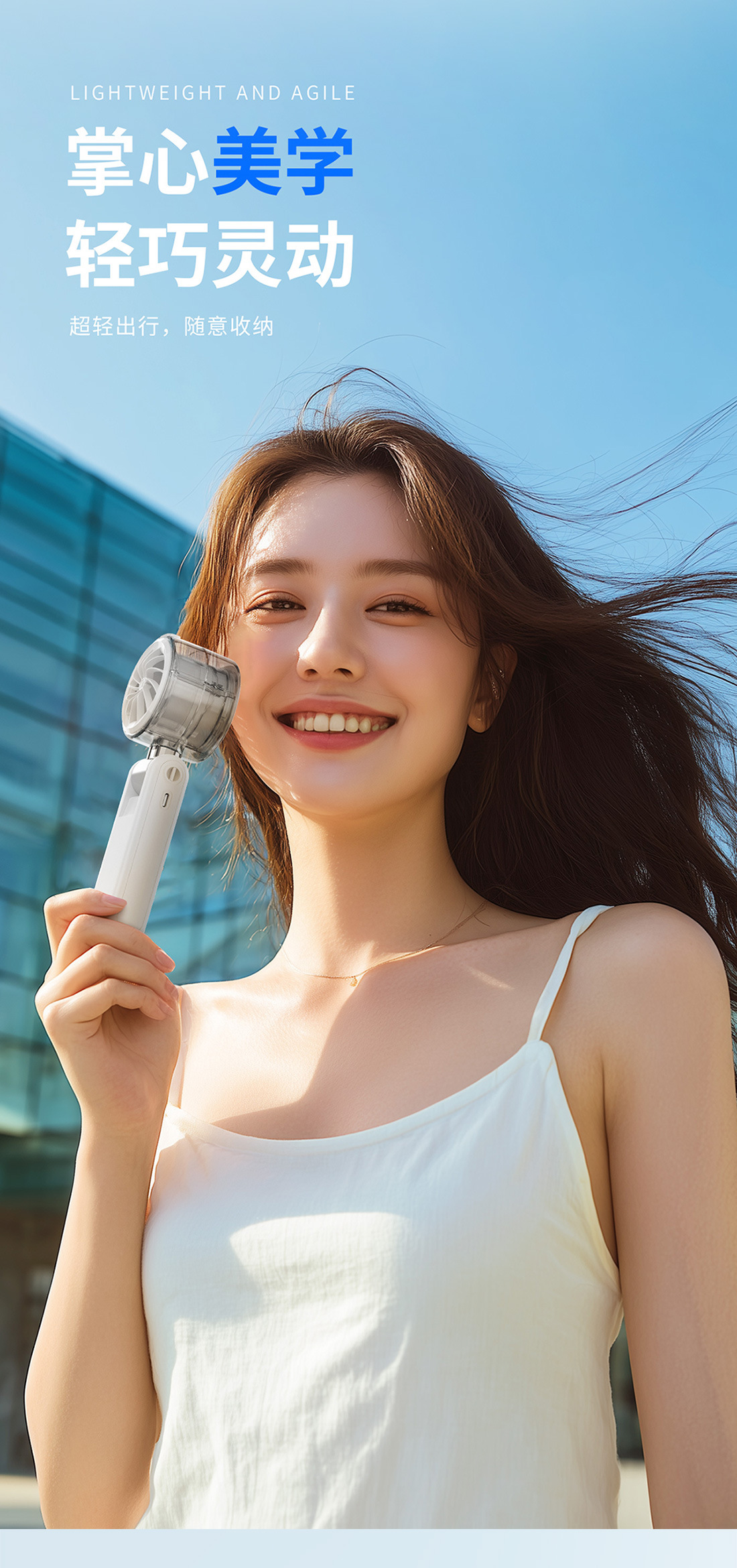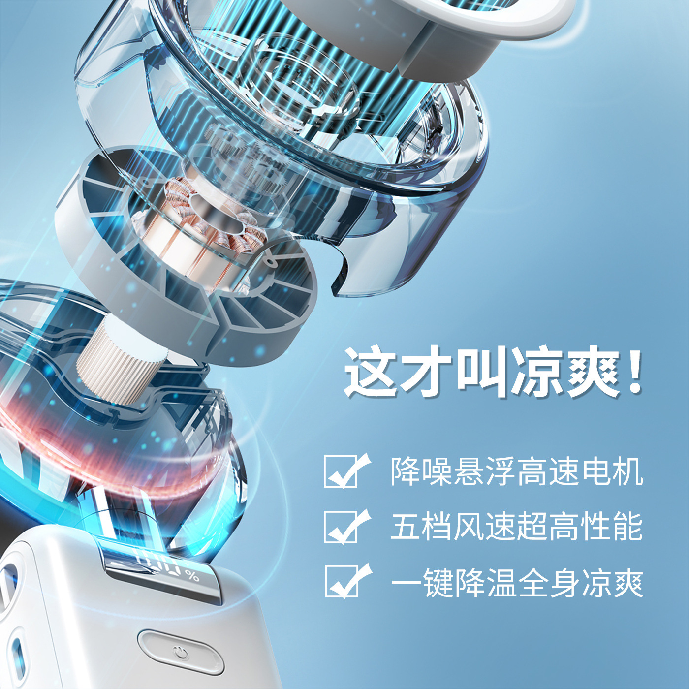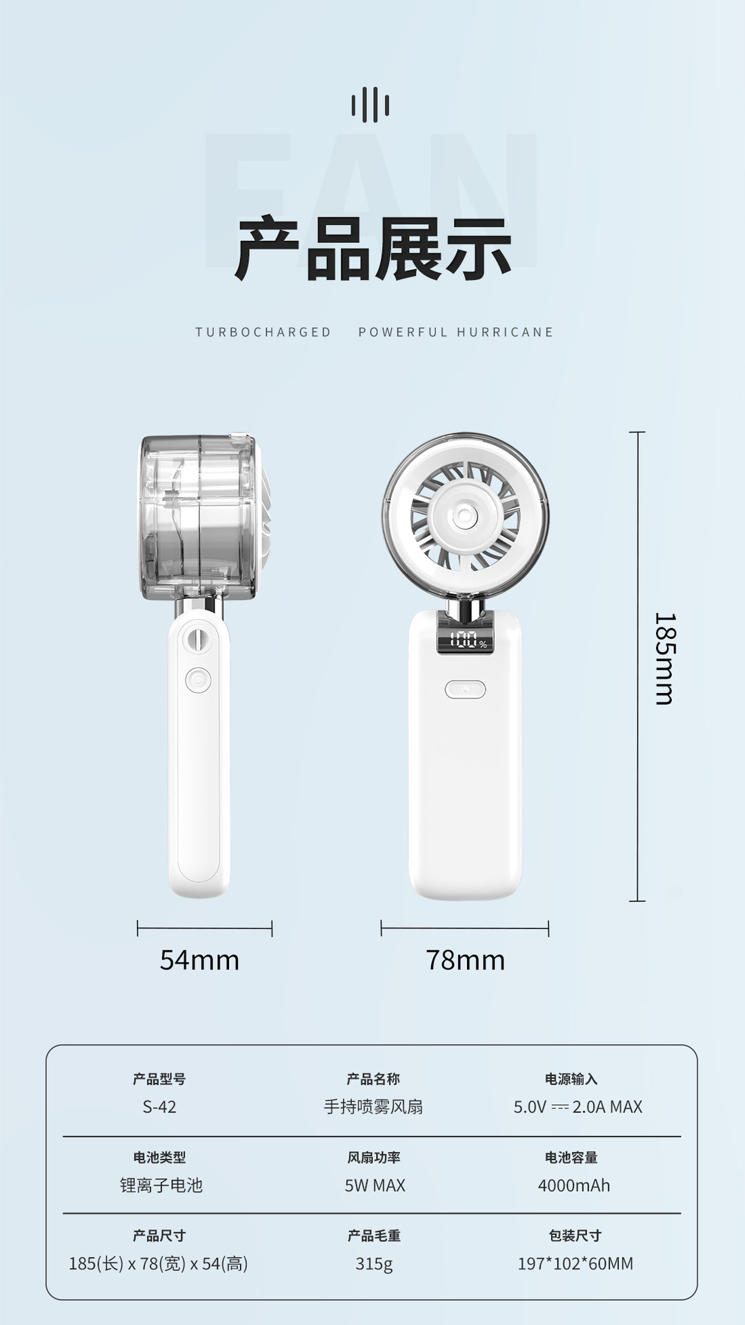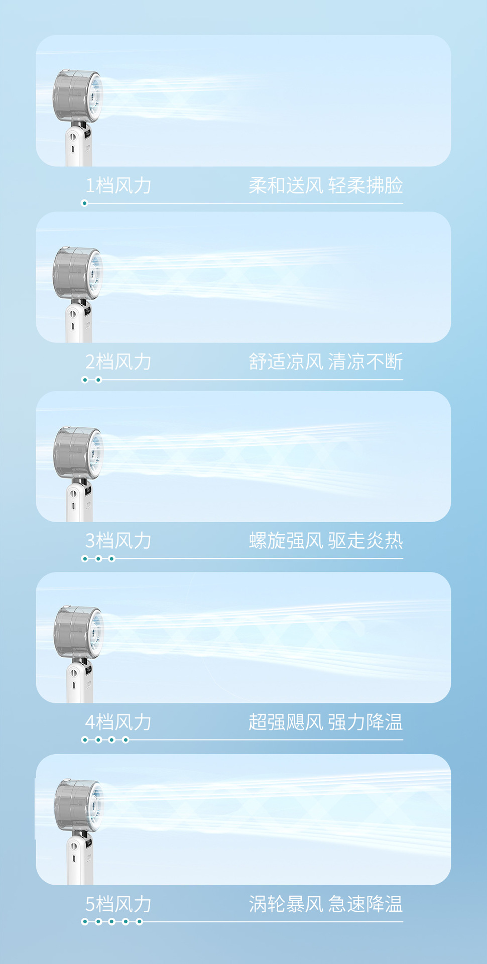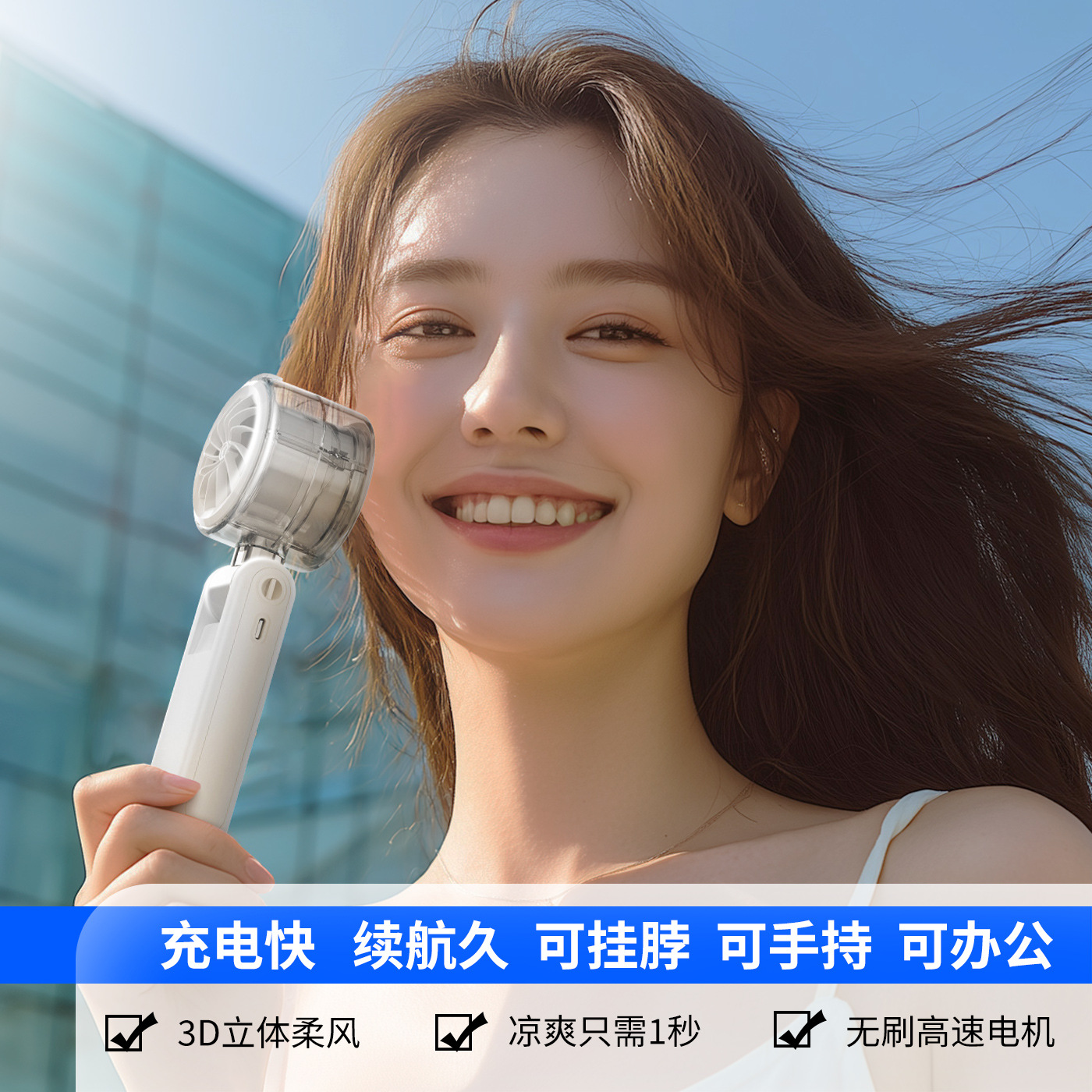 2026新款折叠喷雾手持风扇 便携式数显5档高速手持户外充电小风扇