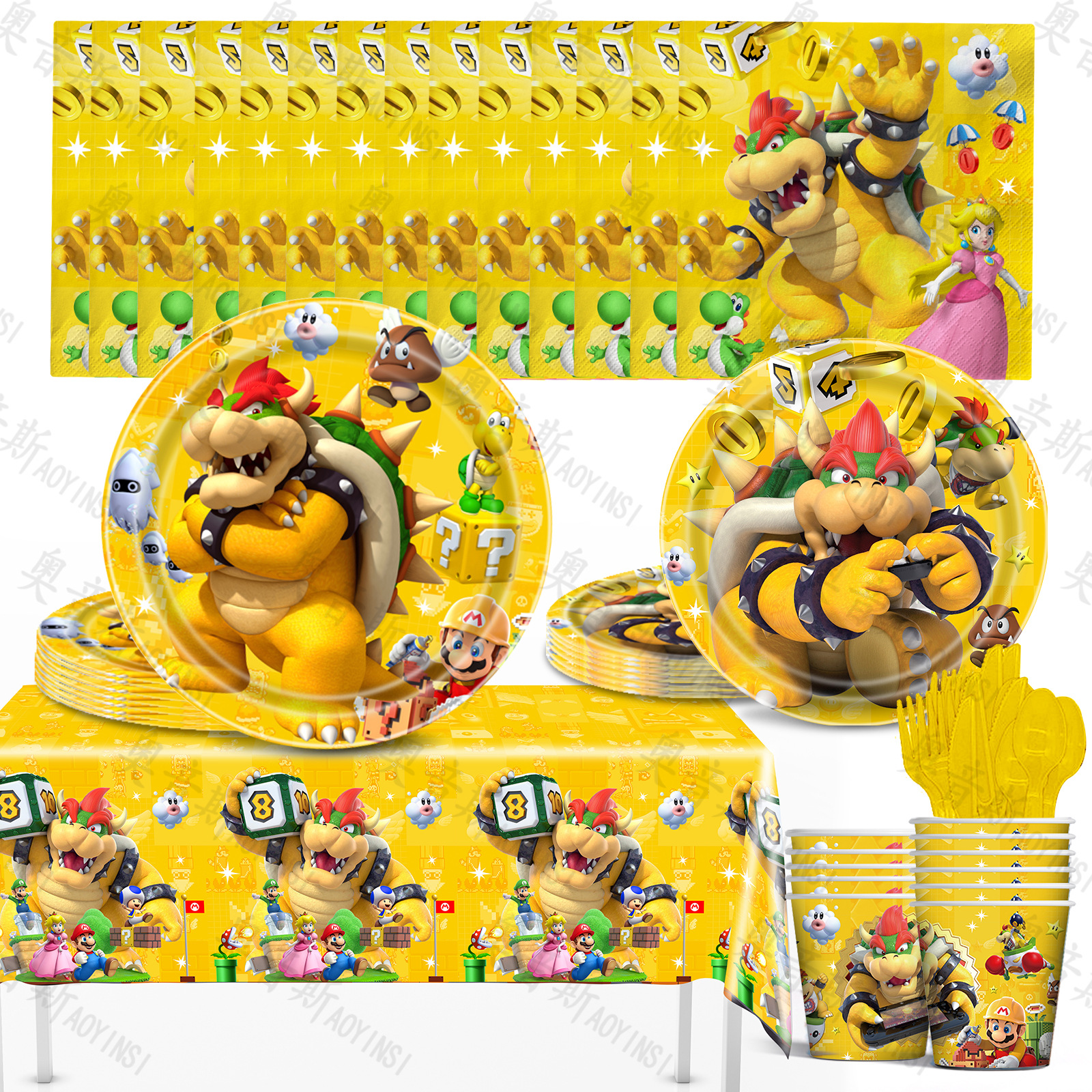 马里奥库巴火龙鲍泽bowser派对用品卡通生日餐具纸盘纸杯桌布气球