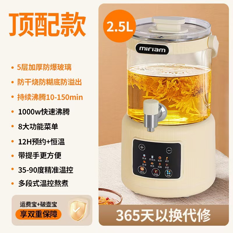 好夫人玻璃保健恒温养生壶家用多功能办公室烧水壶花茶壶炖煮分体