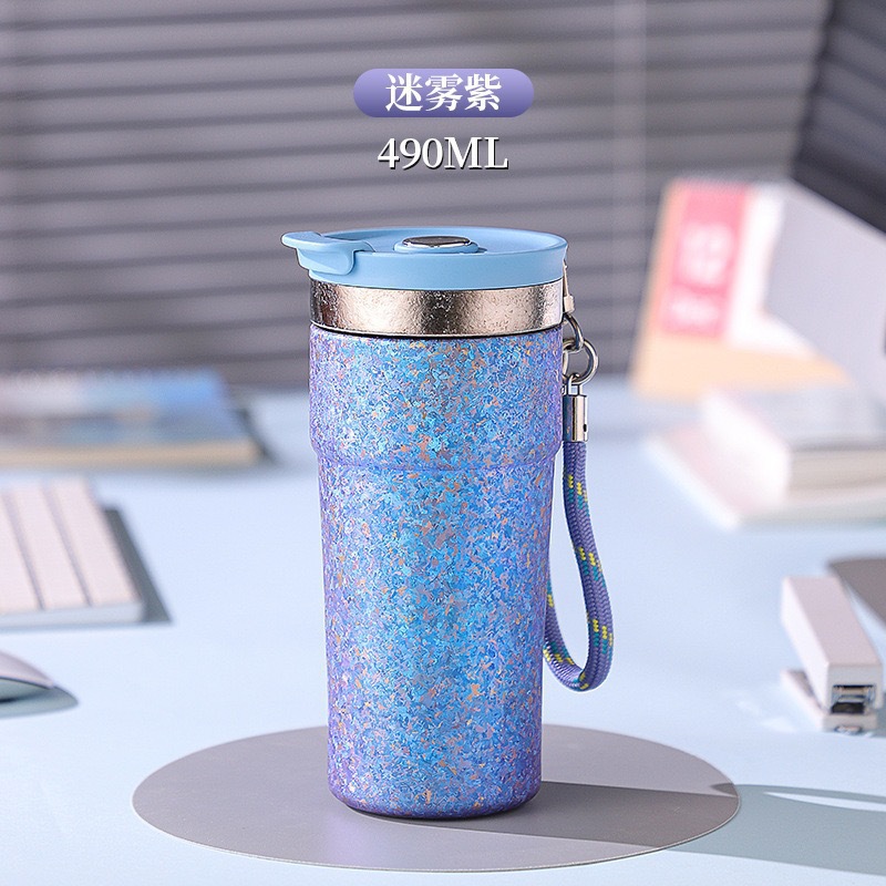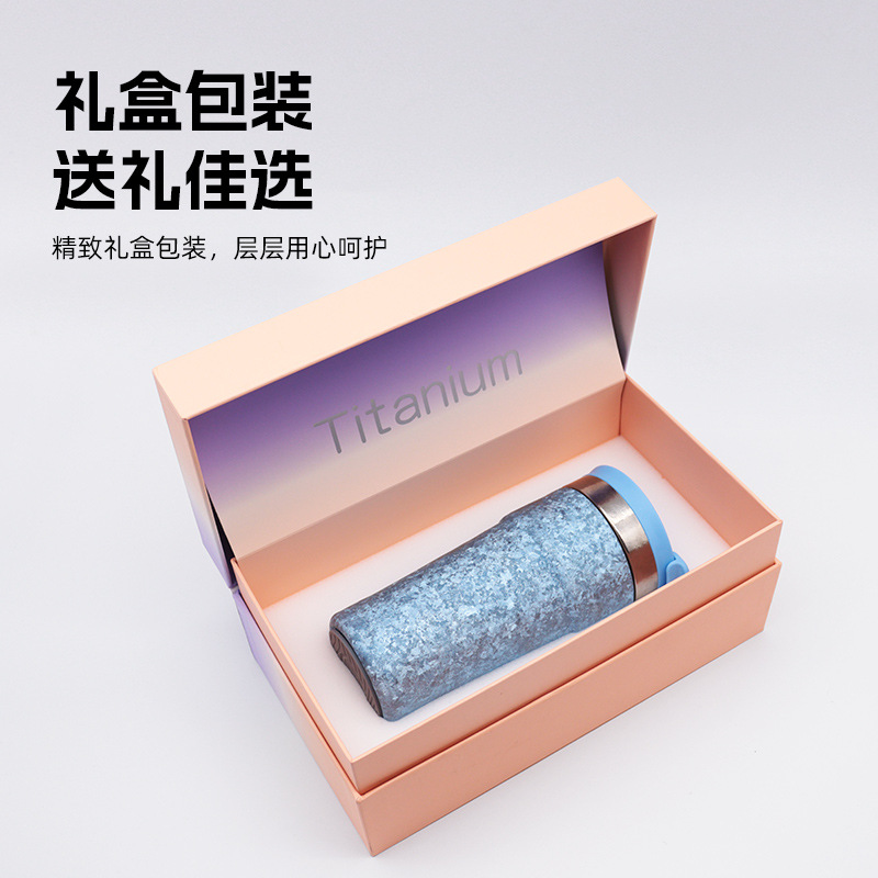 纯钛轻奢咖啡杯高颜值保温杯便携式水杯显温泡茶杯高档礼品杯批发