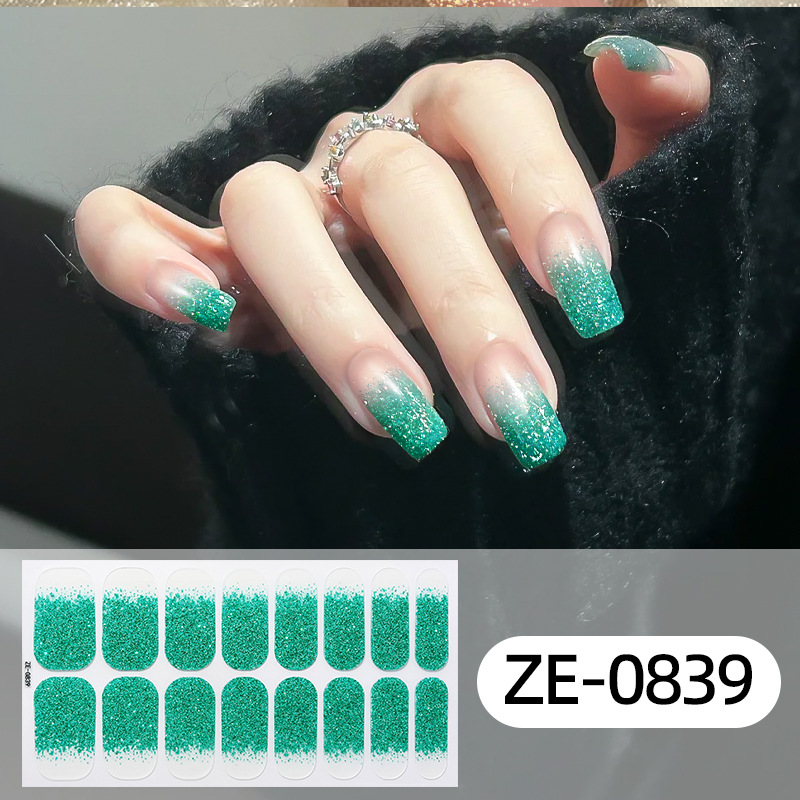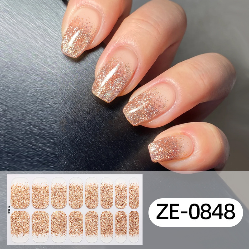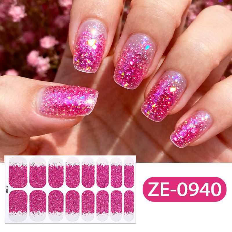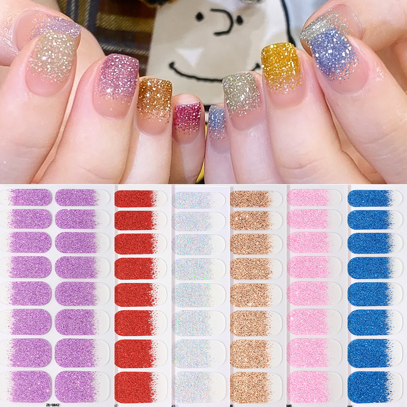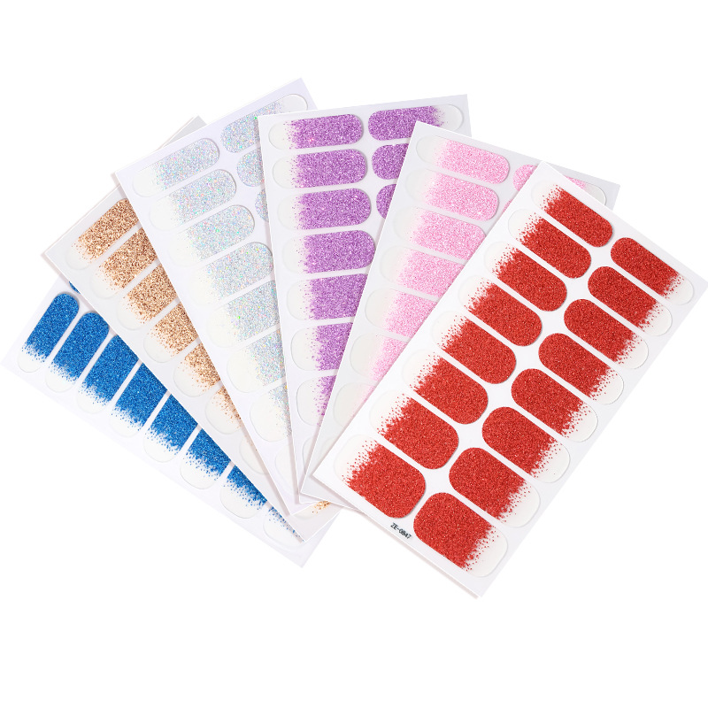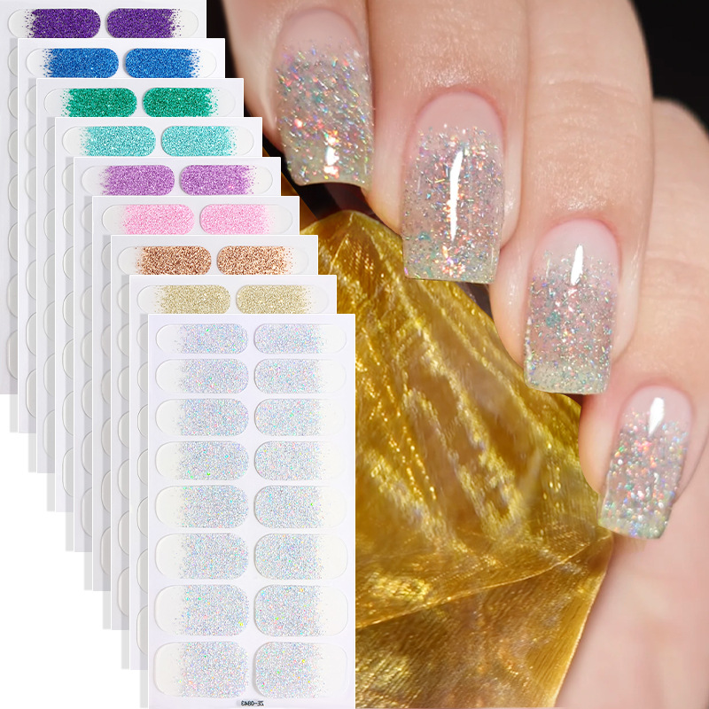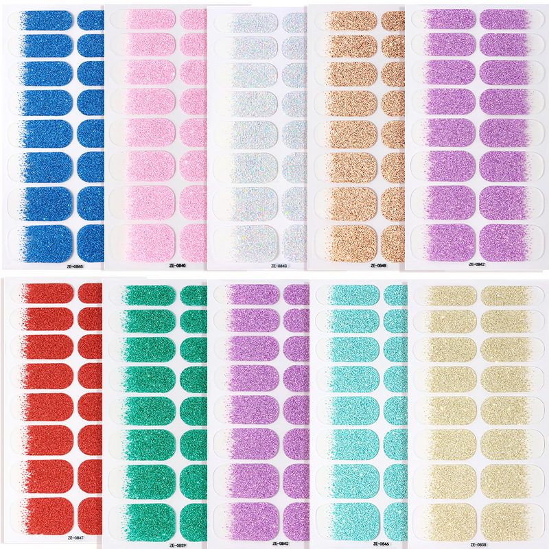 正祥新款甲油膜美甲贴爆闪渐变葱粉指甲贴跨境TEMU背胶款美甲贴纸