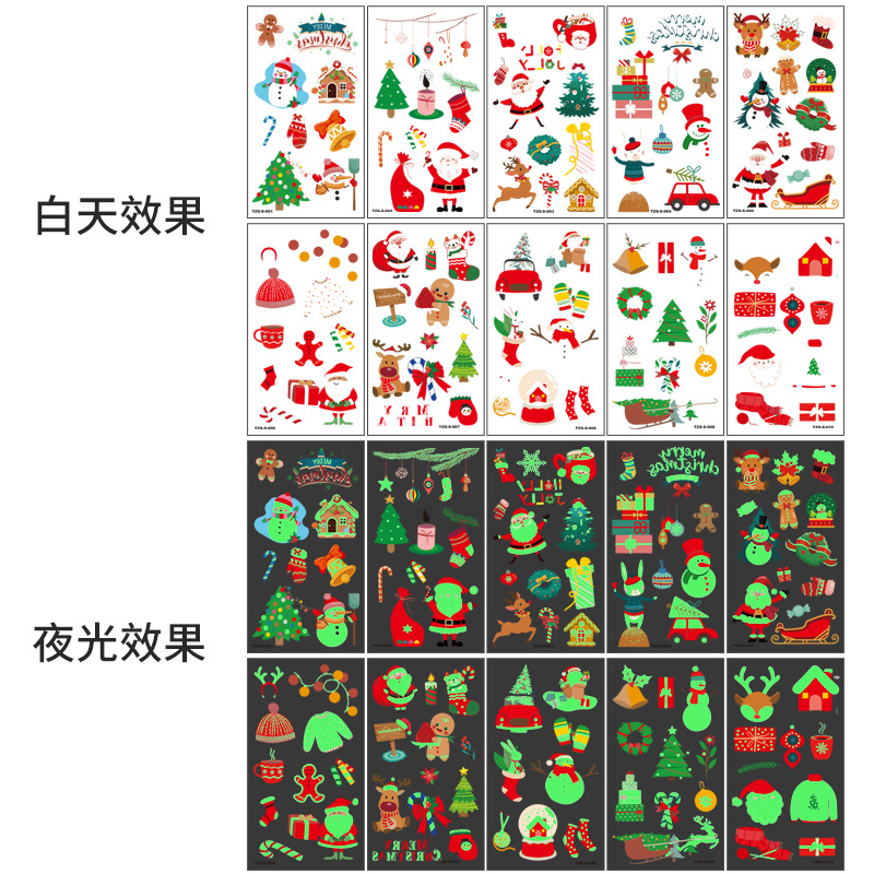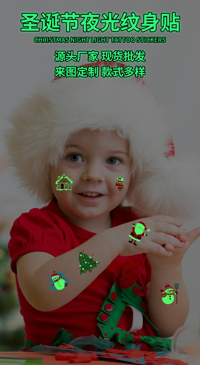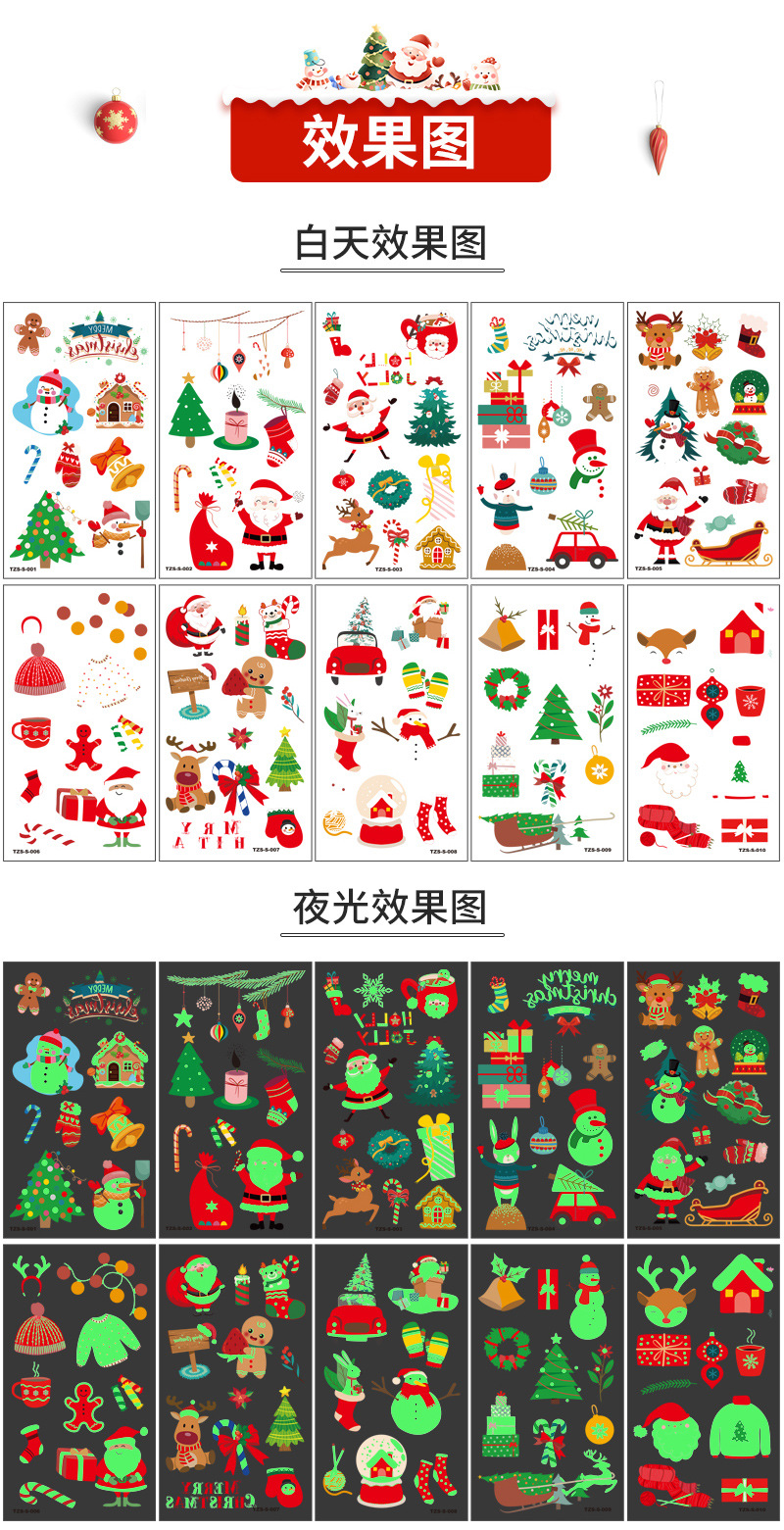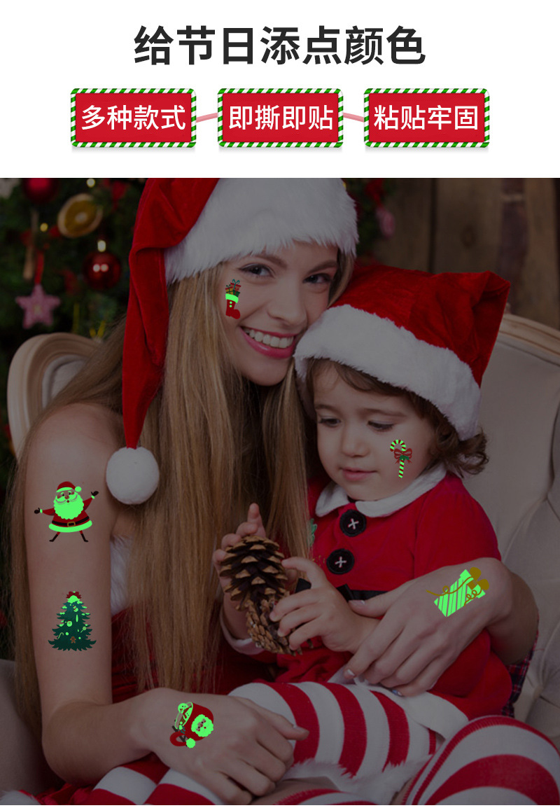 个性圣诞节夜光纹身贴儿童卡通创意临时纹身贴节日聚会发光纹身贴