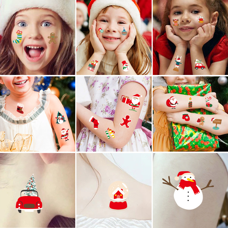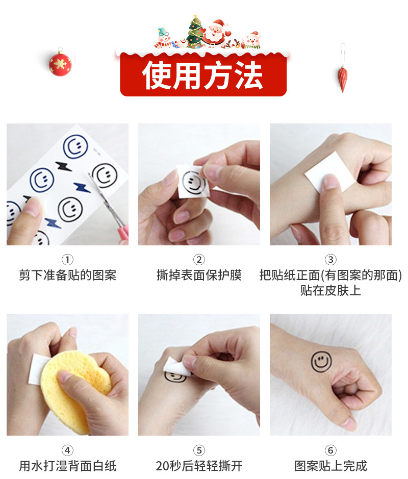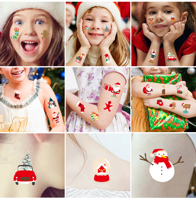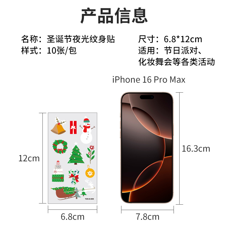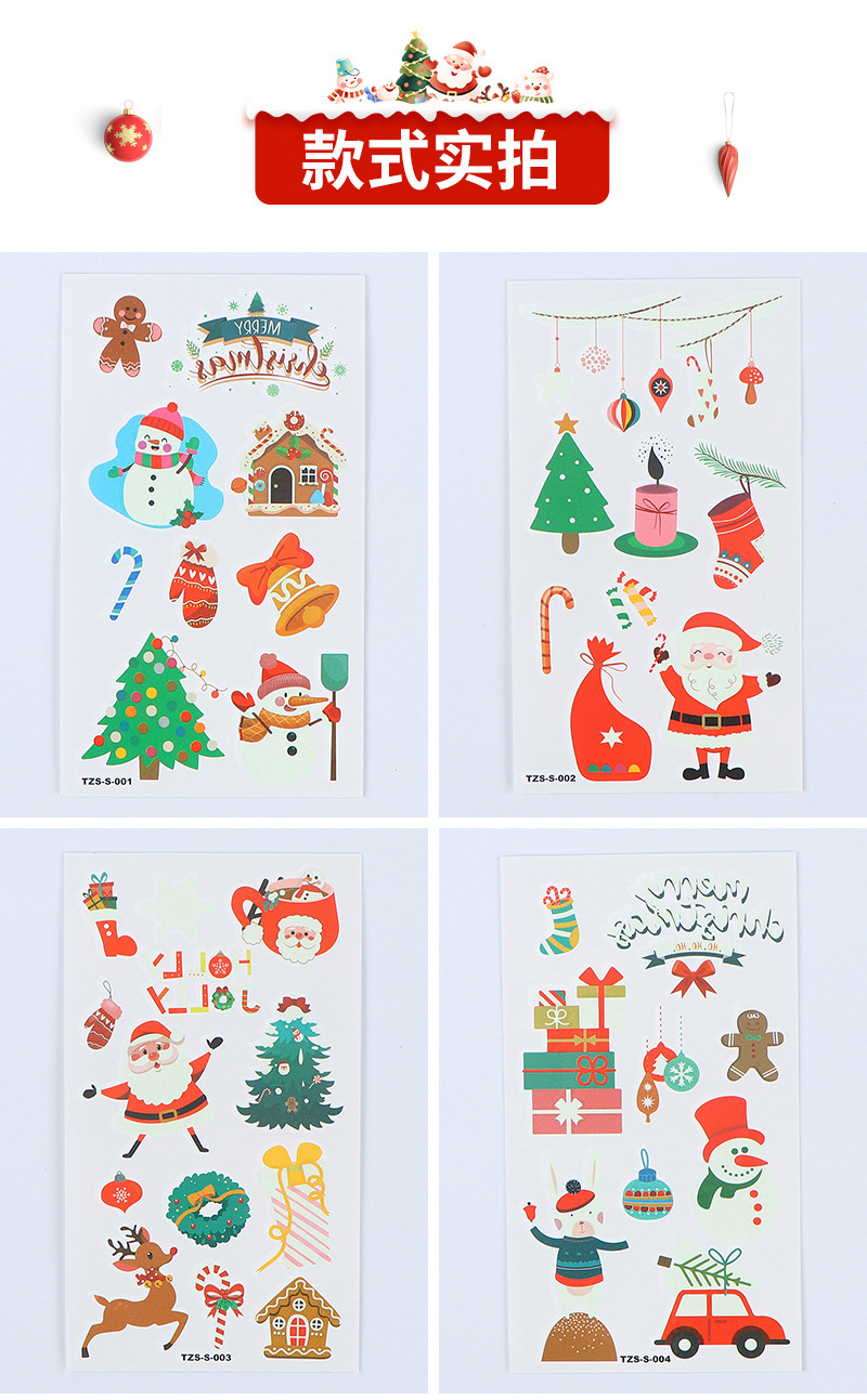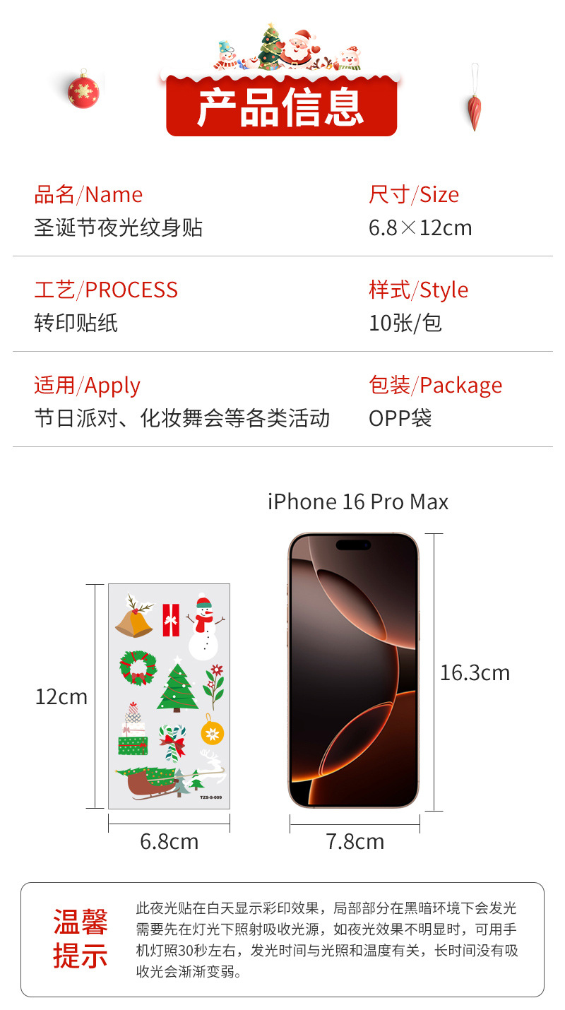 个性圣诞节夜光纹身贴儿童卡通创意临时纹身贴节日聚会发光纹身贴