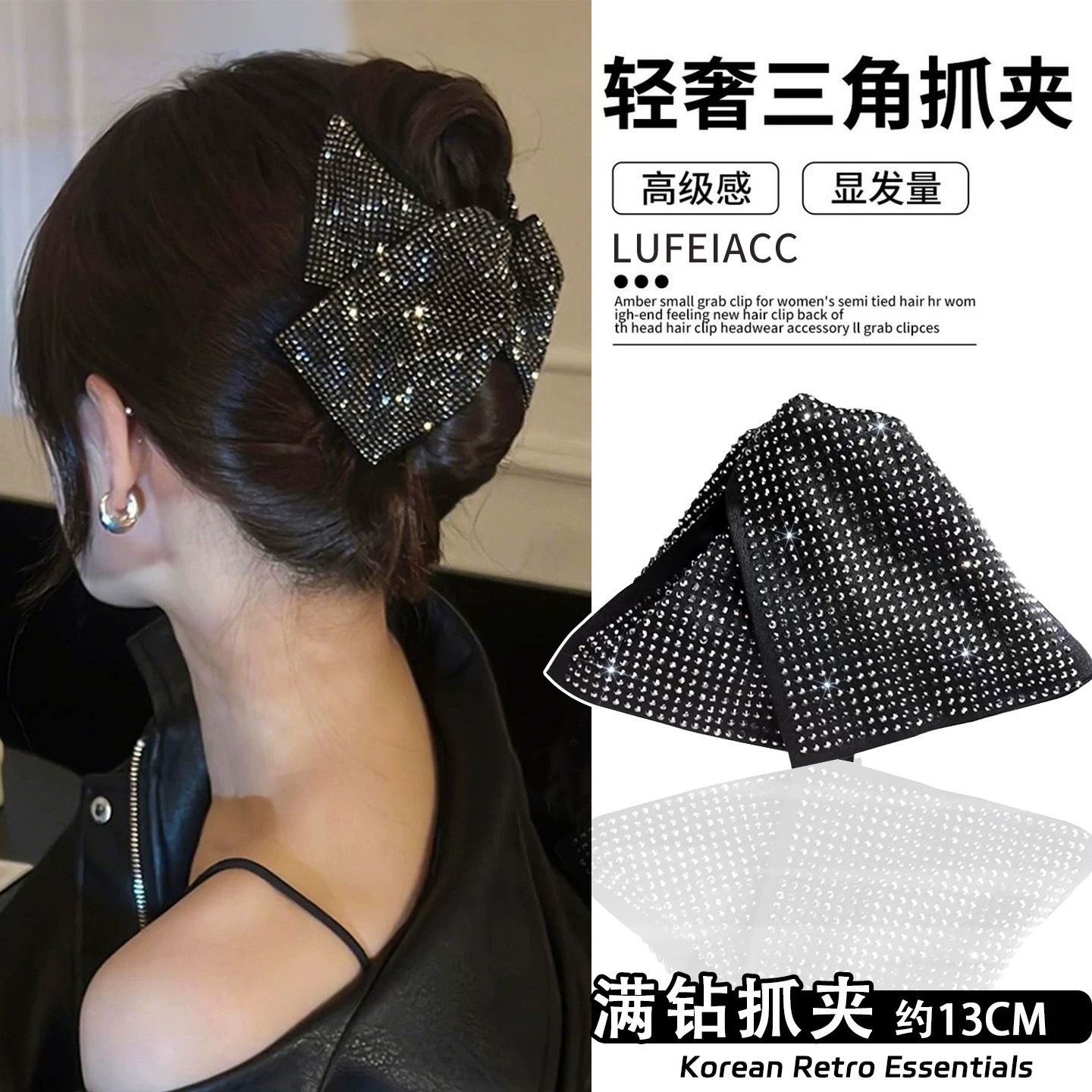 气质秋冬豹纹三角抓夹女高级感2025新款植绒发夹后脑勺鲨鱼夹发饰