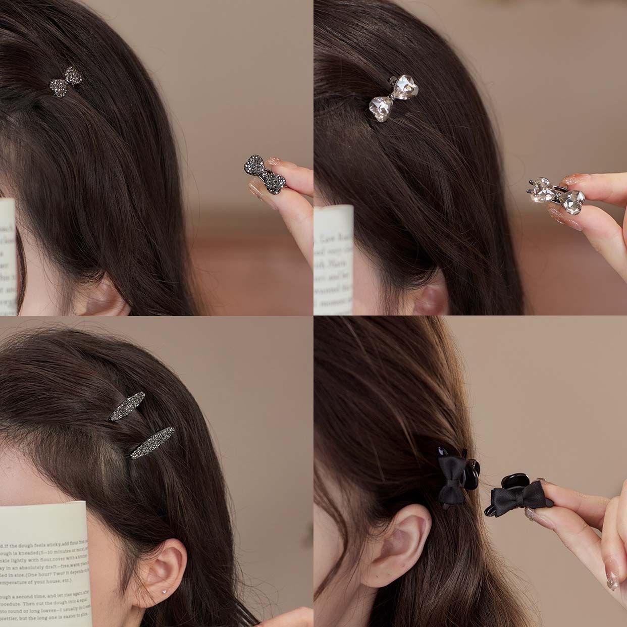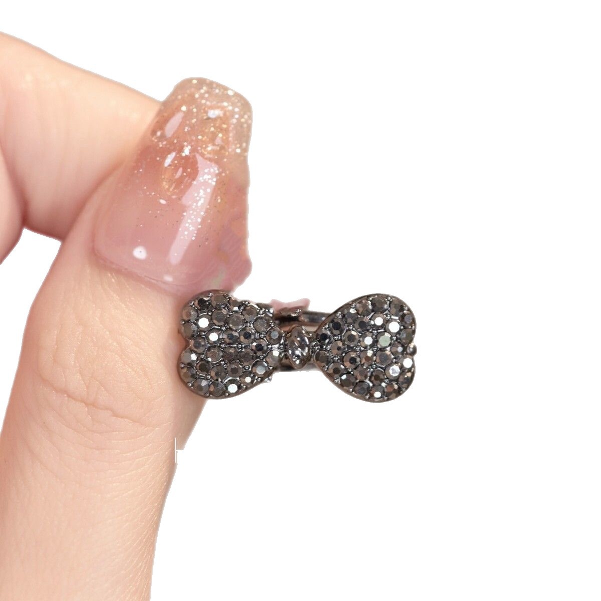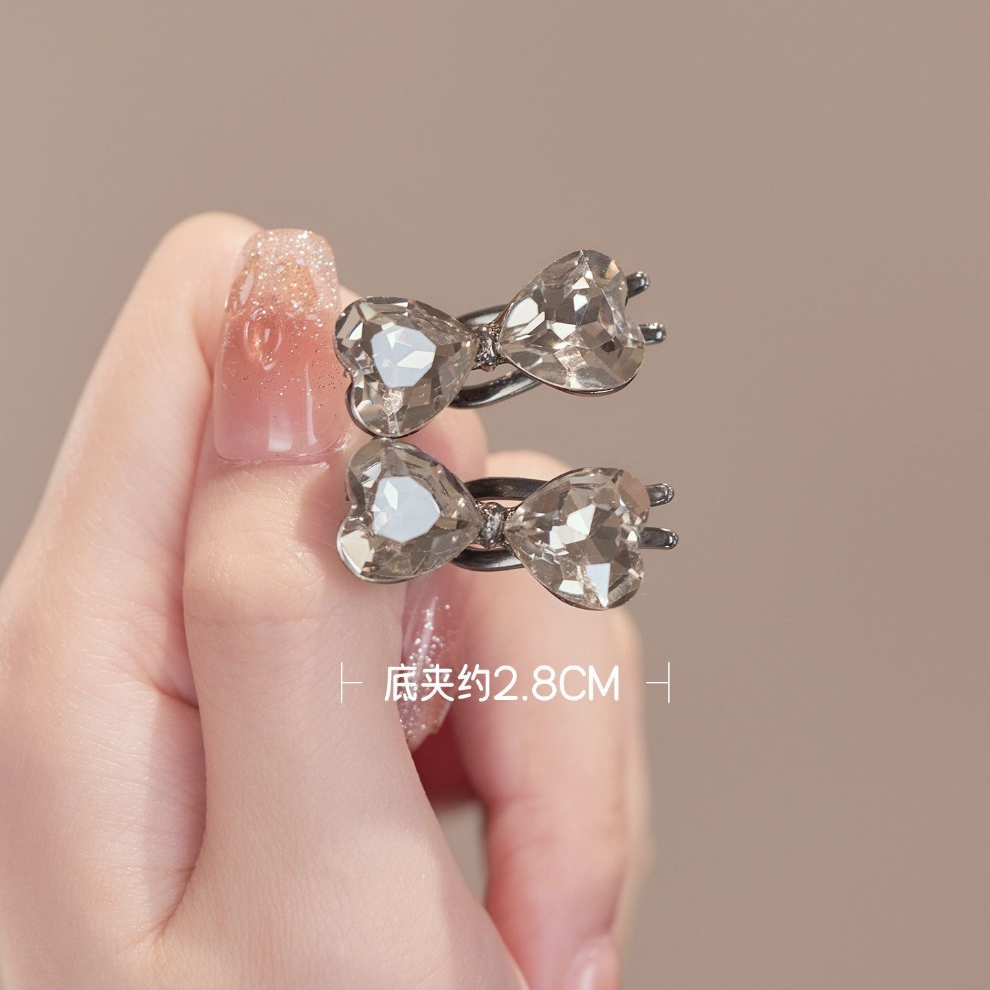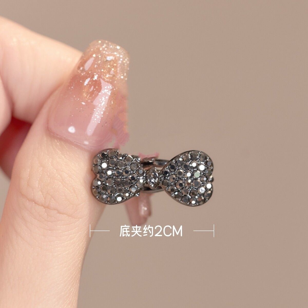 精致小号蝴蝶结侧边鸭嘴夹子水晶发卡高级感前额碎发夹迷你刘海夹