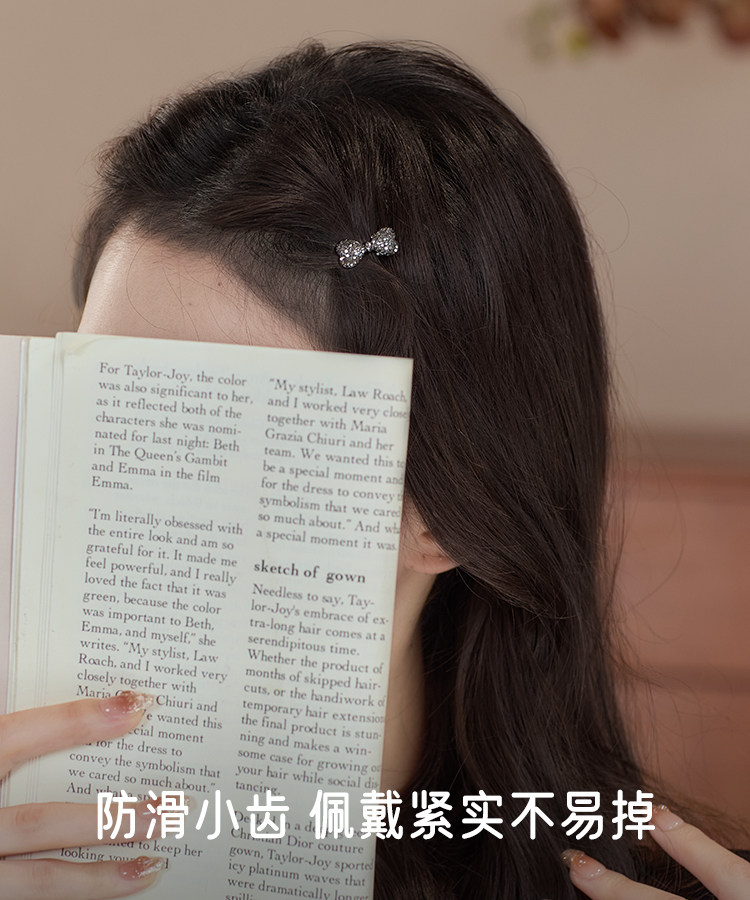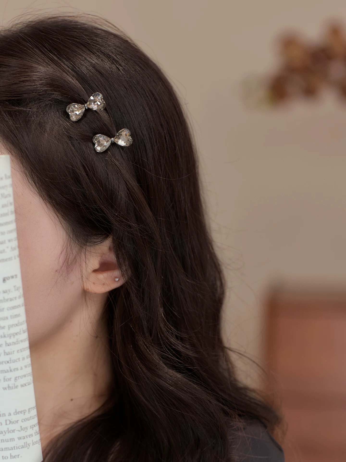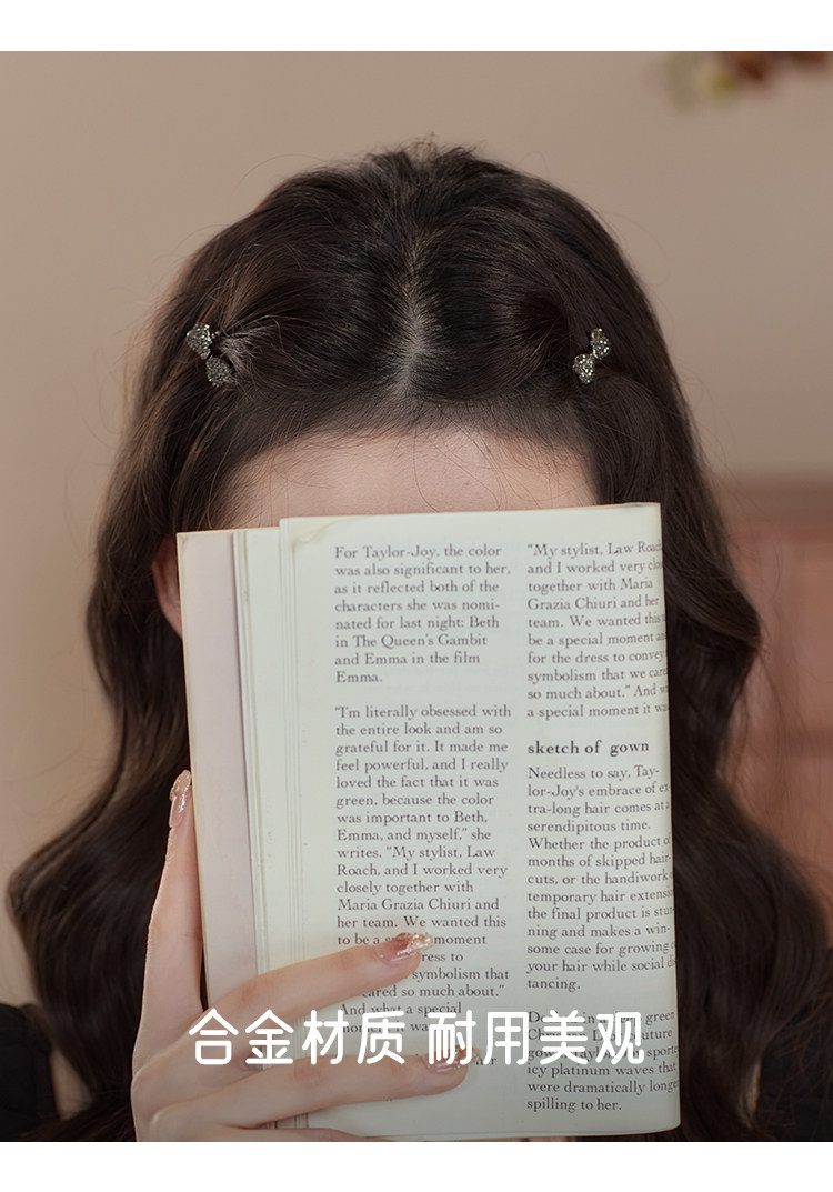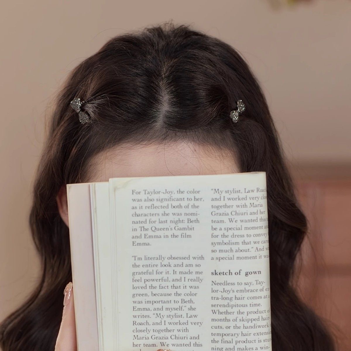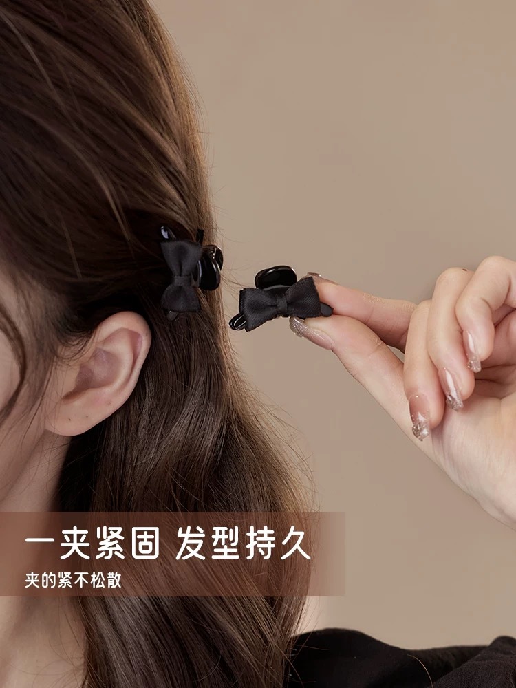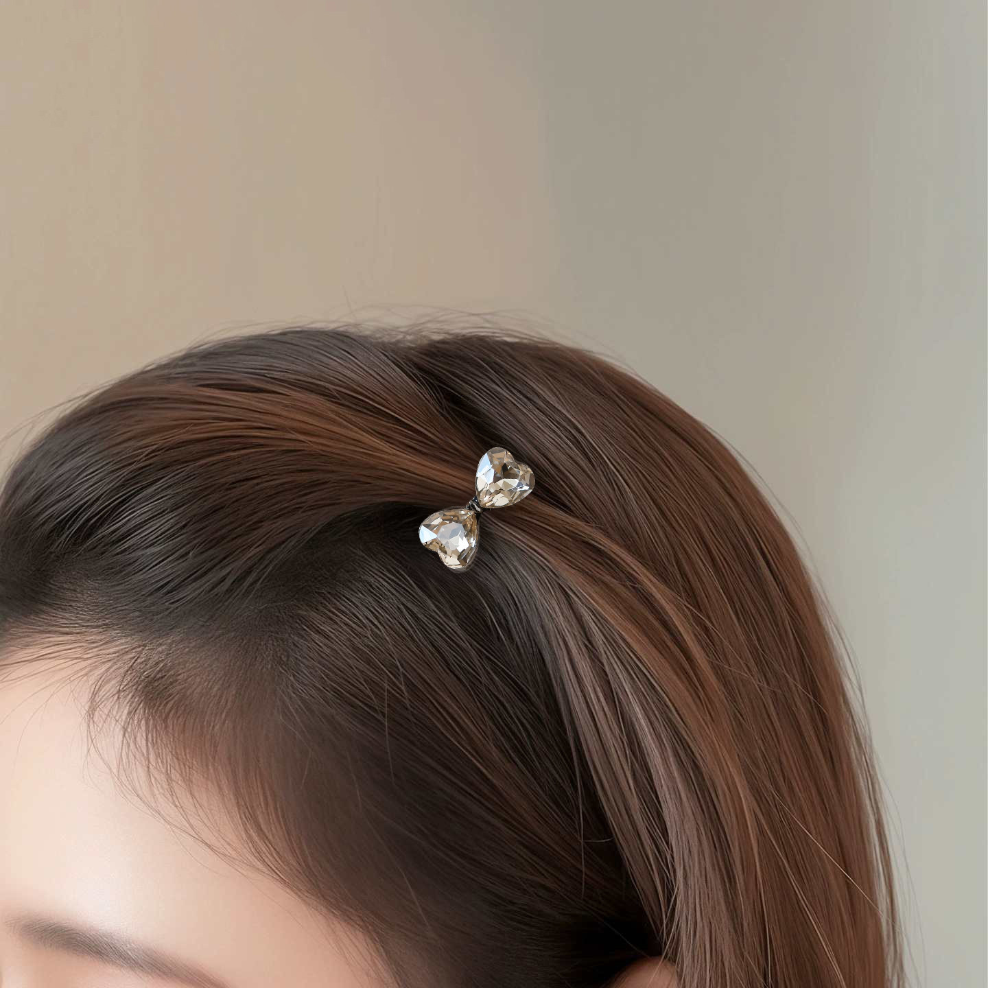 精致小号蝴蝶结侧边鸭嘴夹子水晶发卡高级感前额碎发夹迷你刘海夹