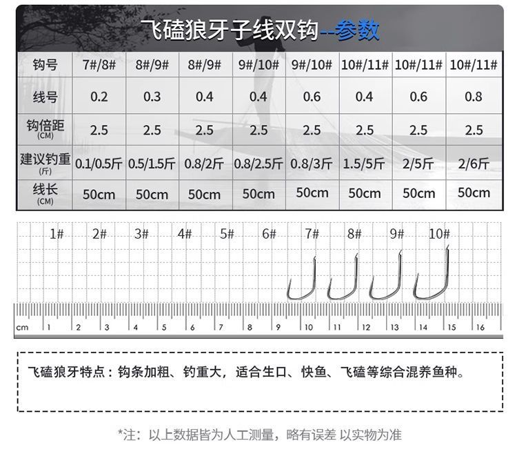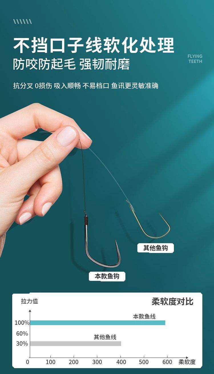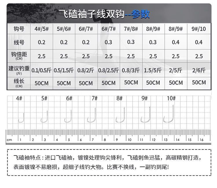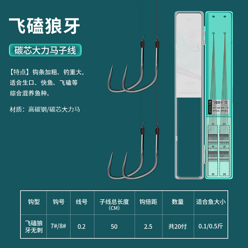 川钓翁精品子线双钩黑坑飞磕袖飞磕狼牙鱼线钓鲫鱼鲢鳙鱼钩