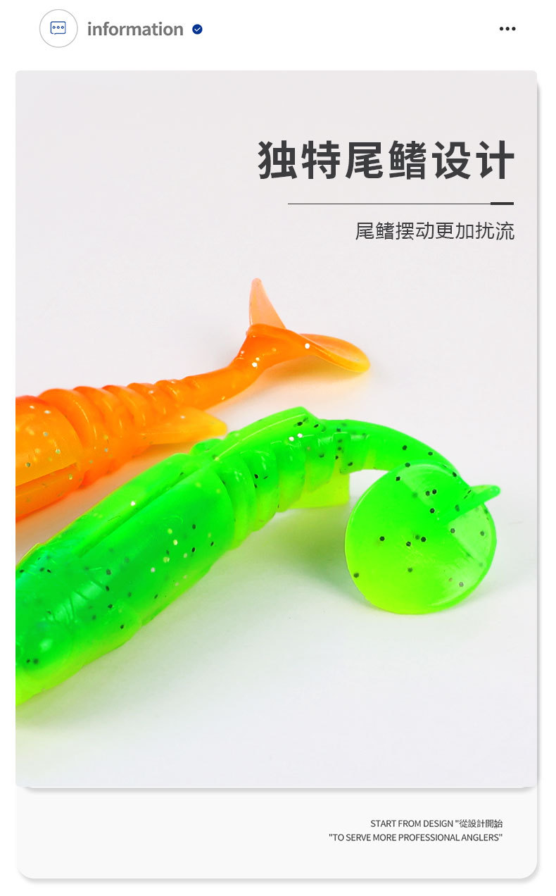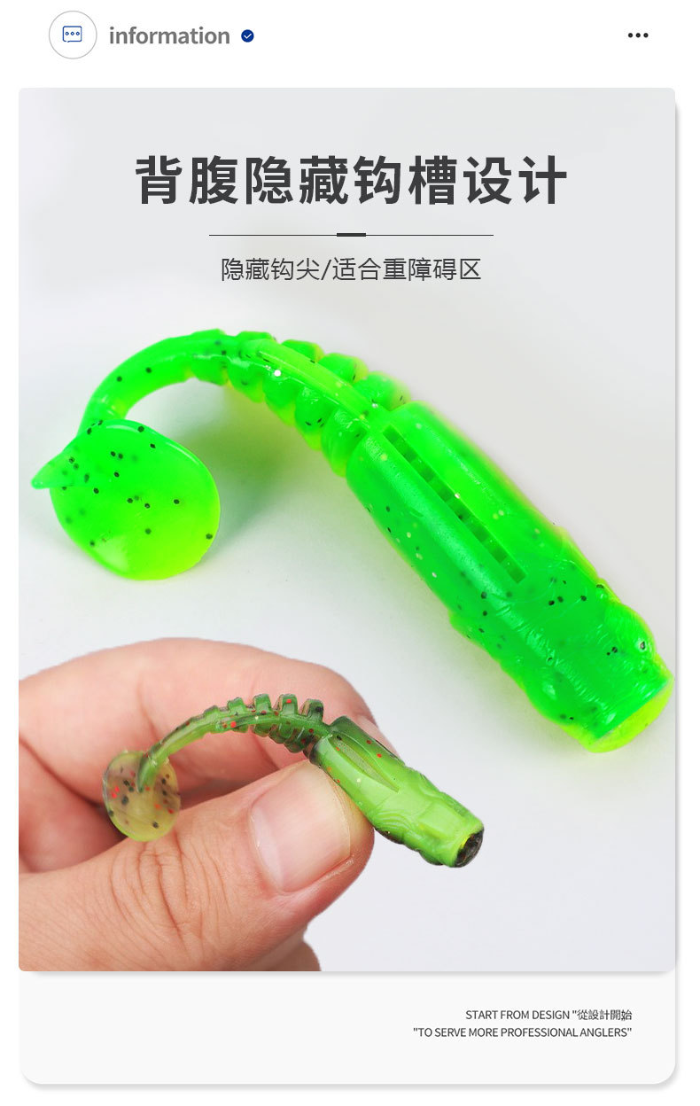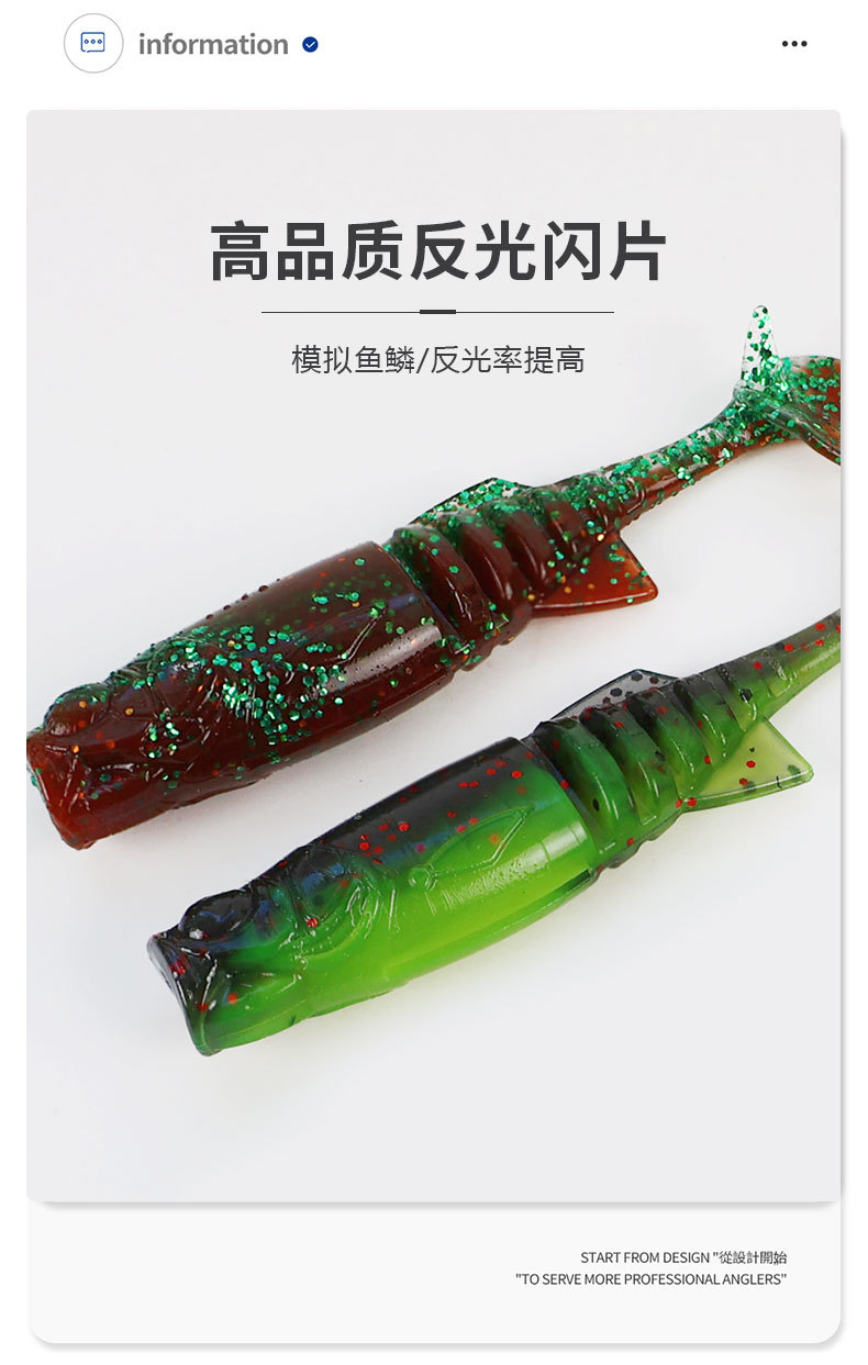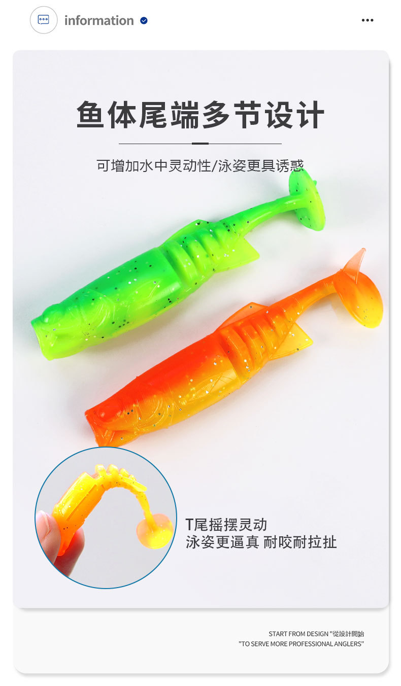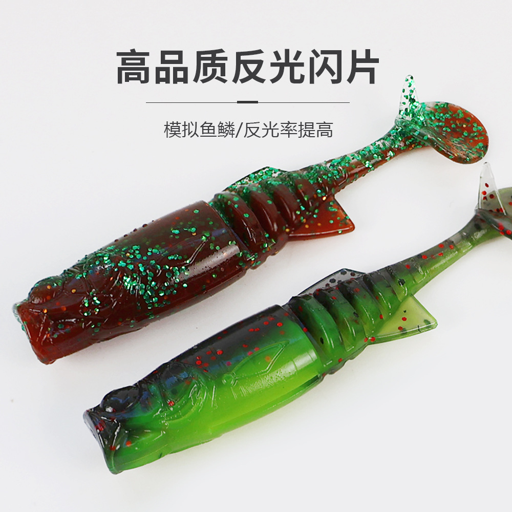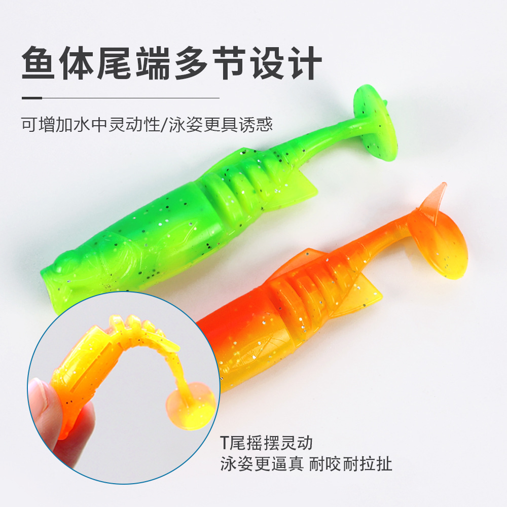 掠鲨|加腥T尾软饵多节小软饵软虫铅头钩曲柄钩鱼饵路亚饵黑坑tpe