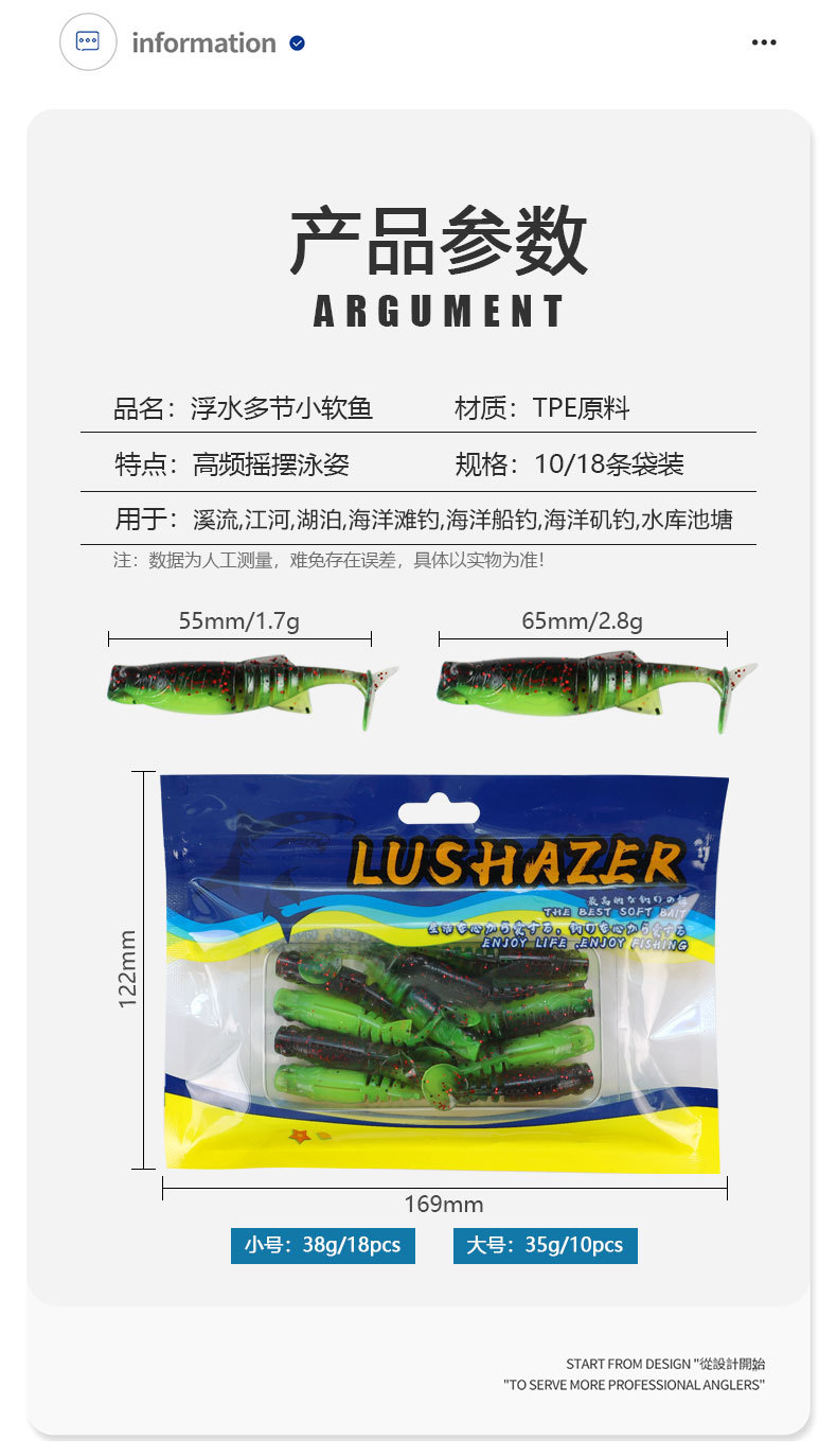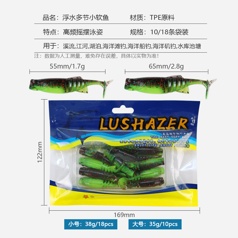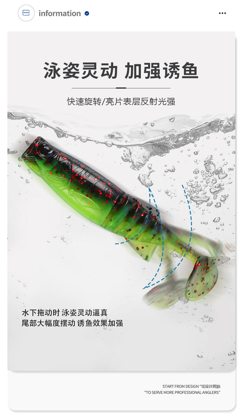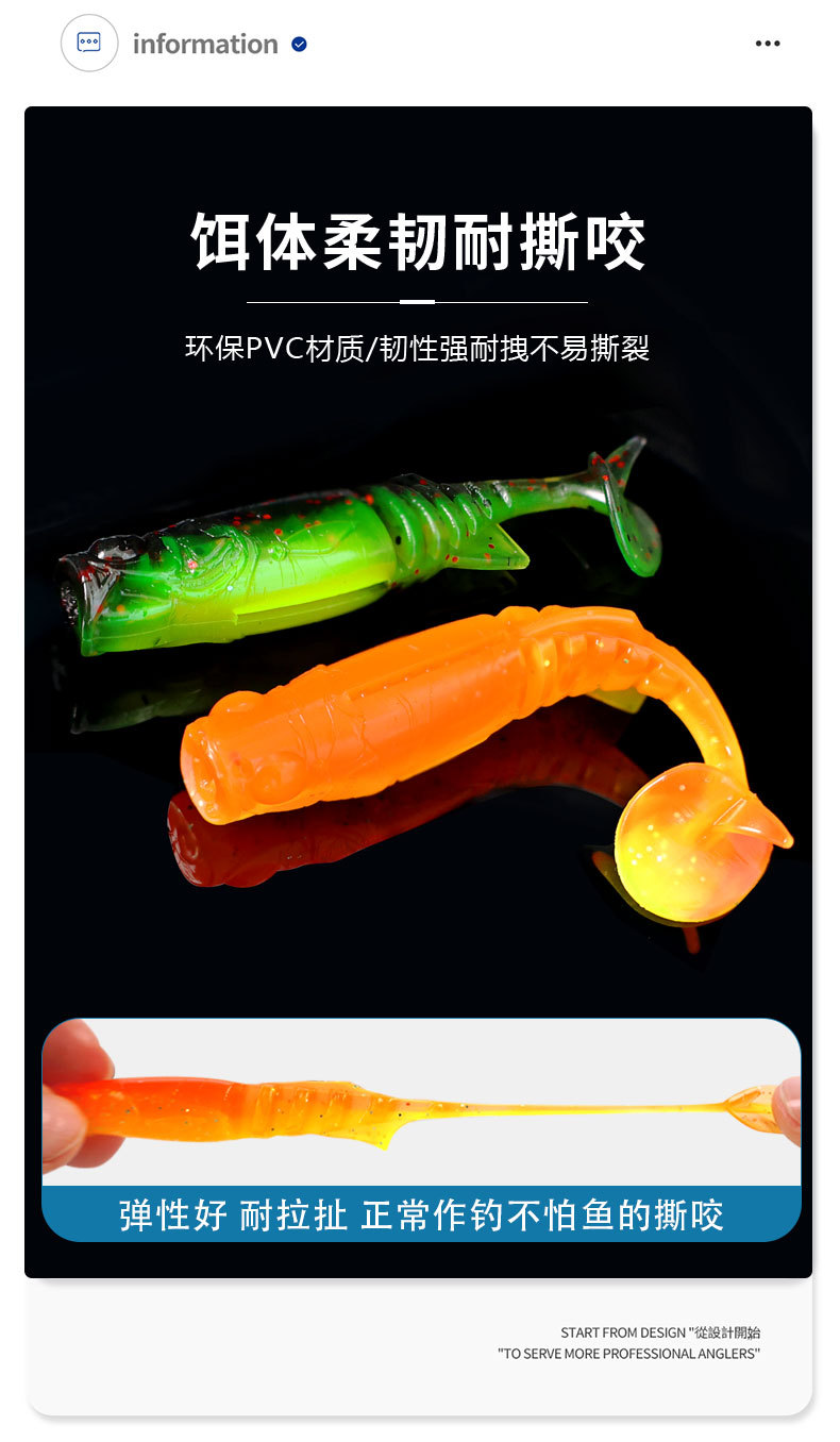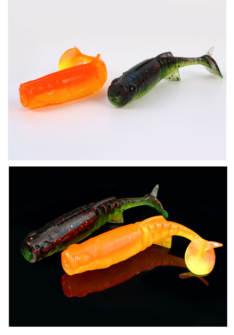 掠鲨|加腥T尾软饵多节小软饵软虫铅头钩曲柄钩鱼饵路亚饵黑坑tpe