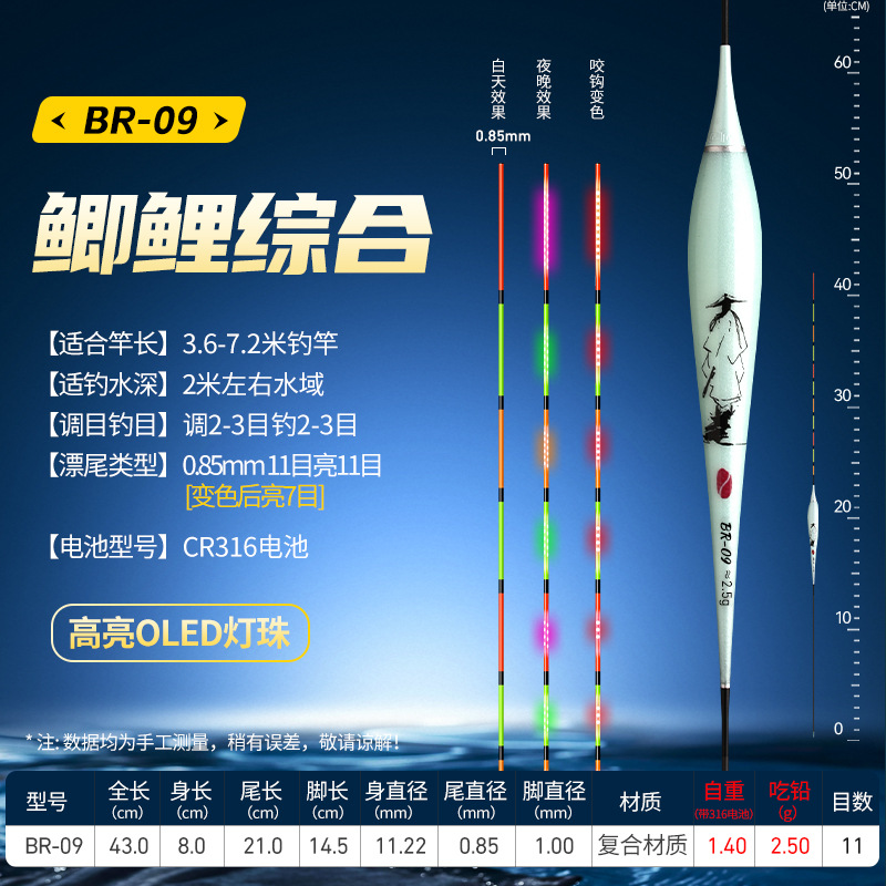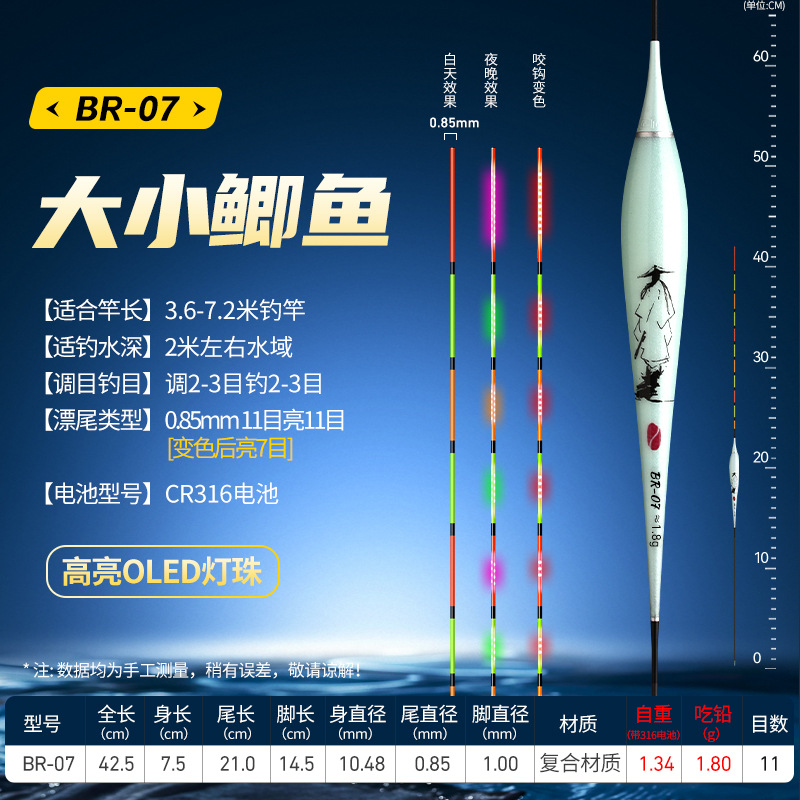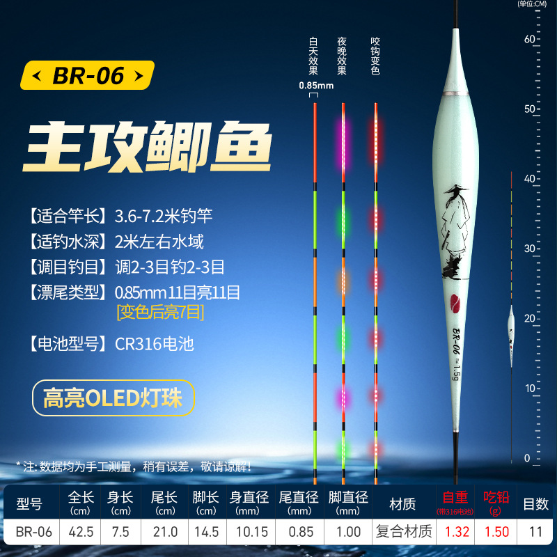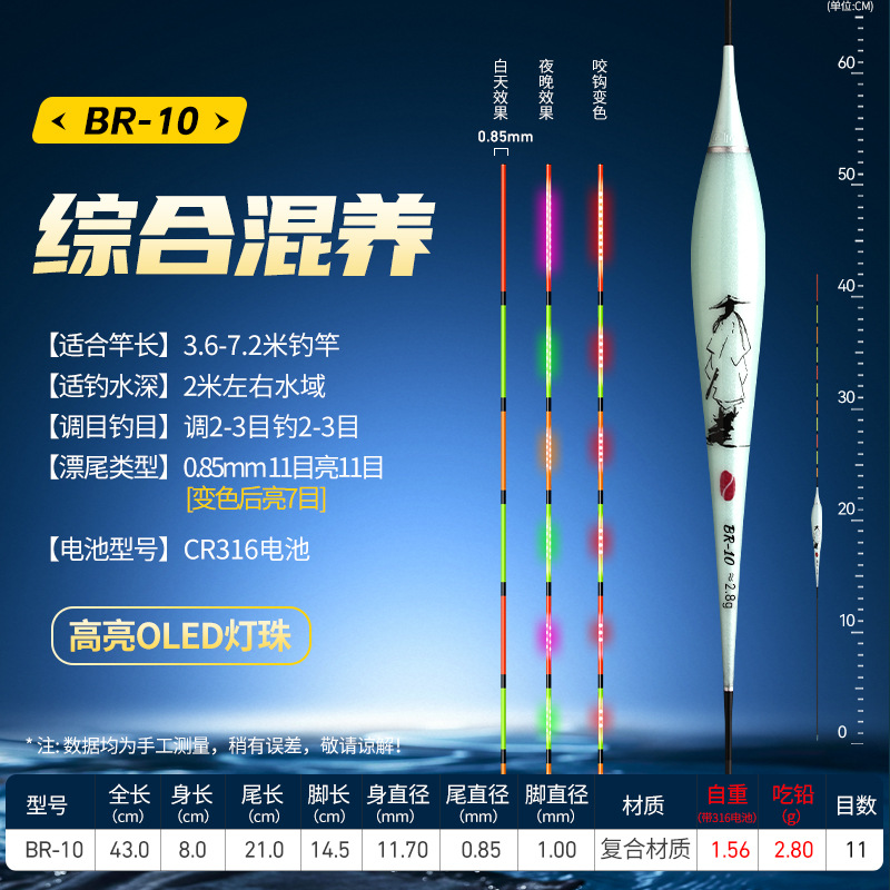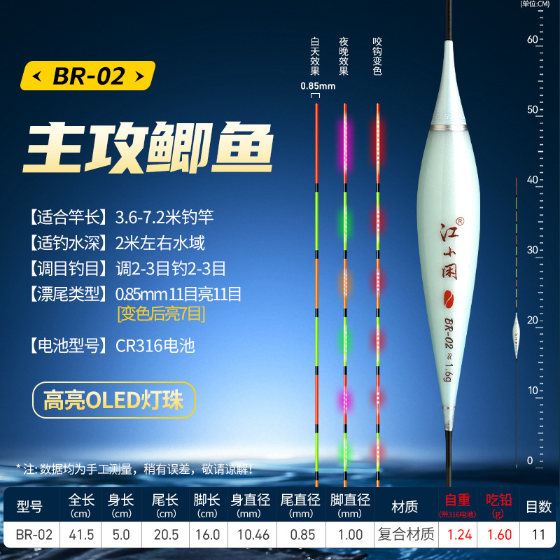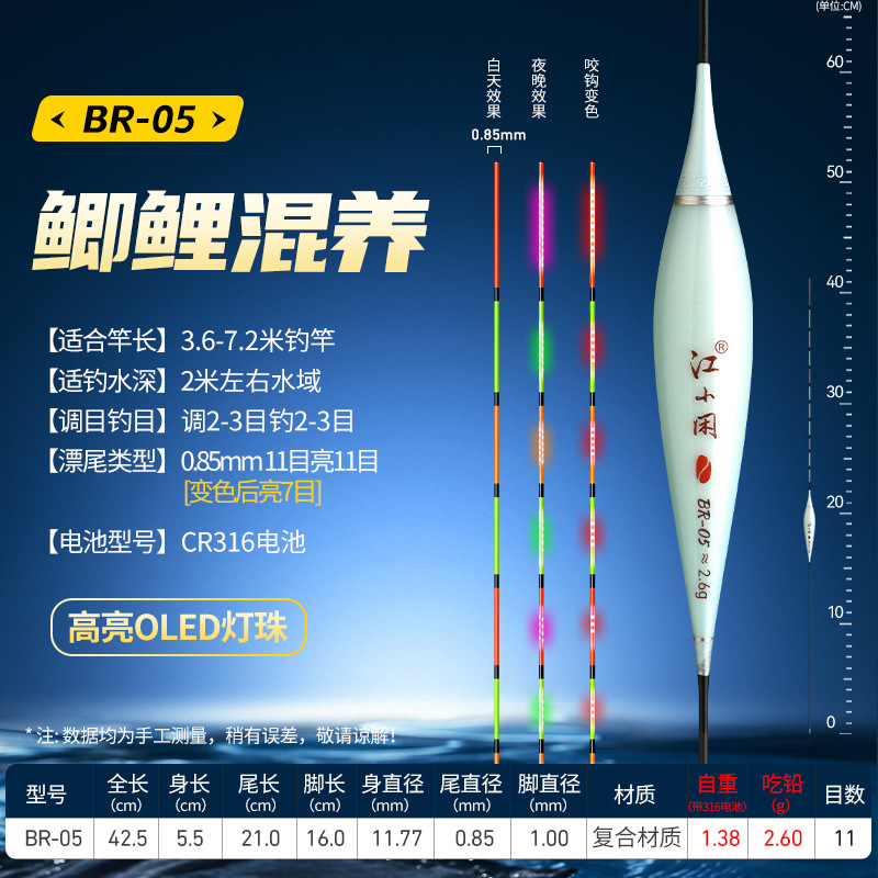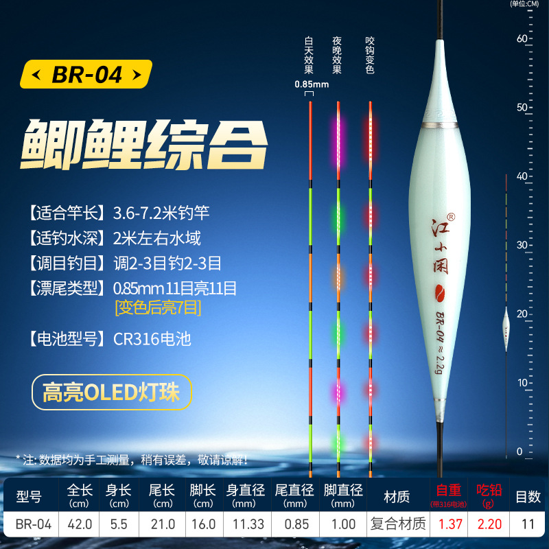 江小闲316LED夜光漂0.8超细硬尾一体无缝咬钩变色322全目亮冷光尾
