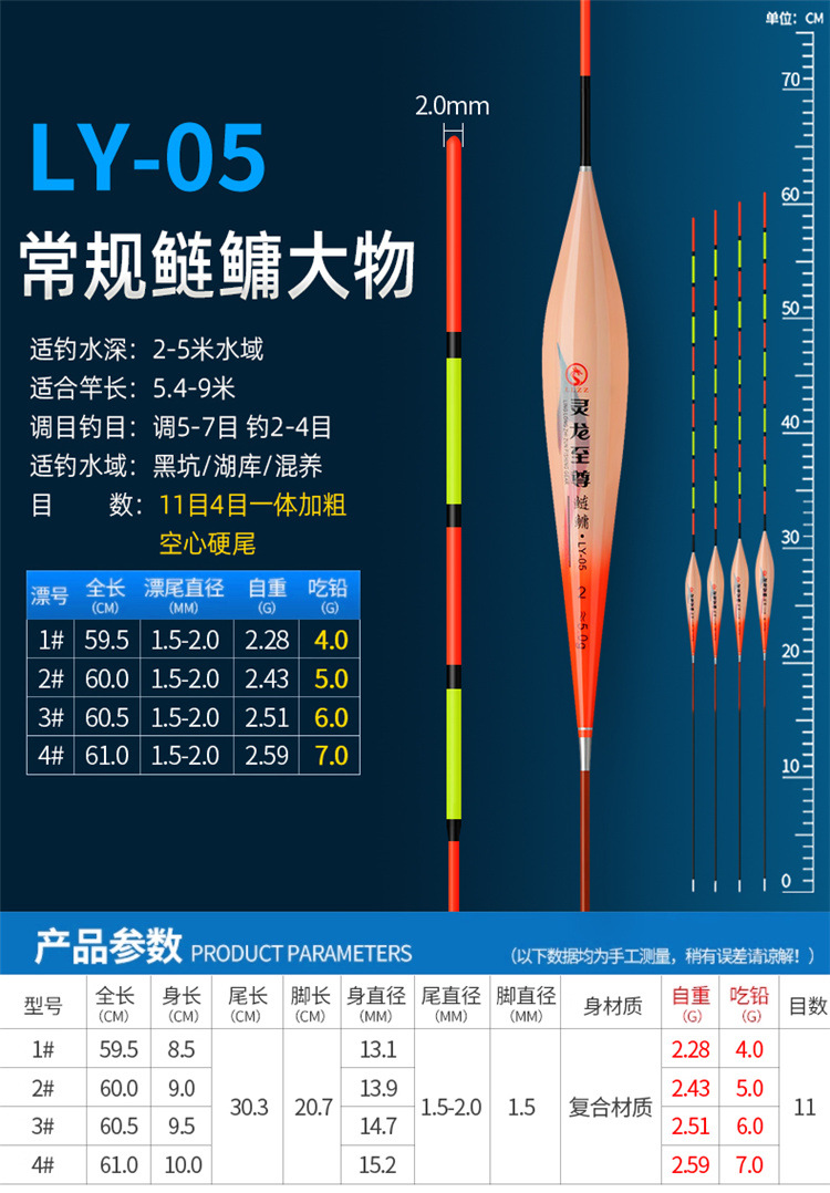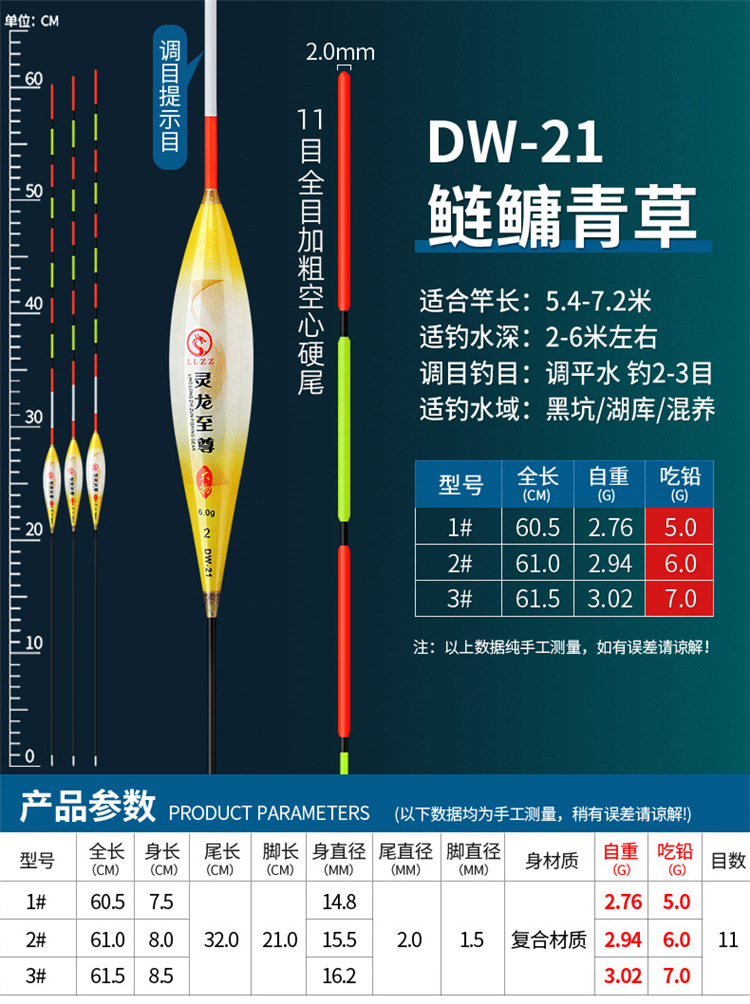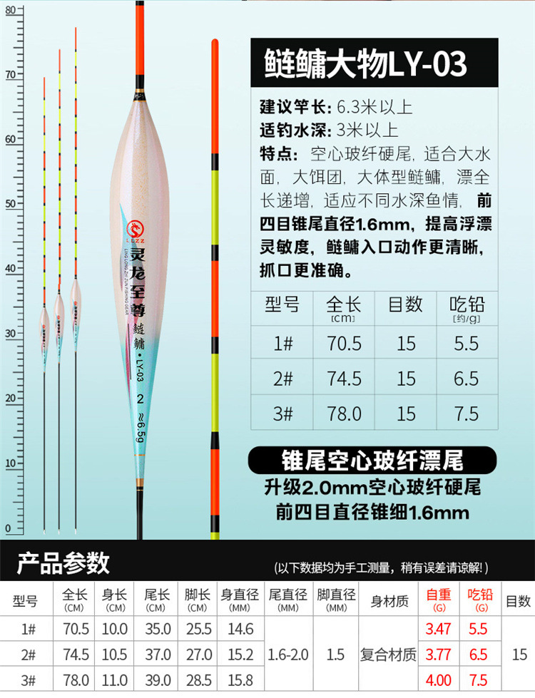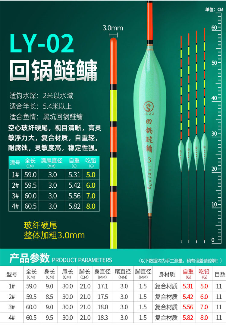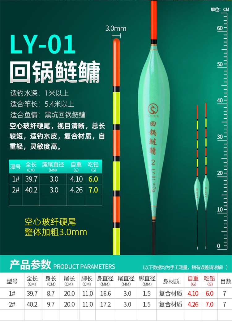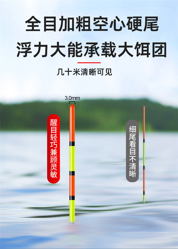 全目加粗空心硬尾鲢鳙浮漂黑坑回锅鲢鳙大物漂醒目高灵敏纳米漂