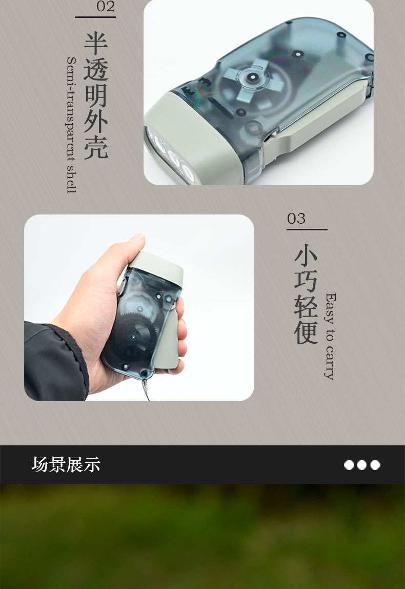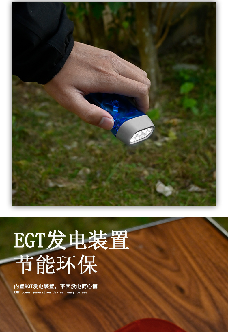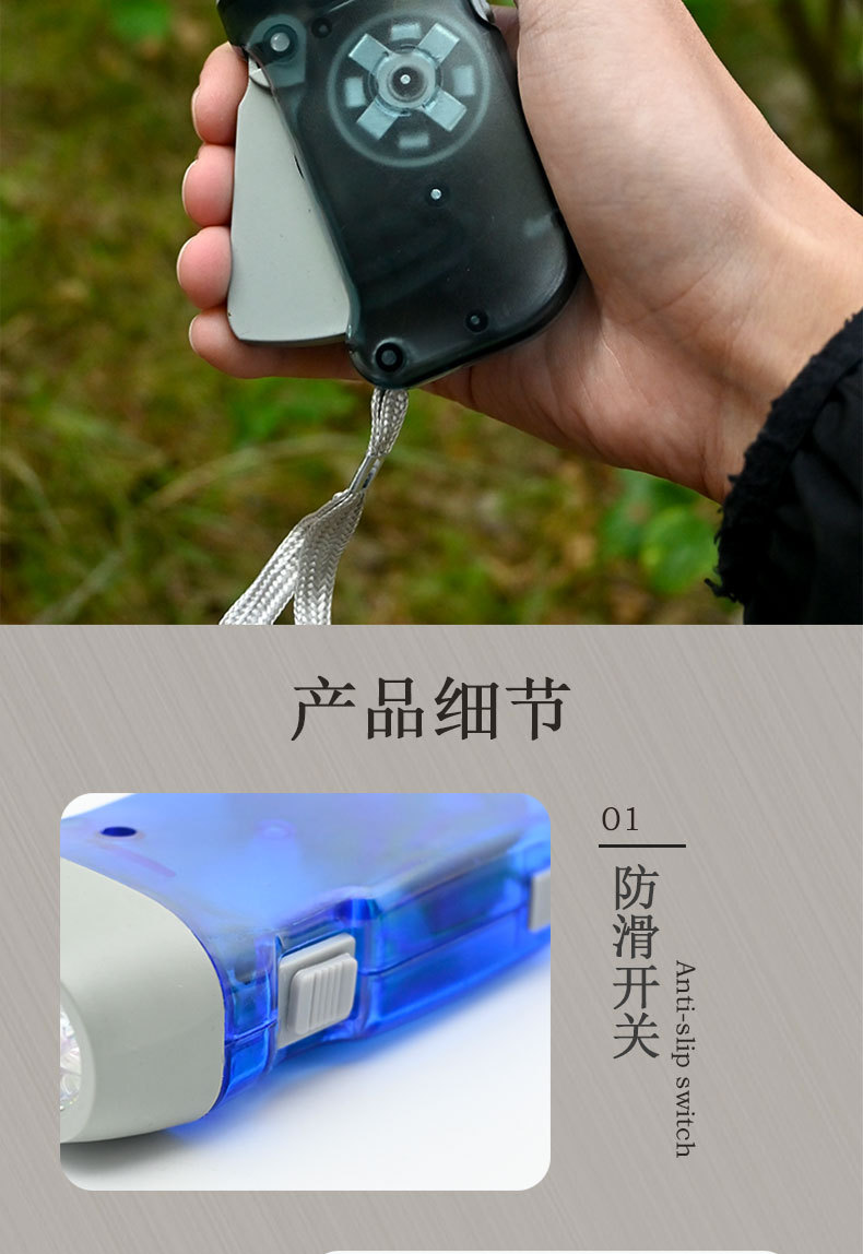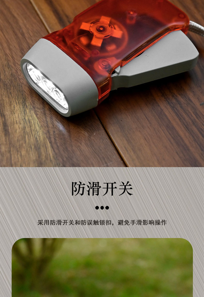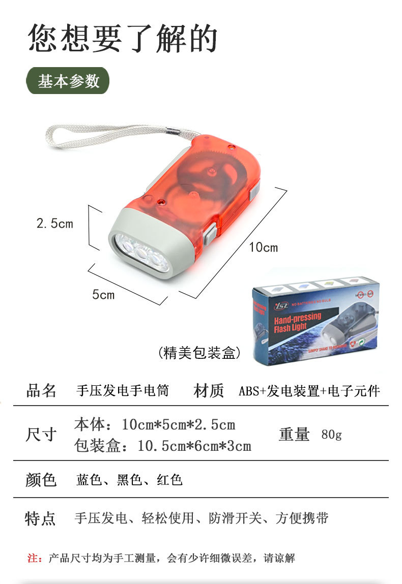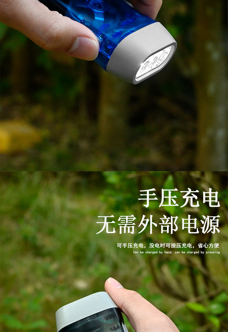 户外手压式自动发电应急式手电筒LED3灯手动超亮便捷迷你手电筒