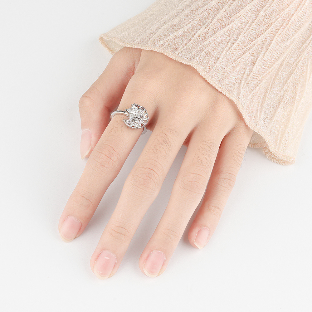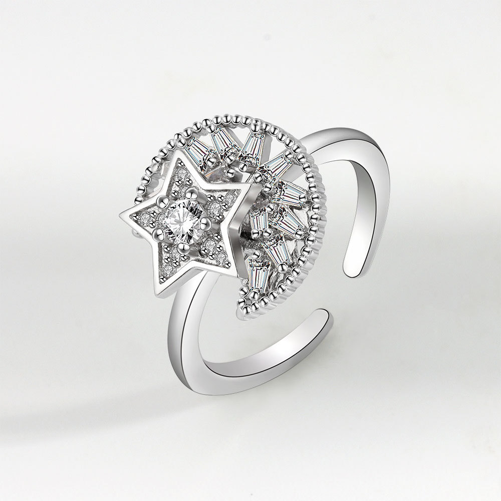 欧美跨境热销个性日常百搭会旋转可调节缓解焦虑压力镀银锆石戒指