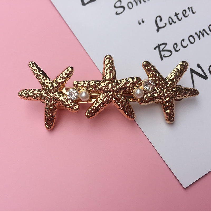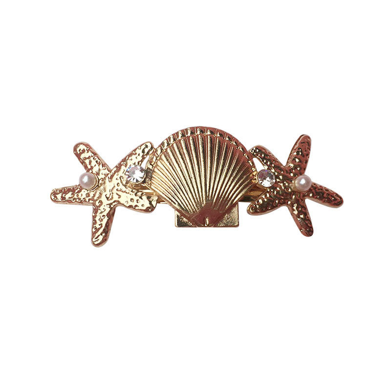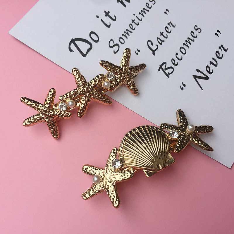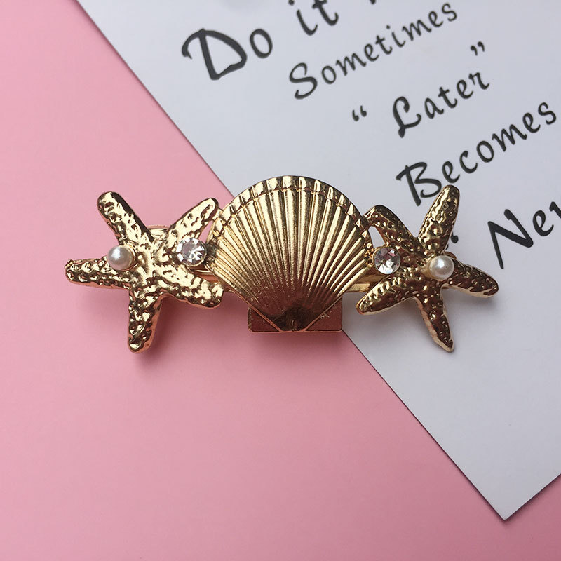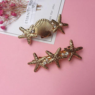 新品韩版马尾夹发饰百搭时尚合金水钻珍珠海星贝壳弹簧发夹饰品