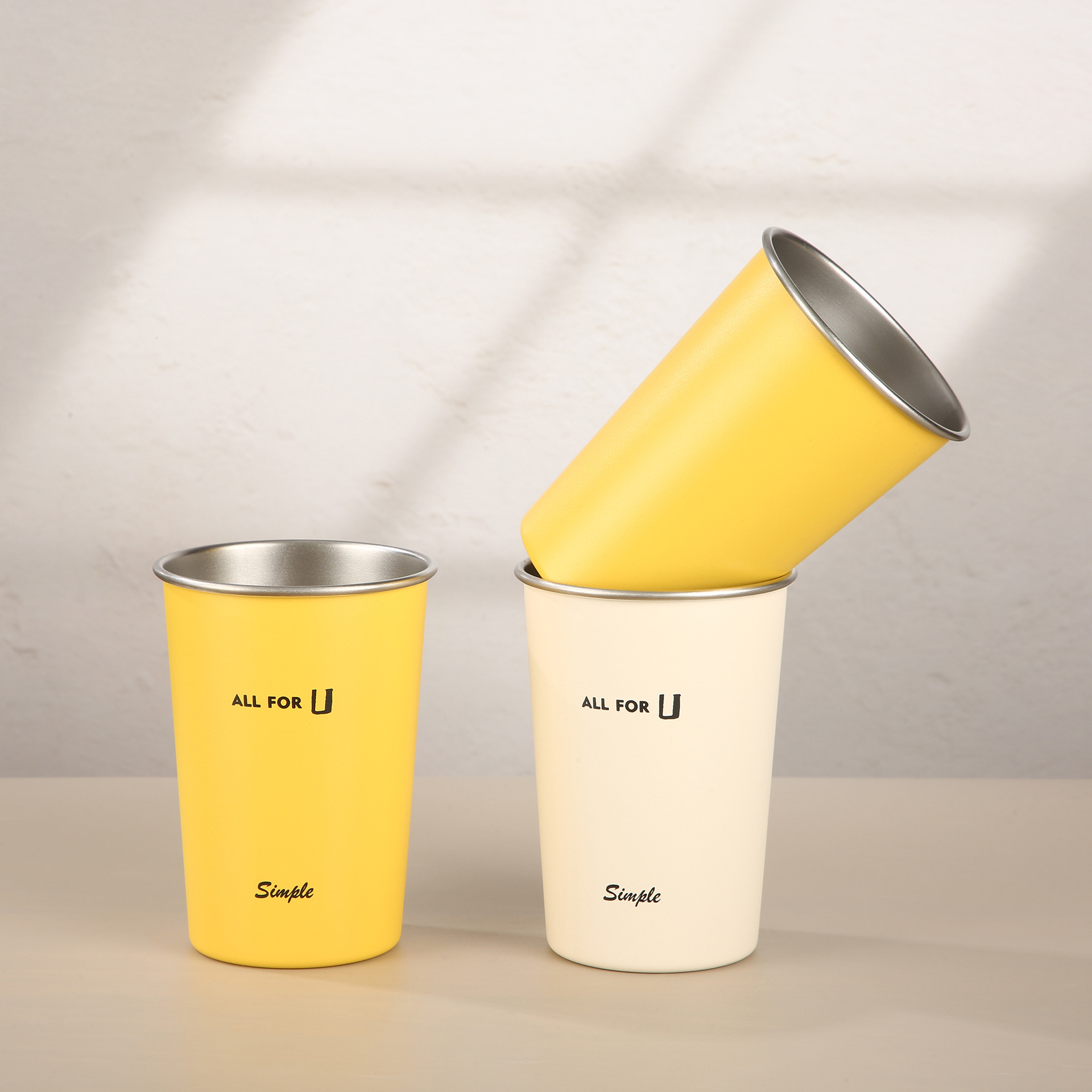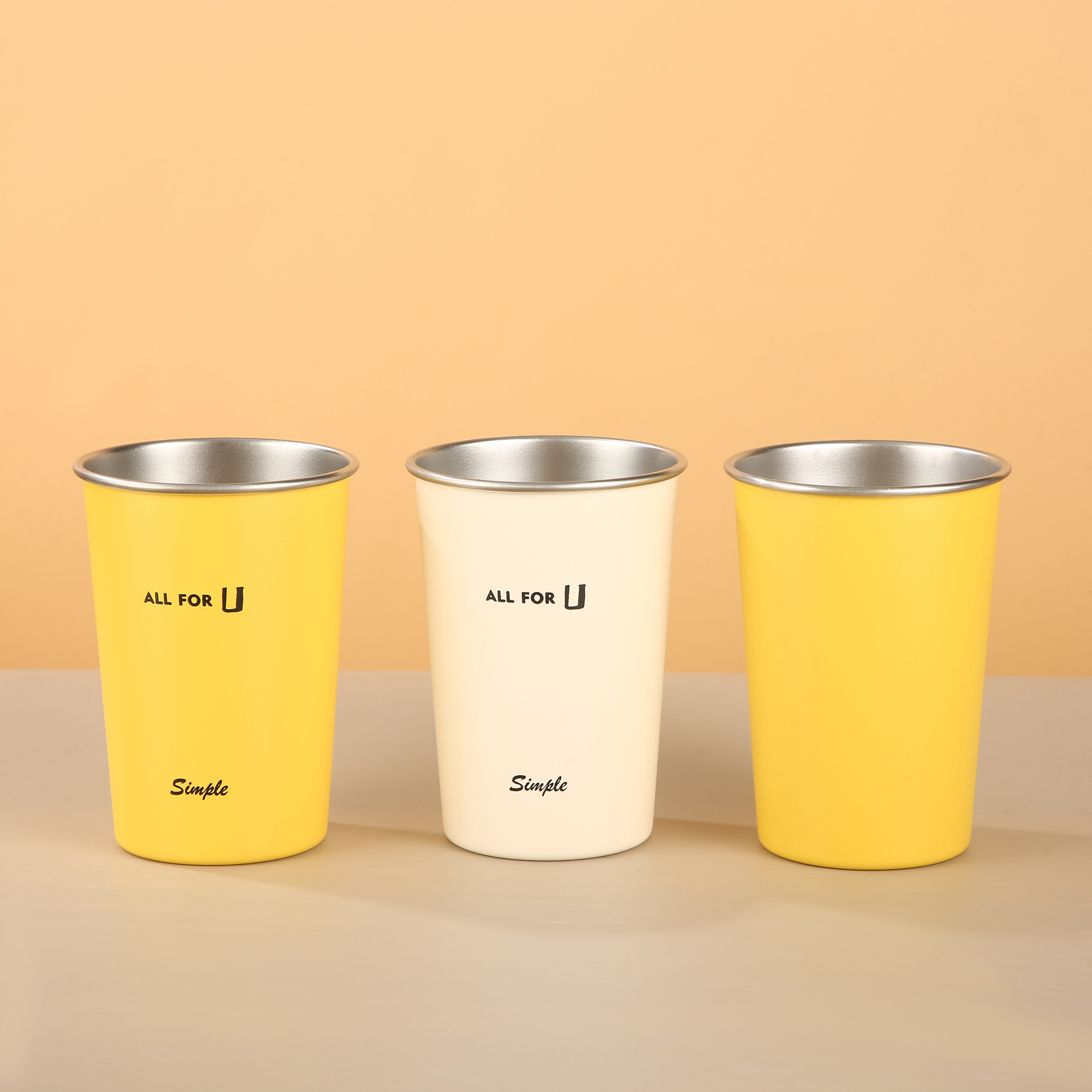 创意304不锈钢随手杯漱口杯高颜值直饮杯单层卷边啤酒杯闪电黄杯