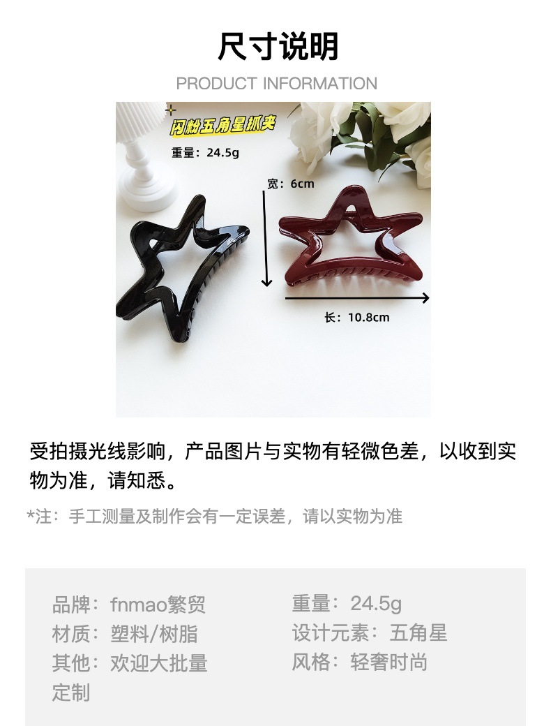 爆品高级感五角星抓夹女新款后脑勺鲨鱼夹发夹气质头饰后脑勺盘发