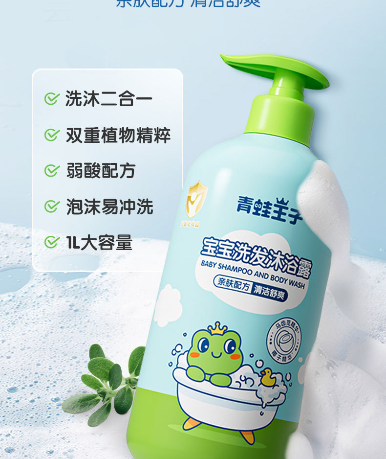 青蛙王子儿童洗发沐浴露二合一厂家大容量宝宝洗发沐浴露1L装批发