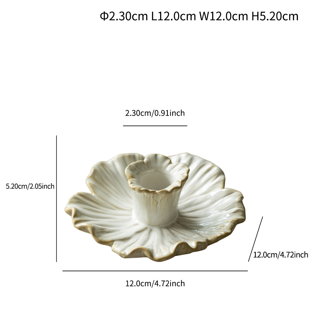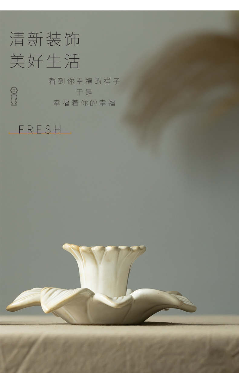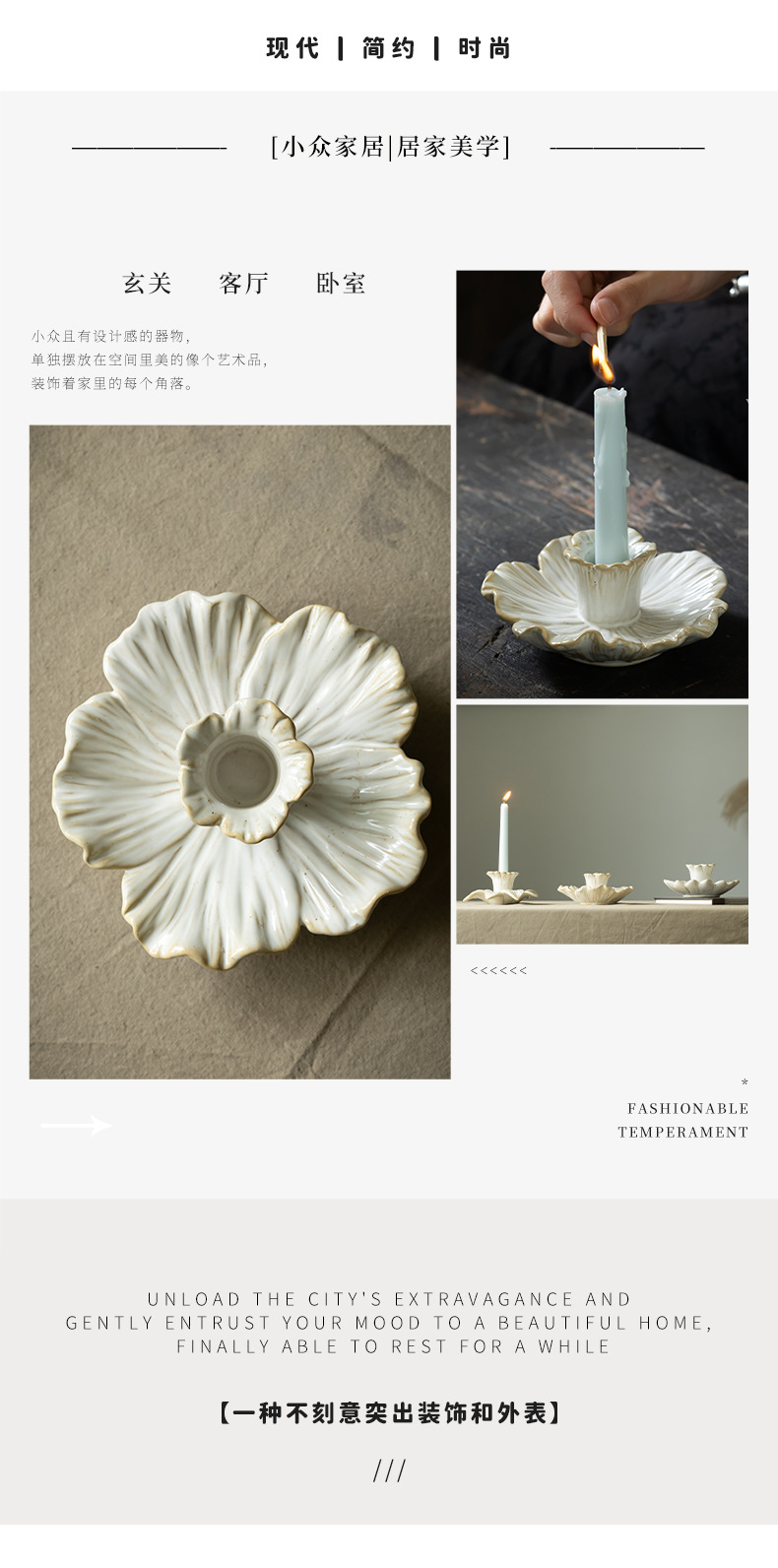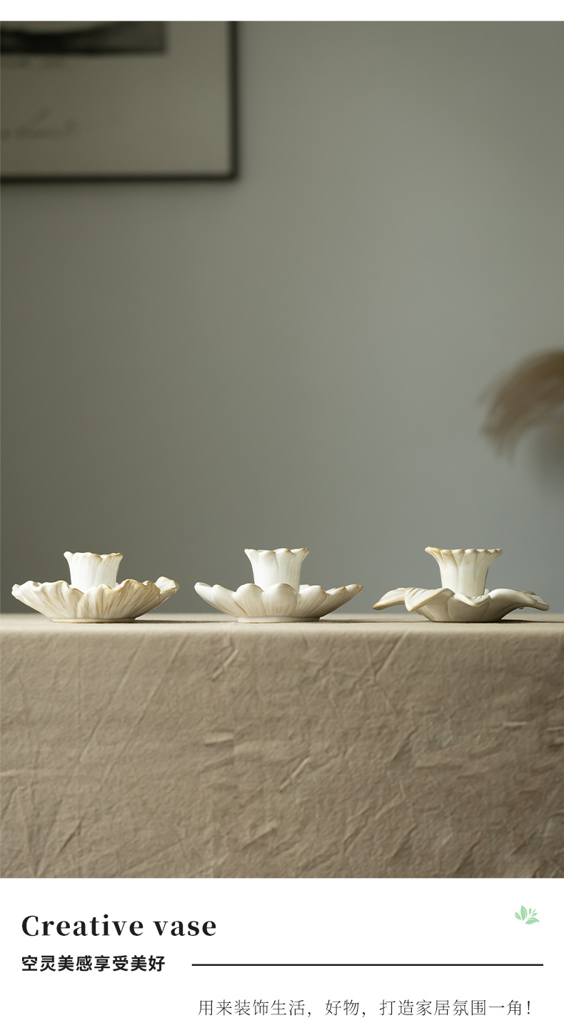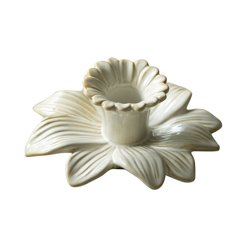 创意窑变花朵陶瓷烛台简约现代风格米白色家居桌面装饰品摆件批发