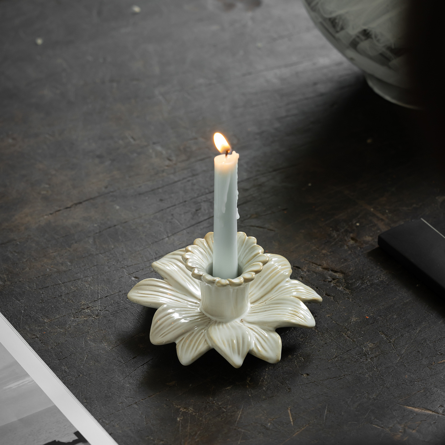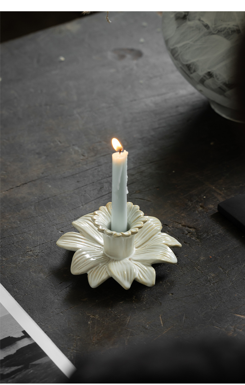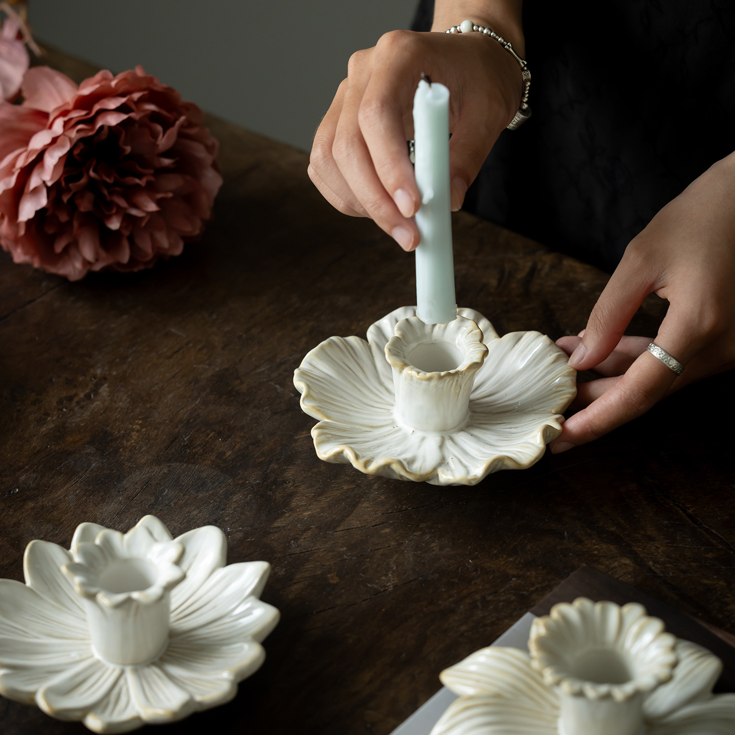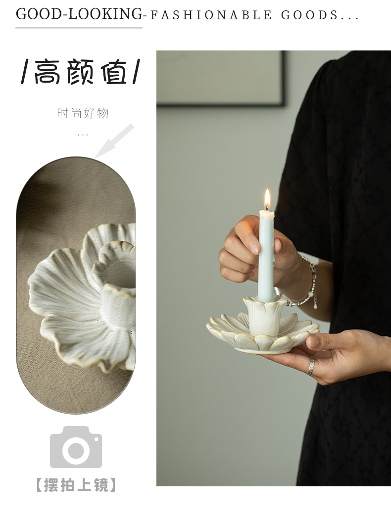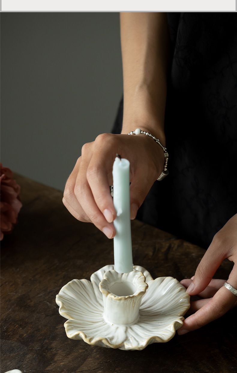 创意窑变花朵陶瓷烛台简约现代风格米白色家居桌面装饰品摆件批发