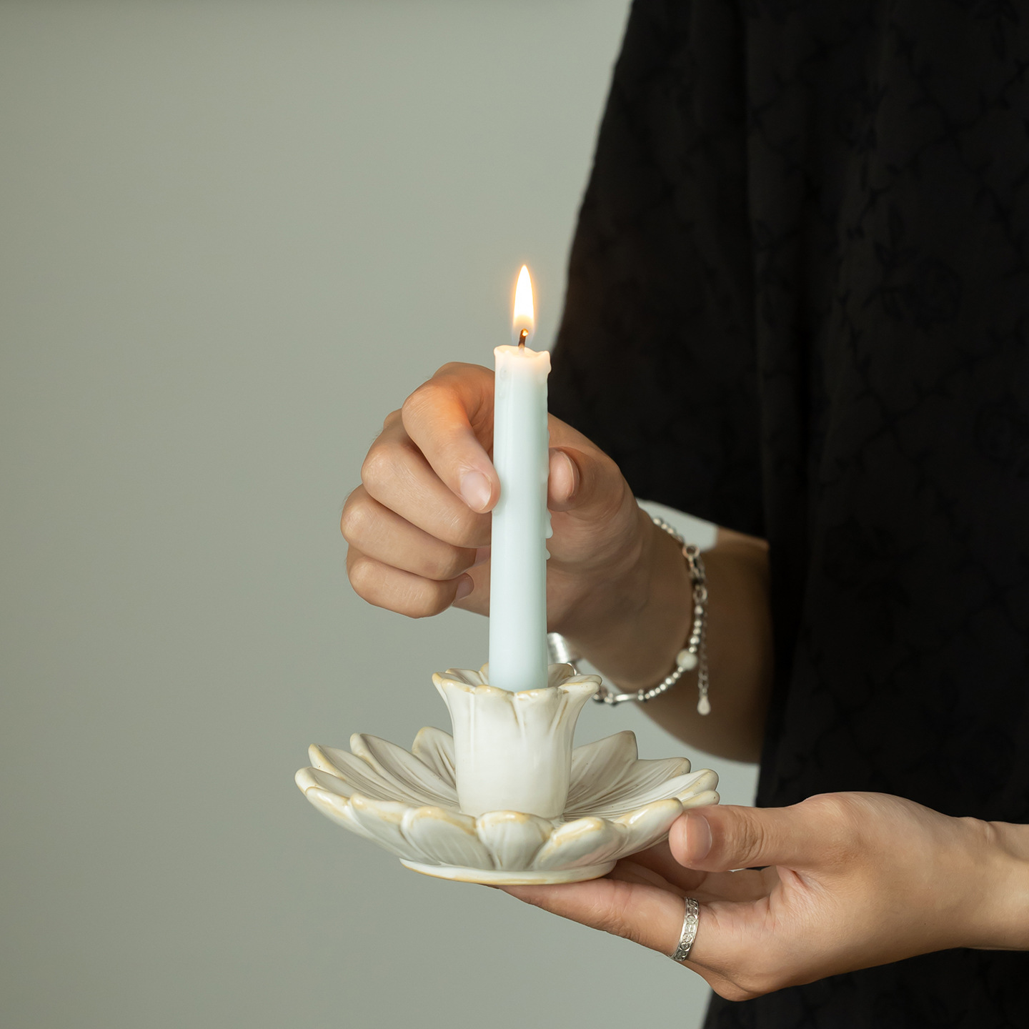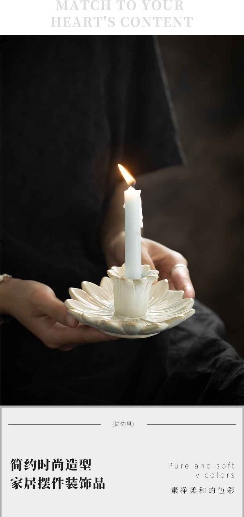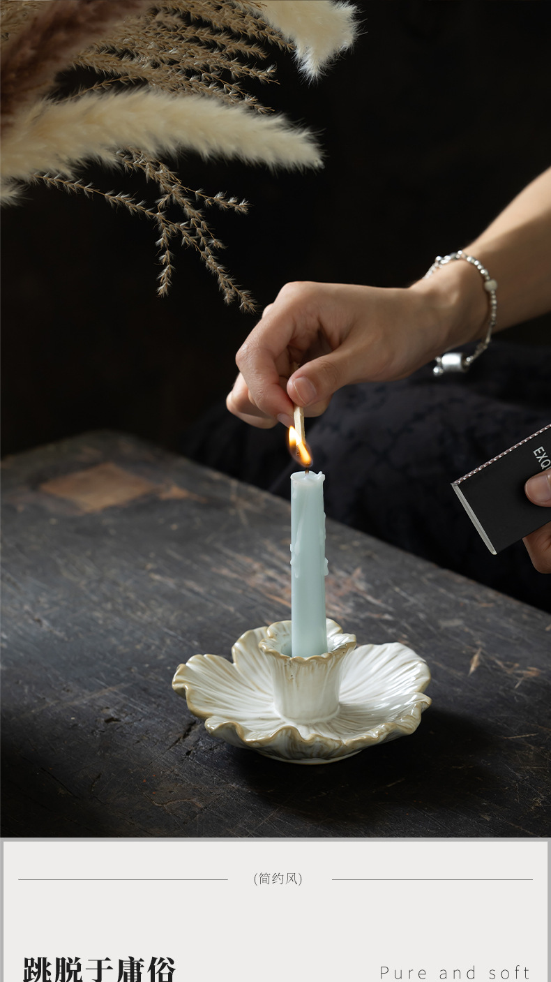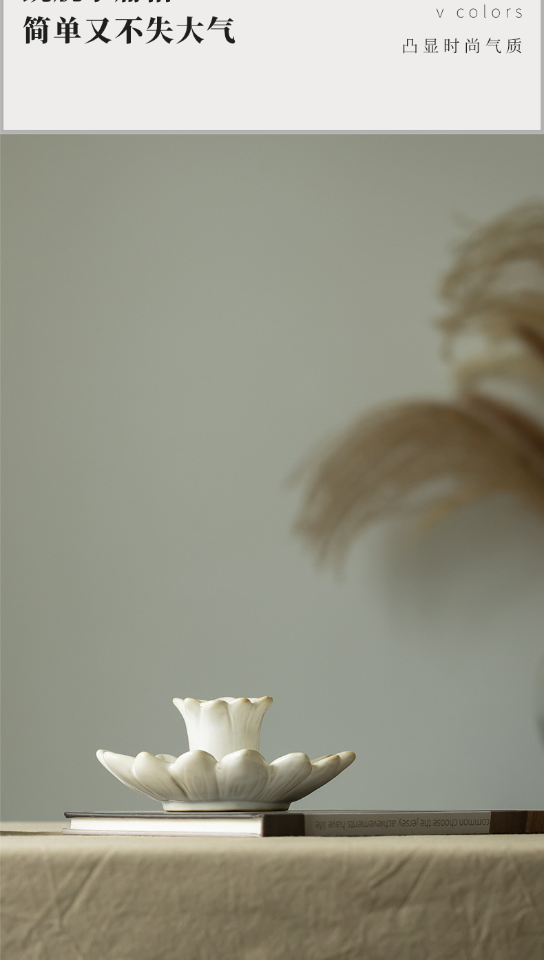 创意窑变花朵陶瓷烛台简约现代风格米白色家居桌面装饰品摆件批发