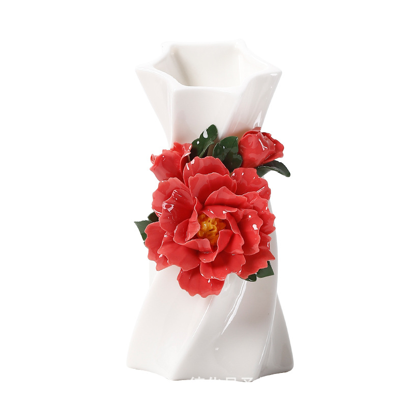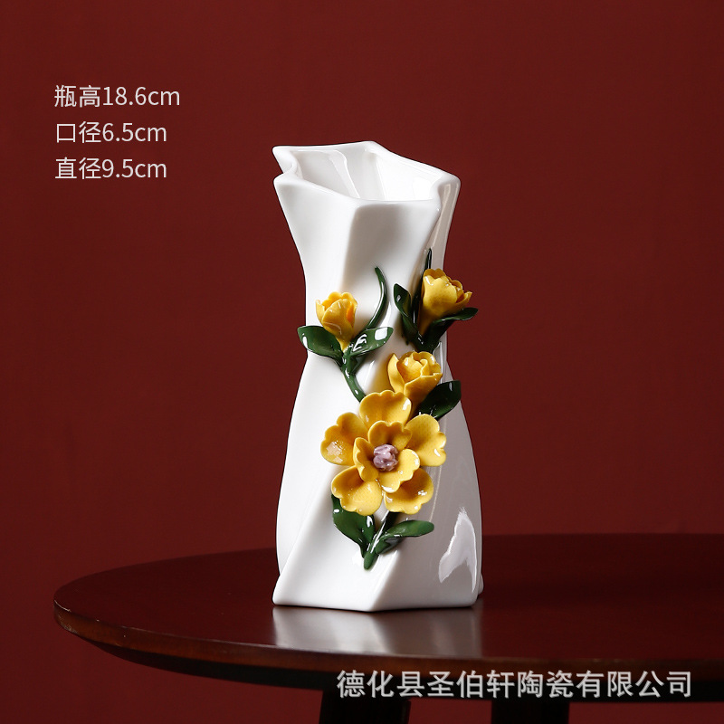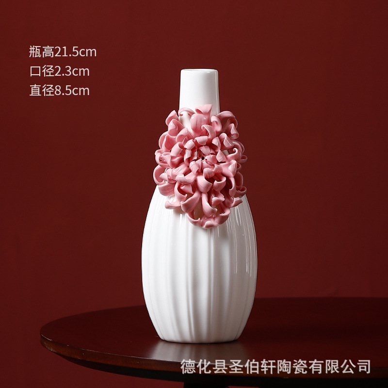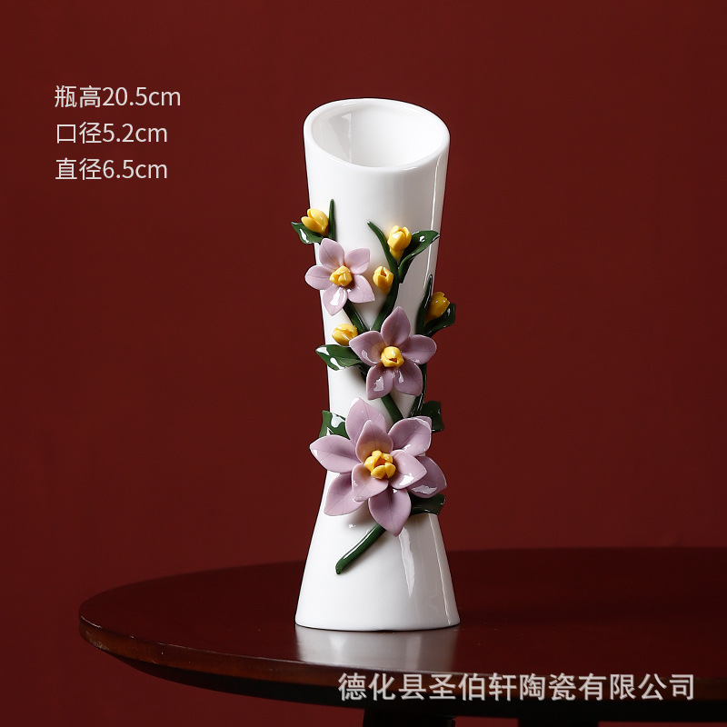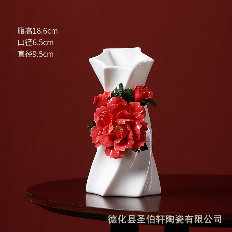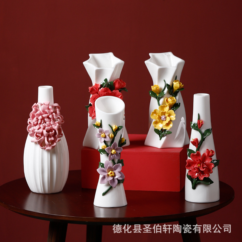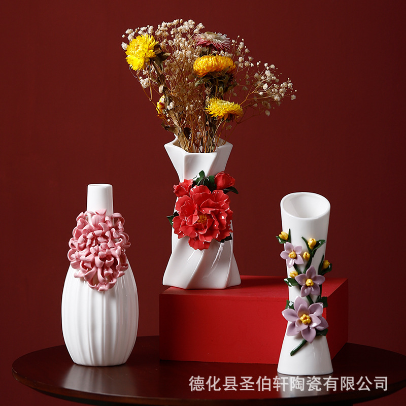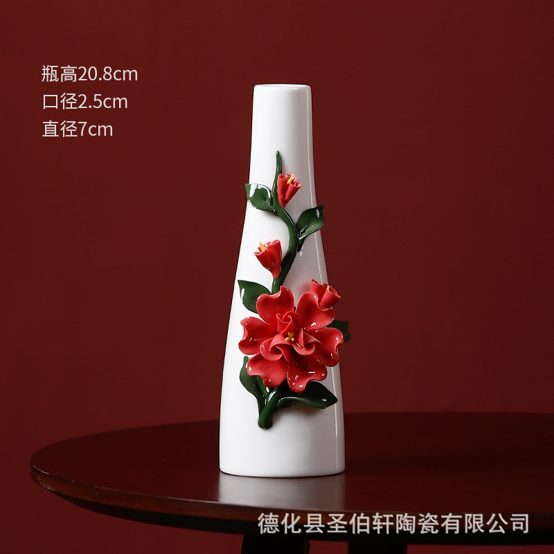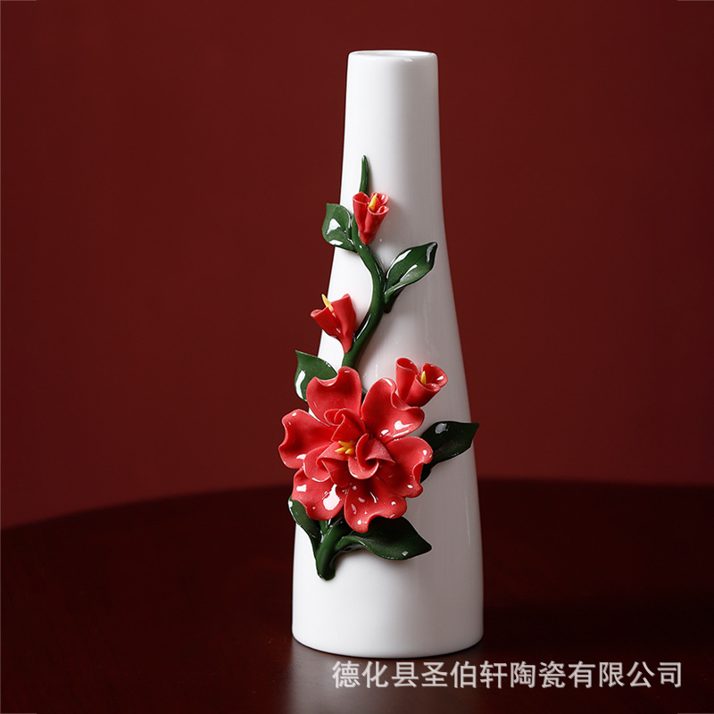 德化白瓷纯手工捏花传统工艺复古陶瓷花瓶系列摆件插花家居插花器